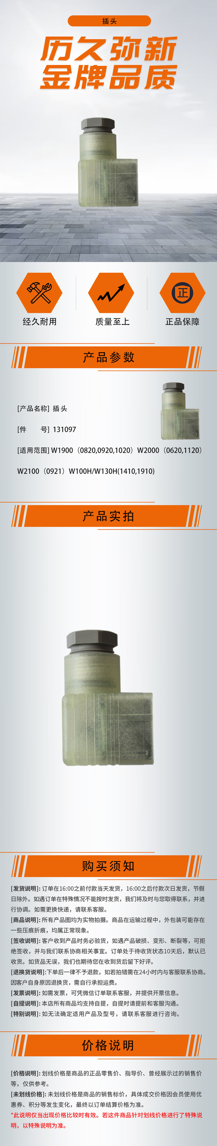 【插头131097】适用于W1900(0820,0920,1020)W2000(0620,1120)W2100(0921)W100H/W130H(1410,1910)