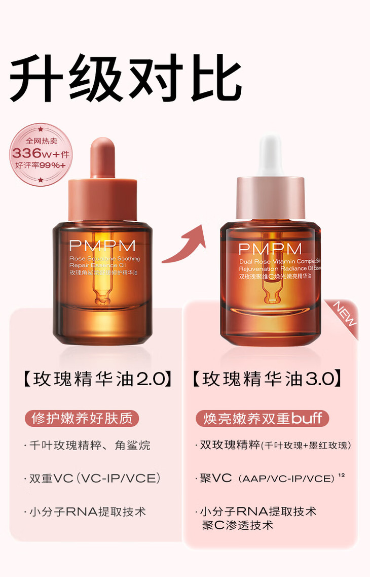 PMPM玫瑰精华油面部舒缓修护抗皱紧致保湿精油面部护肤精华油