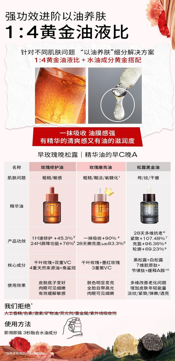 PMPM玫瑰精华油面部舒缓修护抗皱紧致保湿精油面部护肤精华油松露油