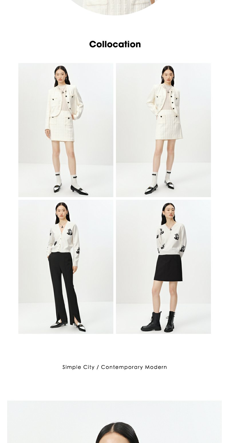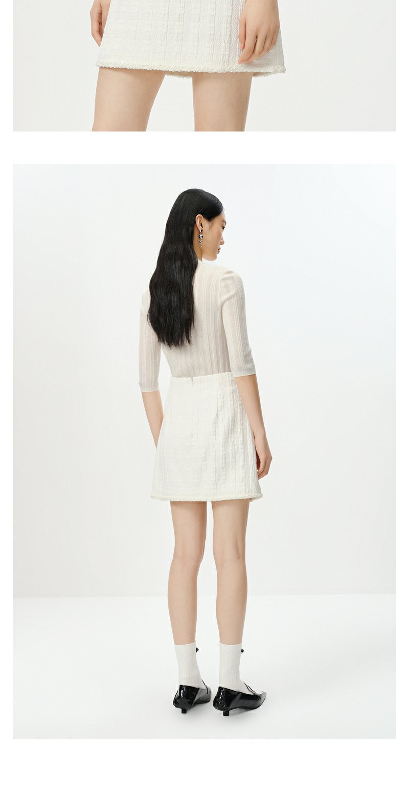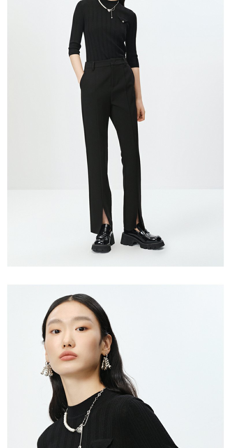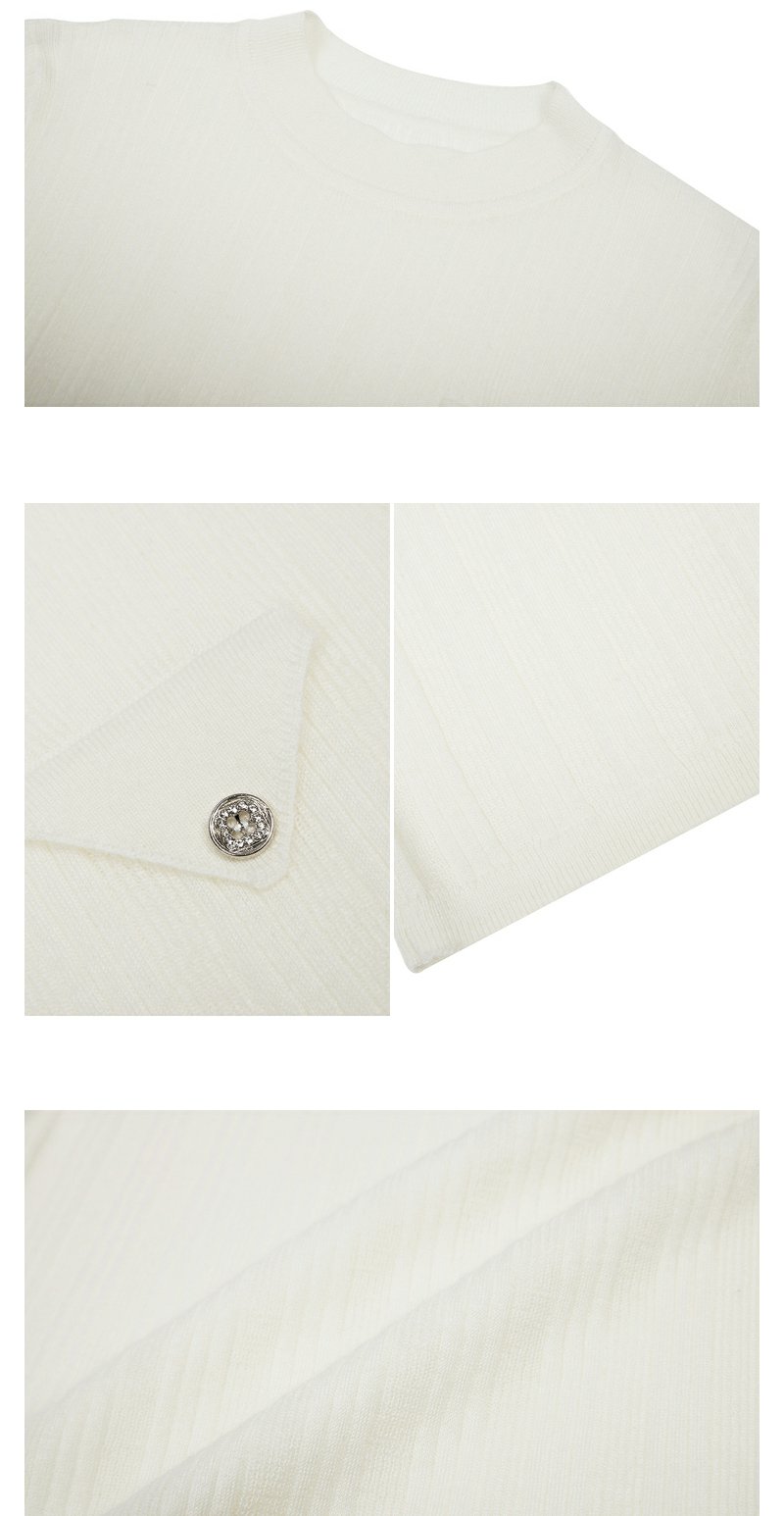 NEELLY纳俪商场同款半高领针织衫女竖坑条显瘦毛衣五分袖修身上衣
