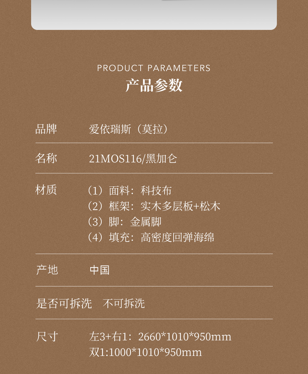 爱依瑞斯 莫拉系列沙发 21MOS116/黑加仑