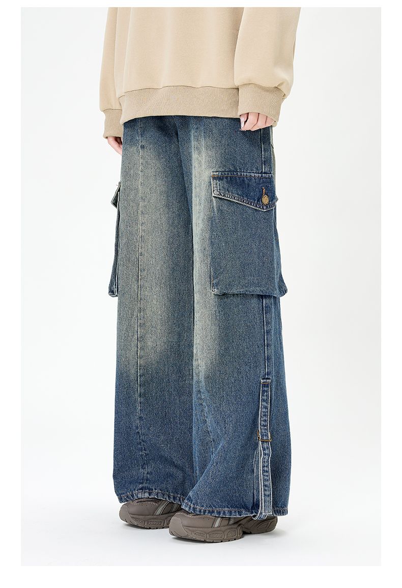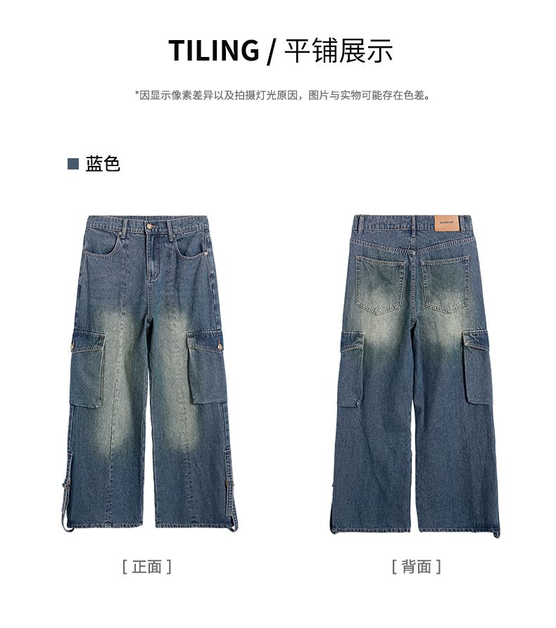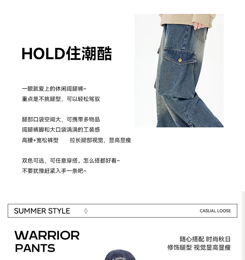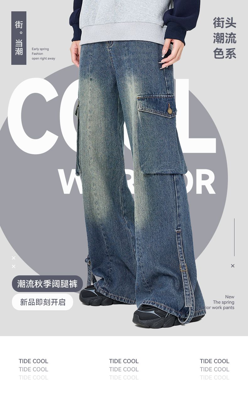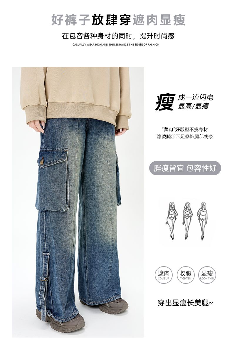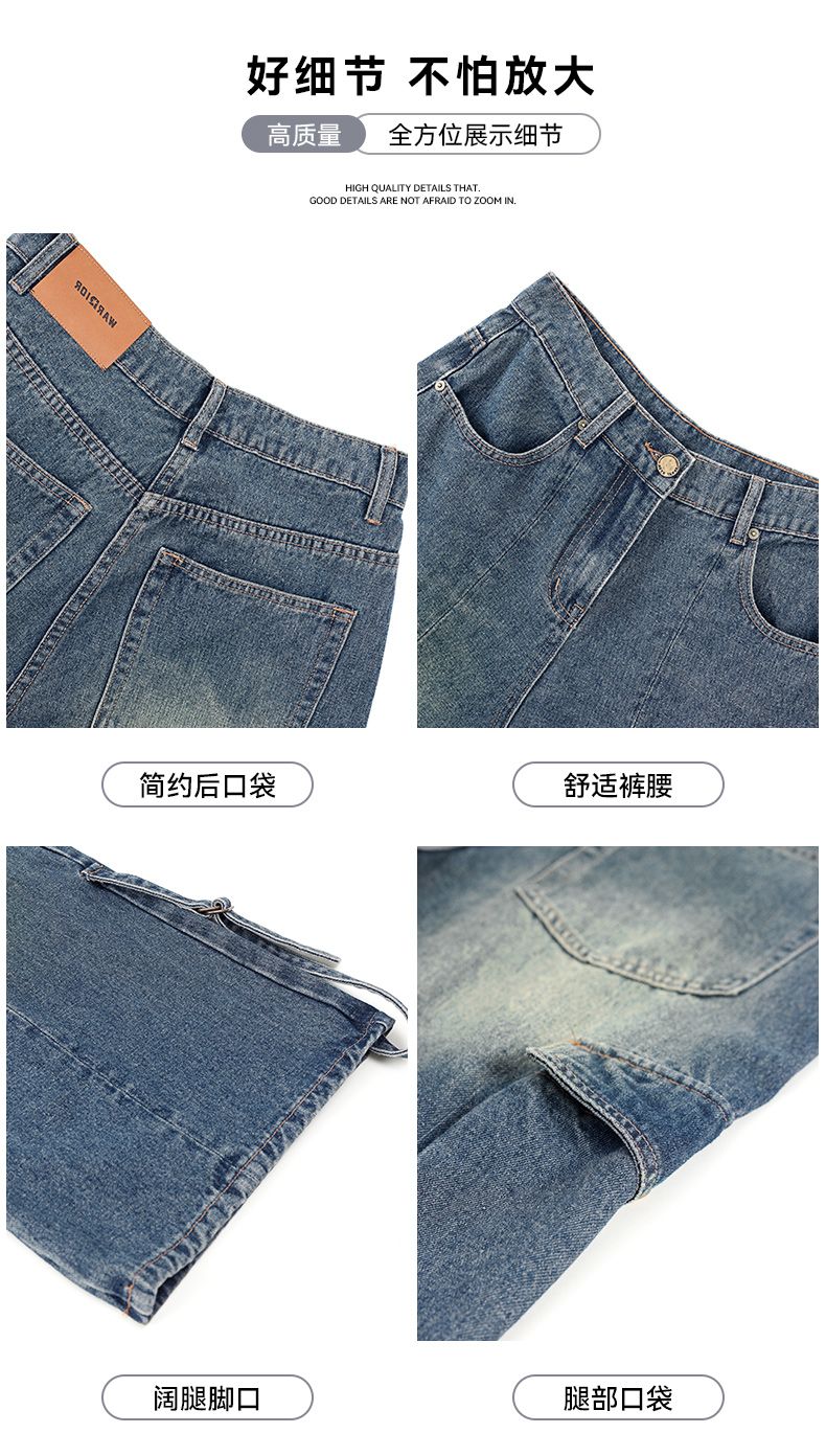 回力裤子女牛仔裤阔腿2025春季新款宽松直筒美式复古工装裤小个子