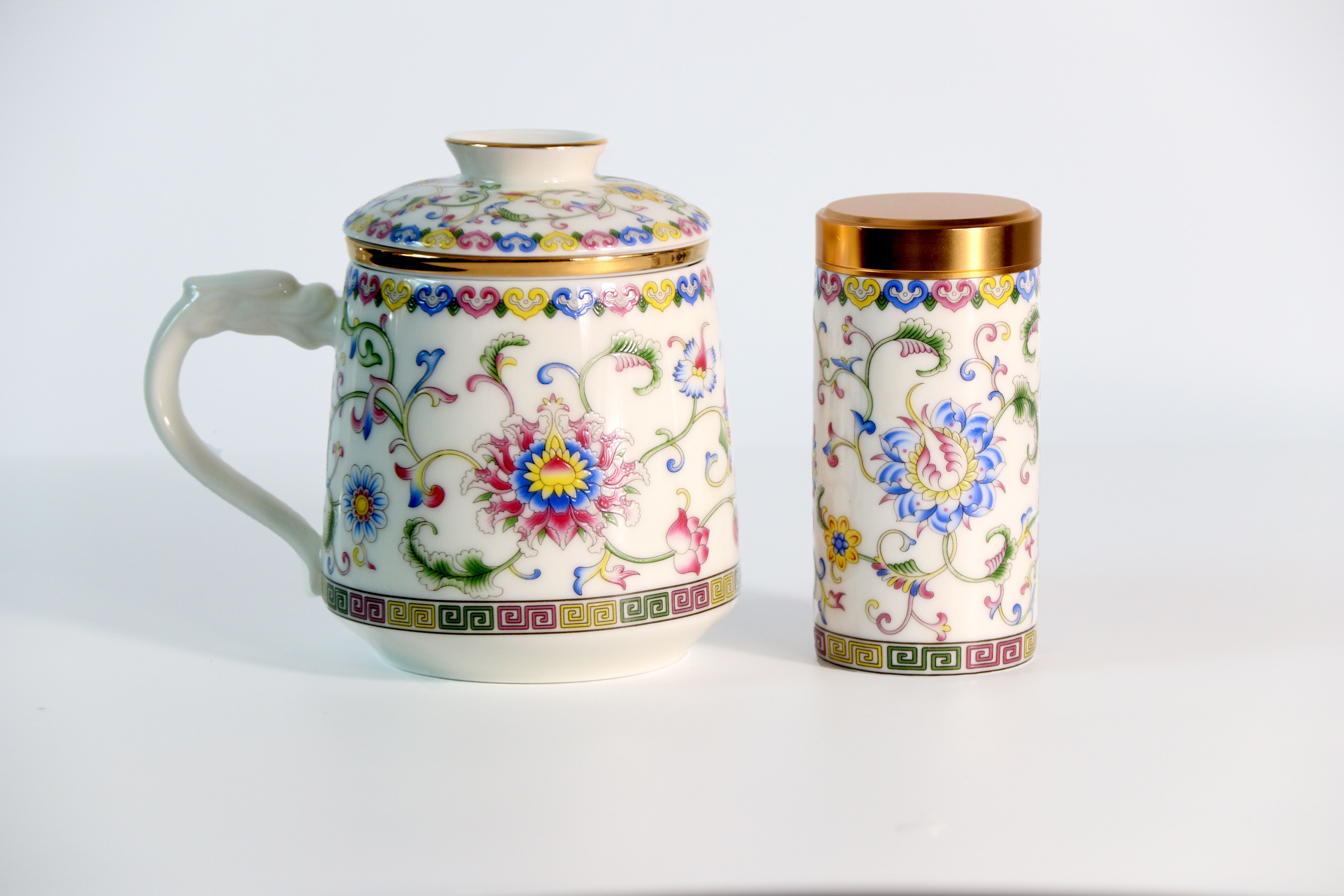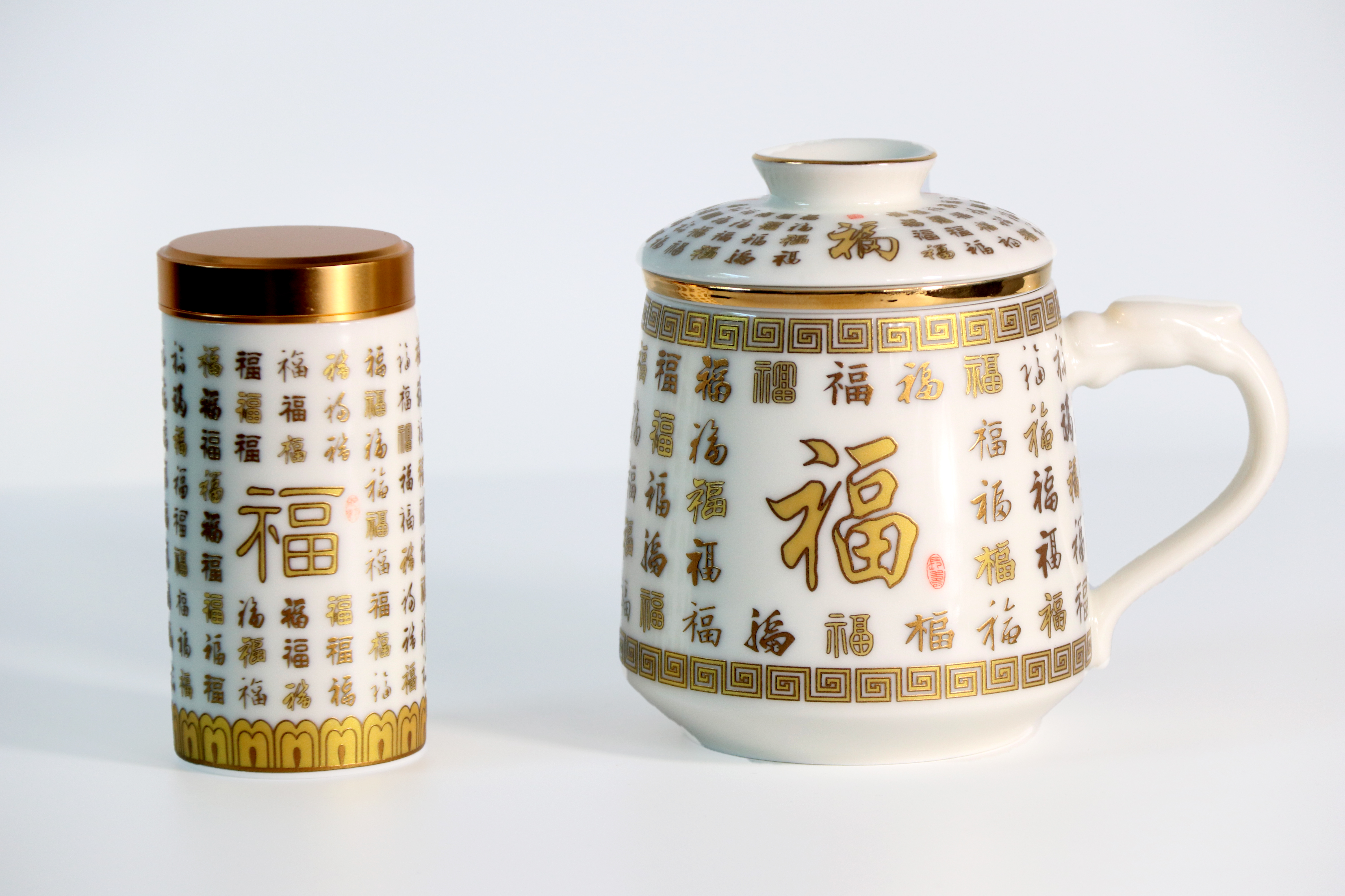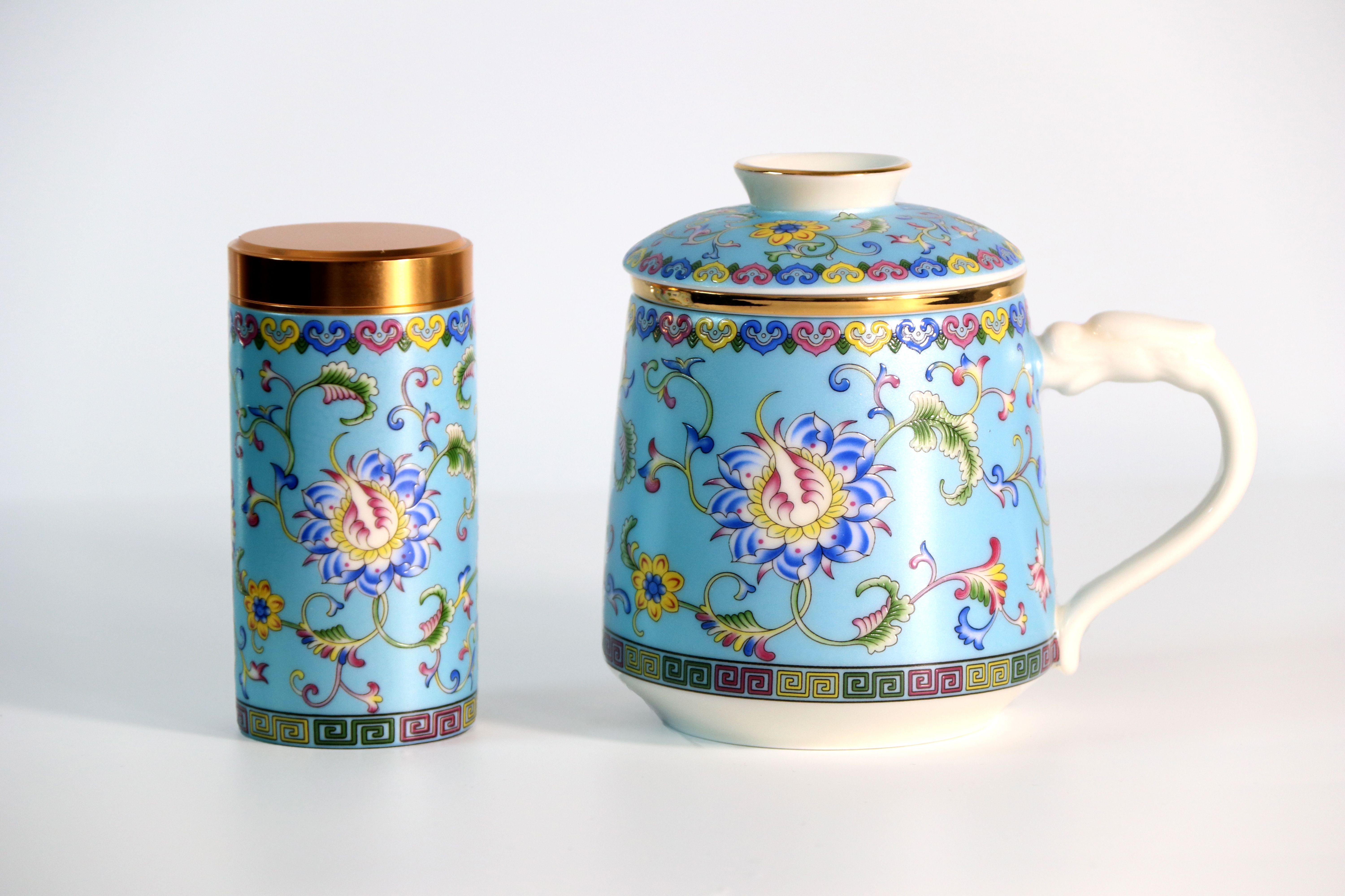 承德避暑山庄珍藏版珐琅彩羊脂玉瓷办公杯组礼盒