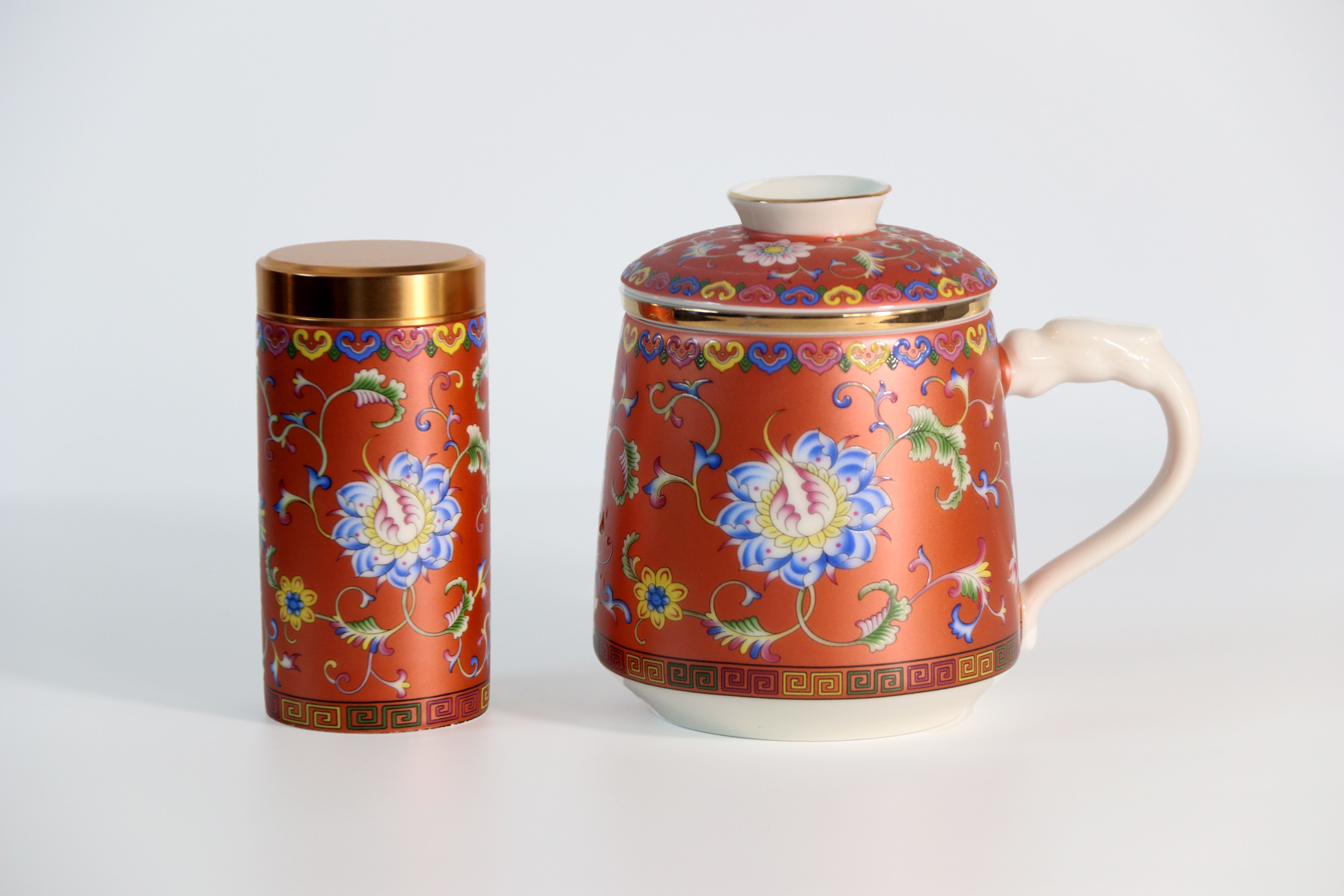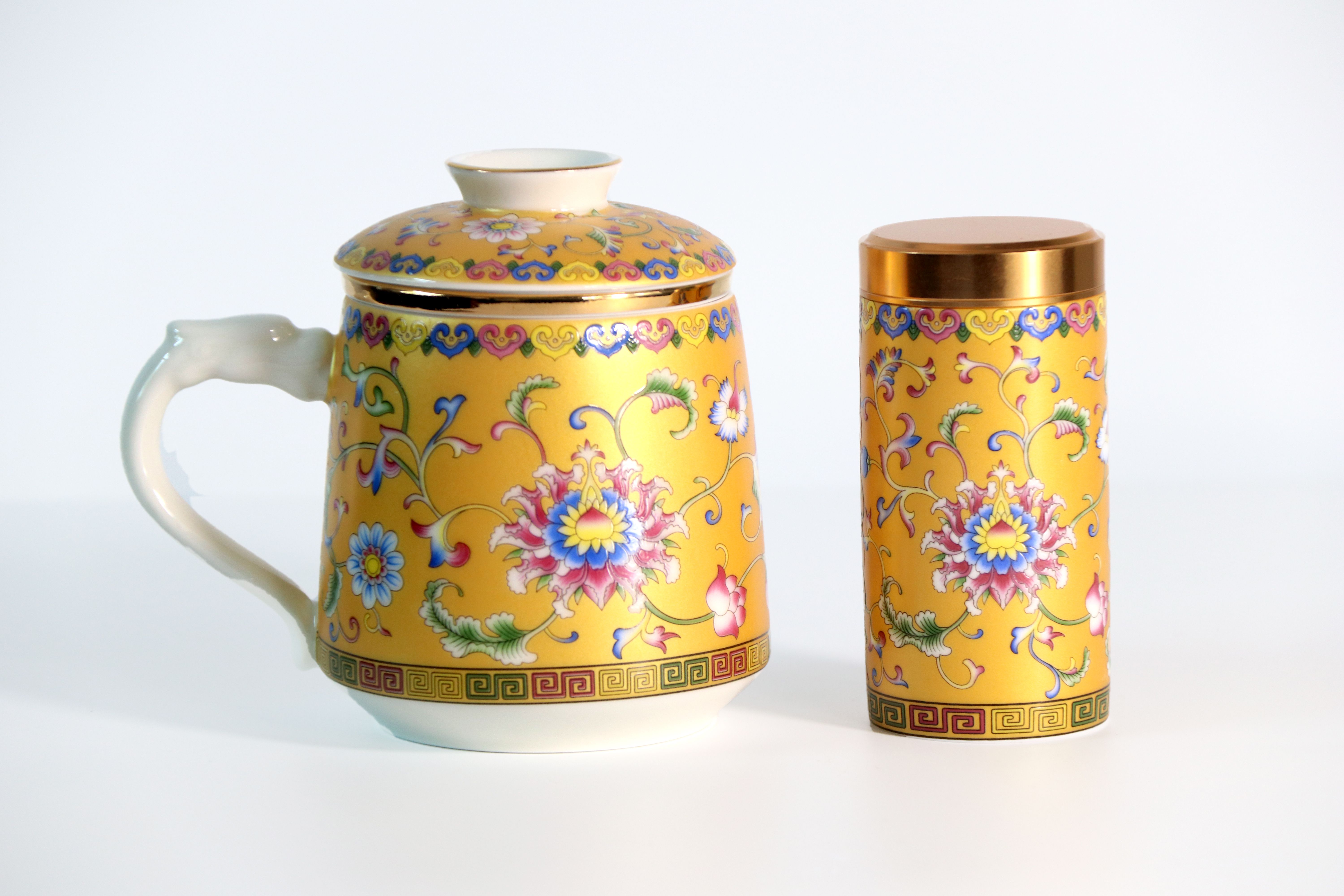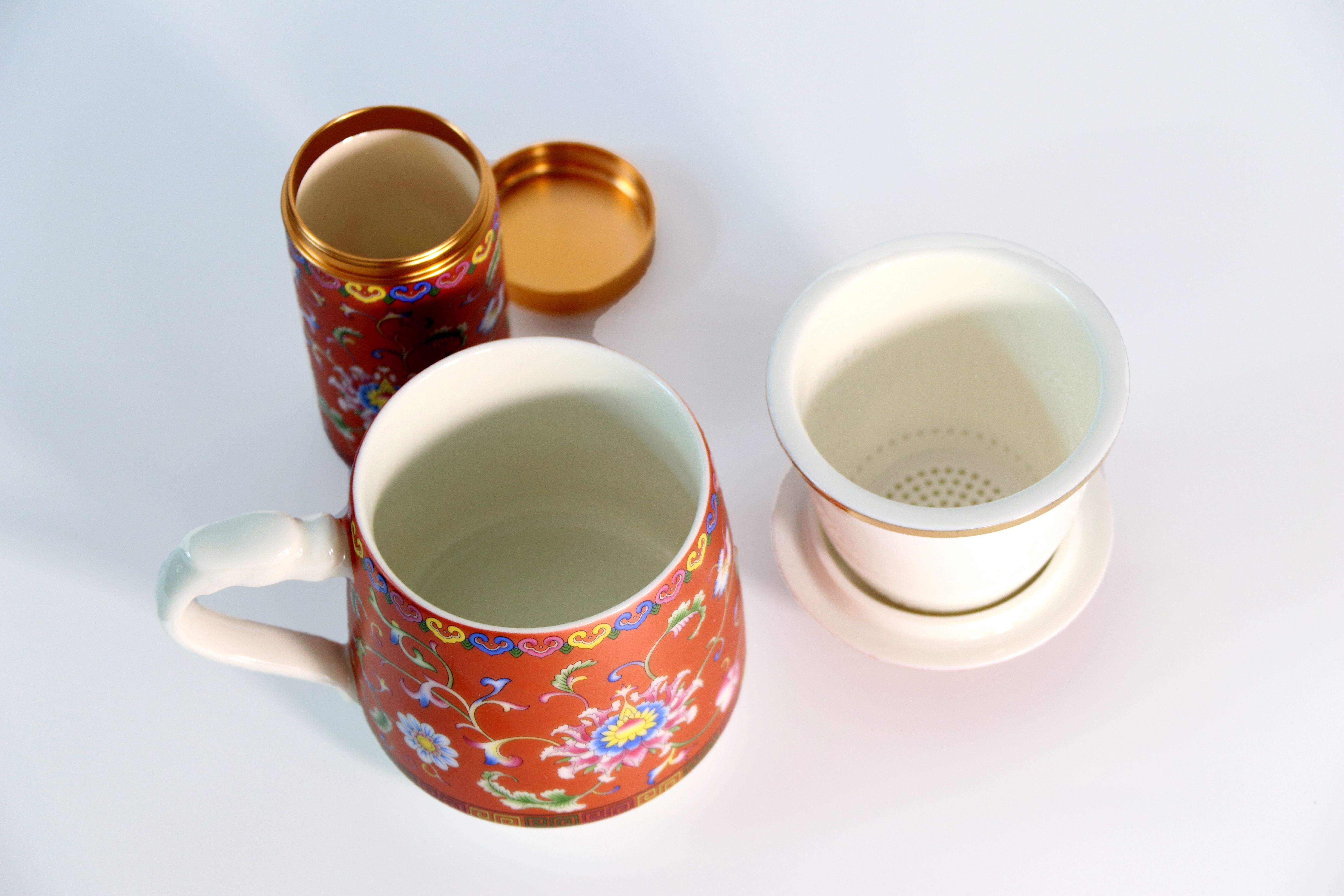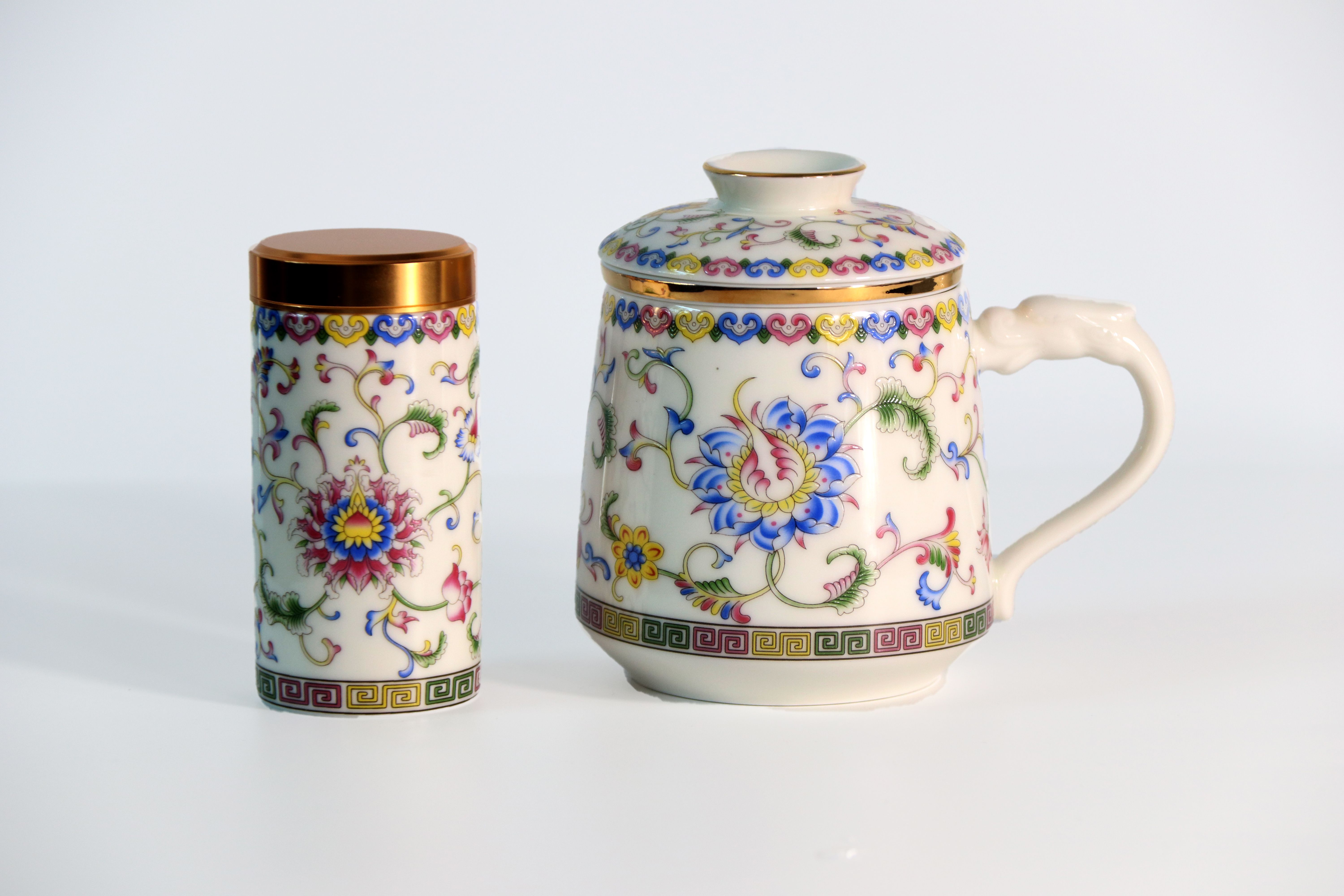 承德避暑山庄珍藏版珐琅彩羊脂玉瓷办公杯组礼盒