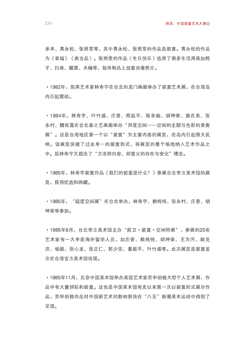 该书为作者自2015年开始写作的文化部课题,历经4年完成。作者曾出版《装置艺术》一书(湖南美术出版社2003年)。本书是在《装置艺术》基础上,增加了三分之二的篇幅。是国内目前关于中国装置艺术研究最完整的一部著作。