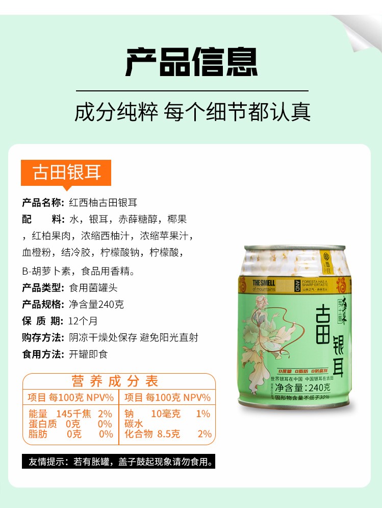 0593【国企严选,山海食材】古田银耳240g*6罐