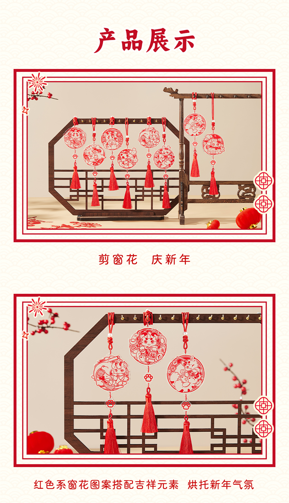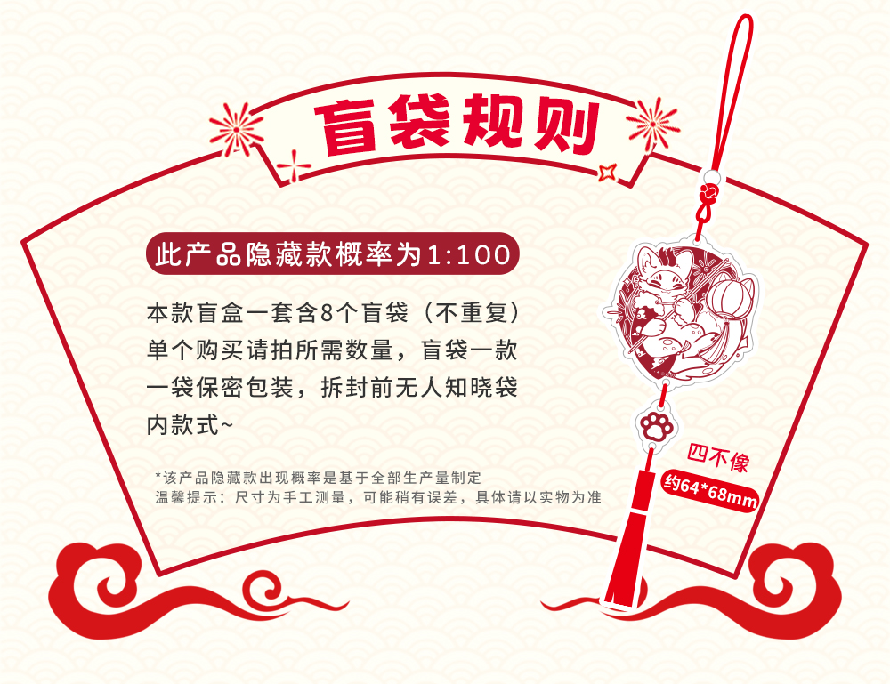 《非人哉官方店》有兽焉窗花系列亚克力挂件盲盒闪粉膜新年钥匙扣挂饰