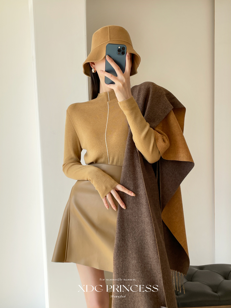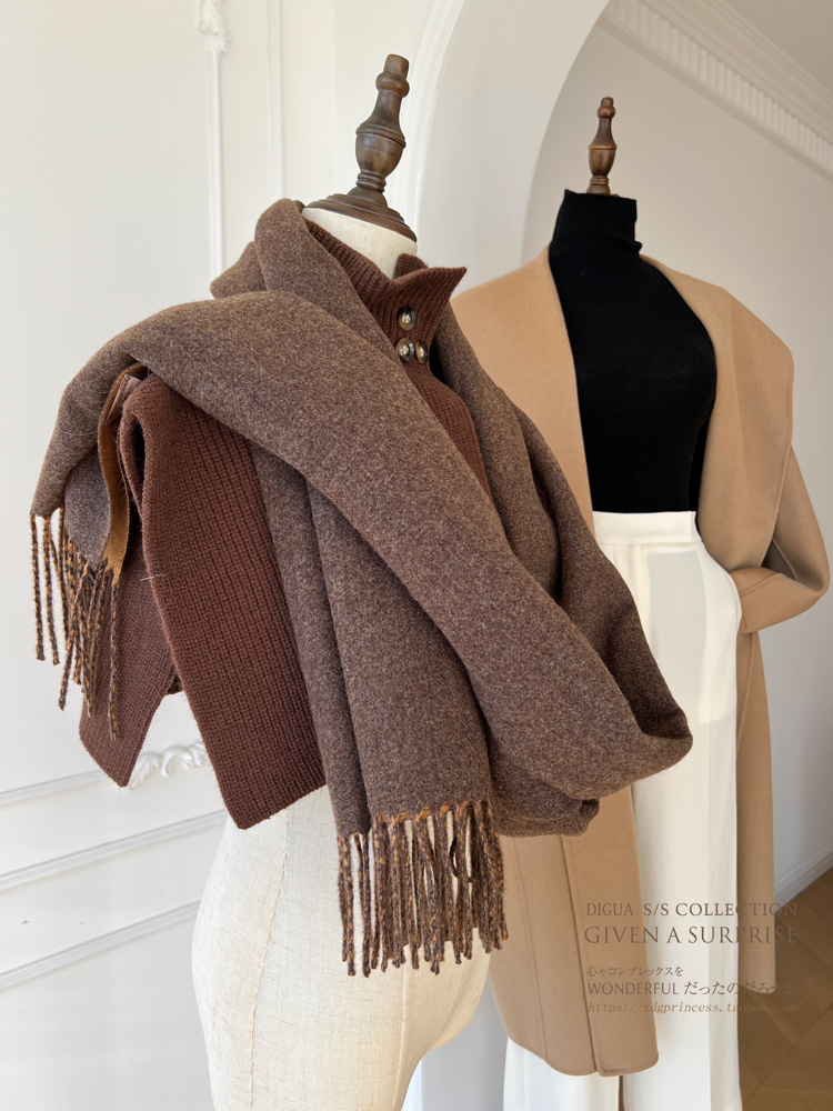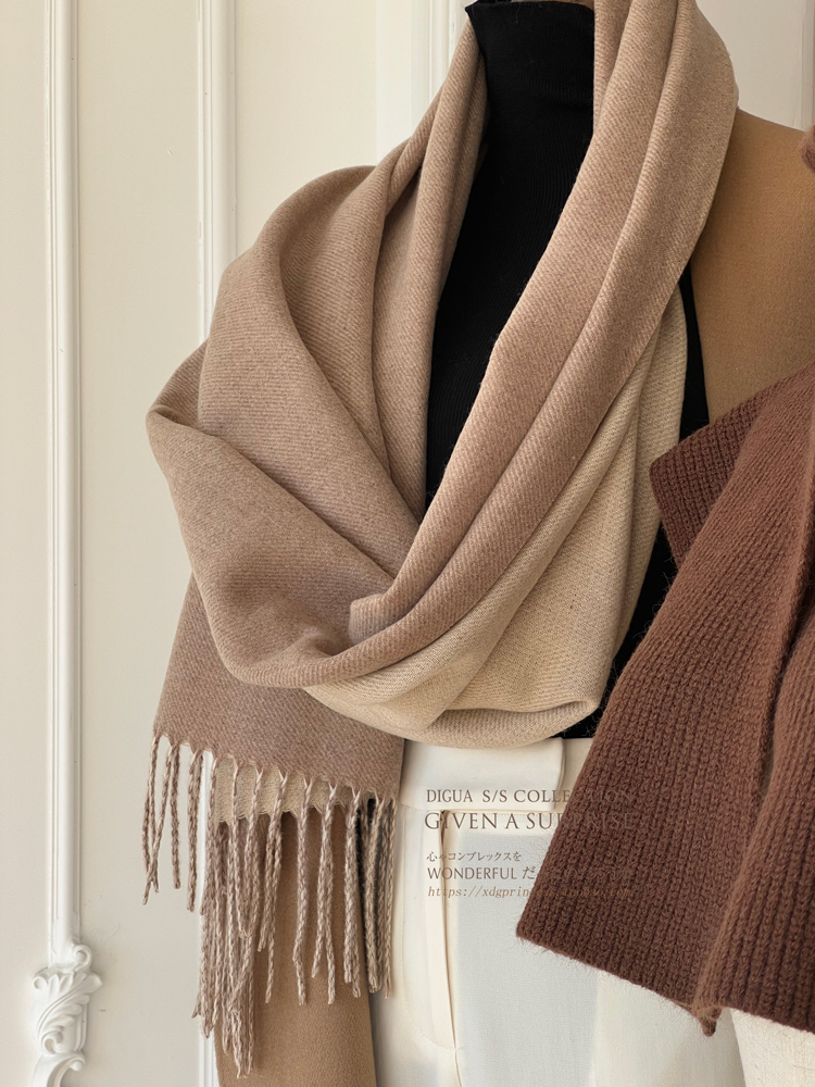 秋冬新款【轻奢大衣伴侣 双面纯色围巾女】欧美风 仿羊绒保暖披肩围脖