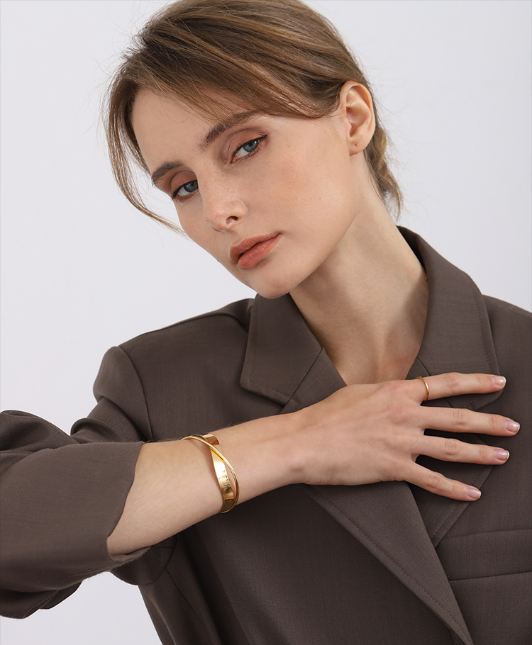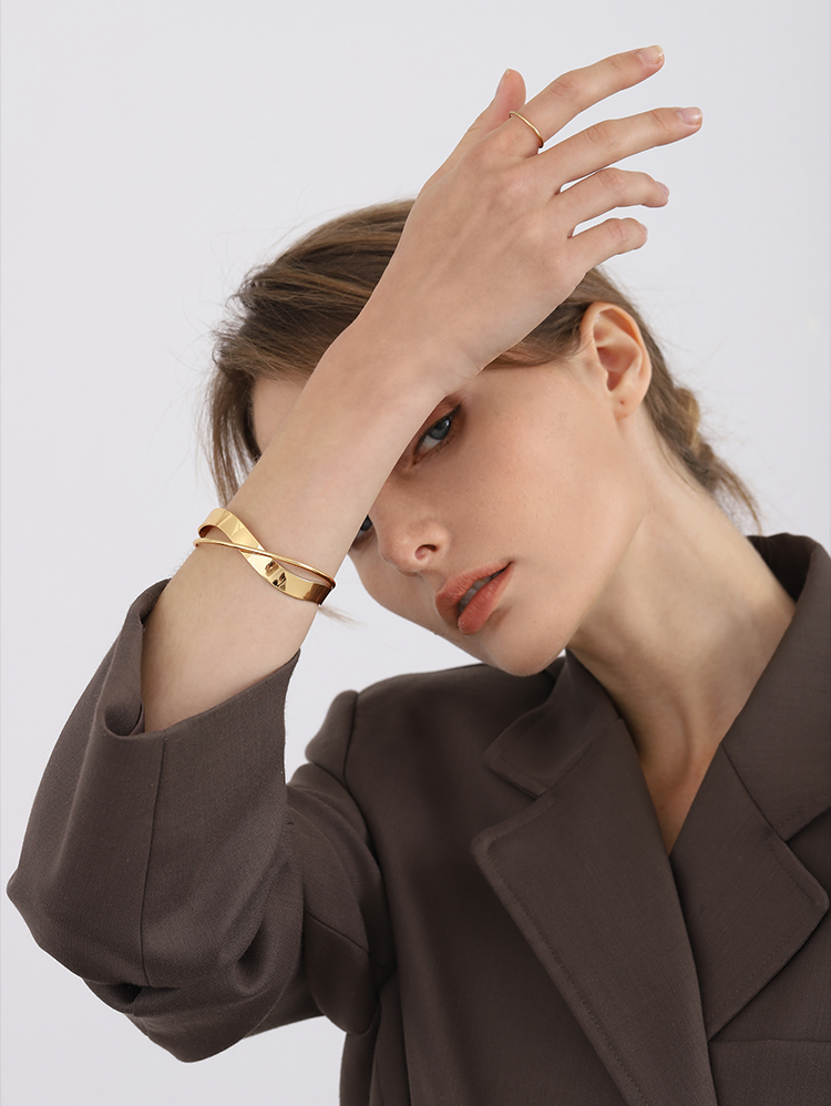 Oflye潮流饰品 金属复古手链女ins小众设计气质简约欧美时尚冷淡风手饰