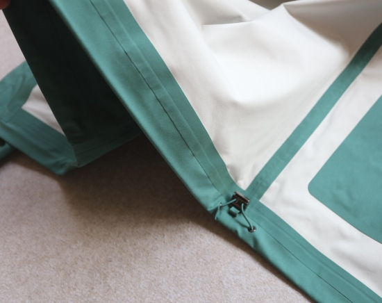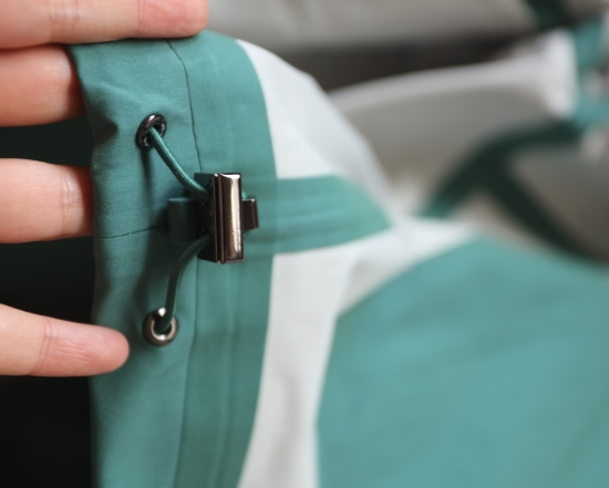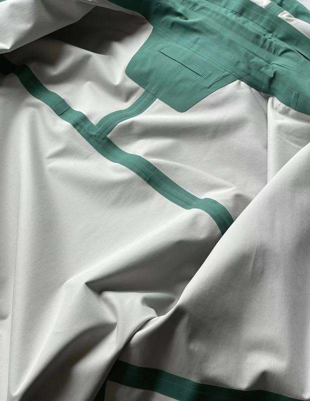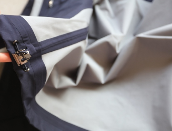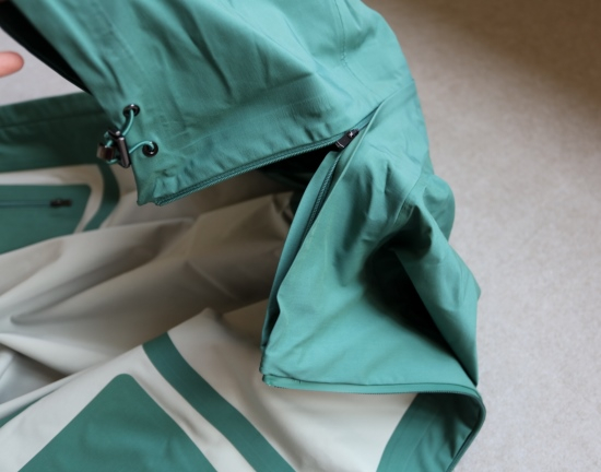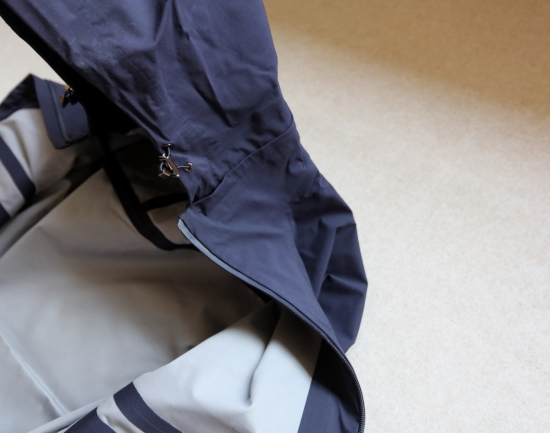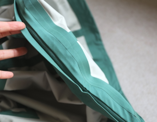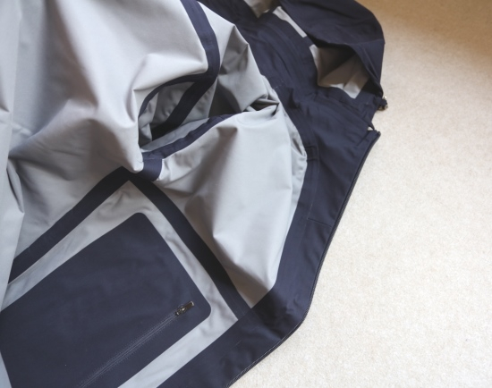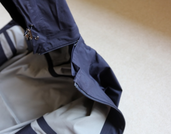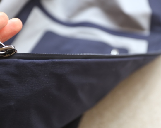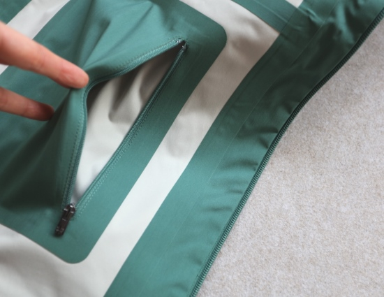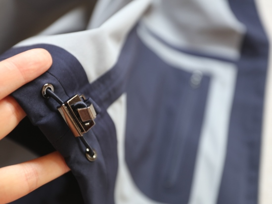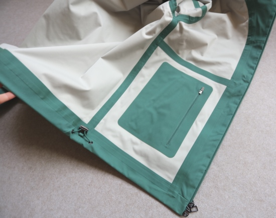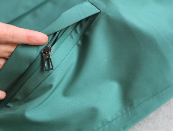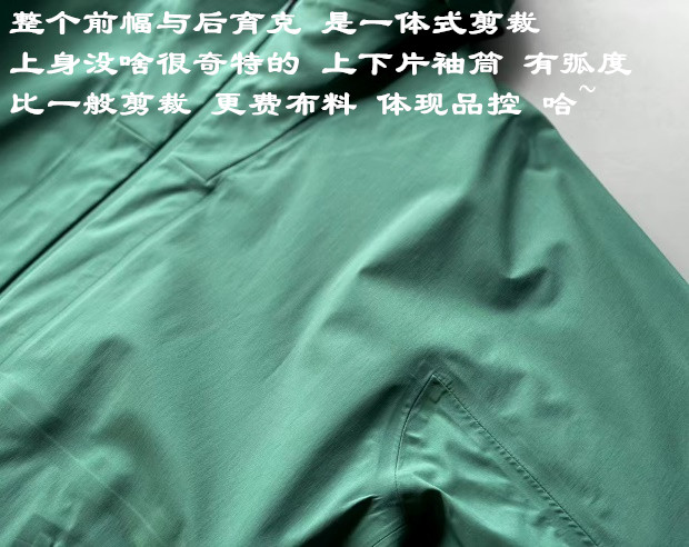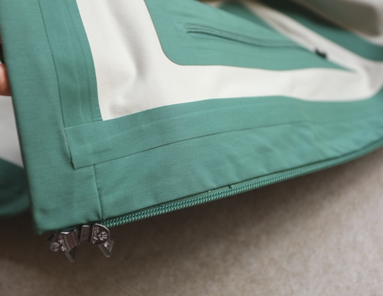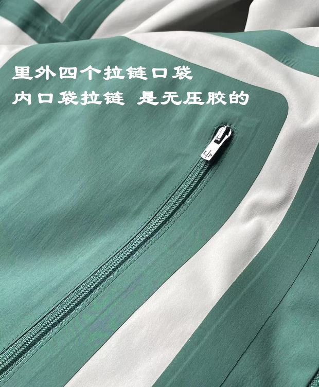 直身版型 底边有弹力抽绳 里外四个拉链口袋 内拉链 是无压胶的