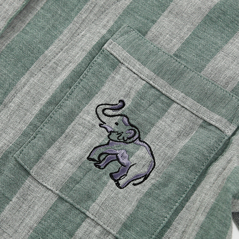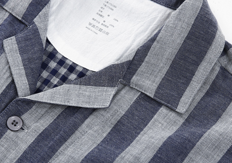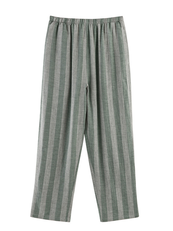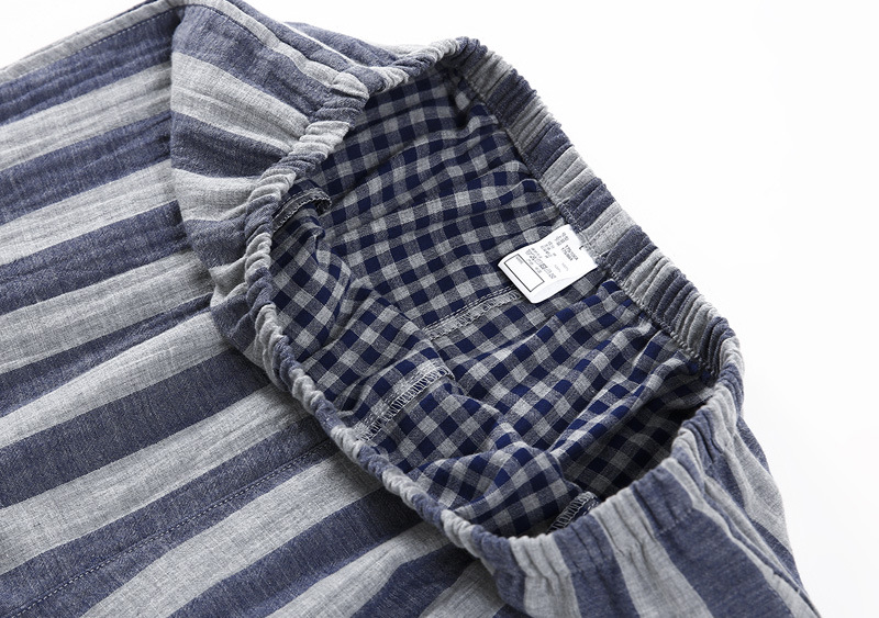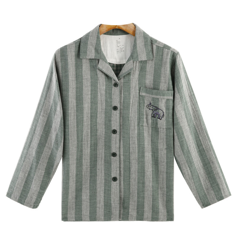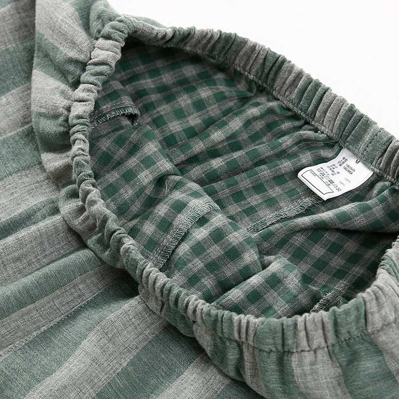 【竖条纹双层纱长袖长裤】日式无印家居服良品双层纱居家服睡衣全棉男款女款舒适竖条纹套装