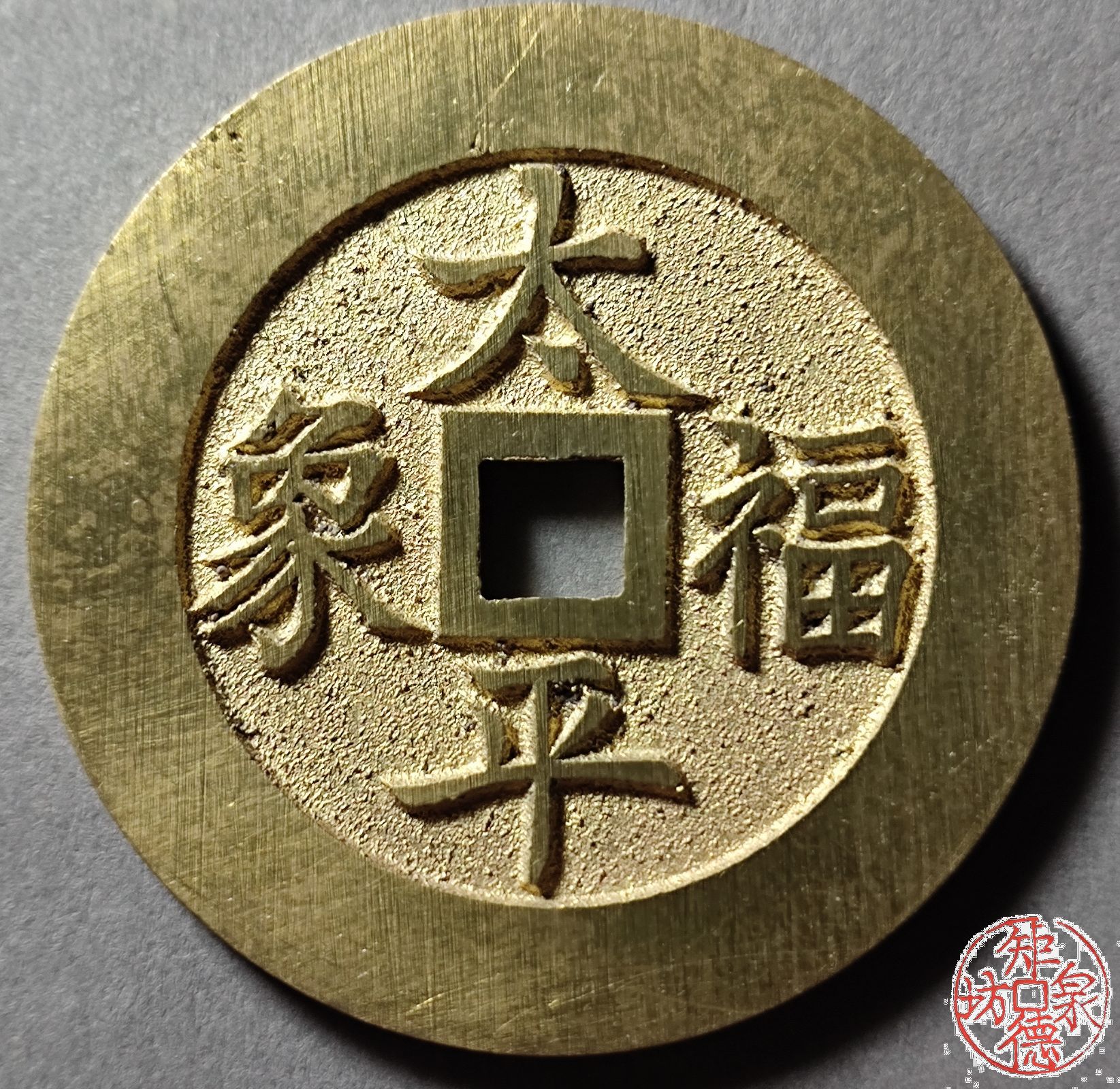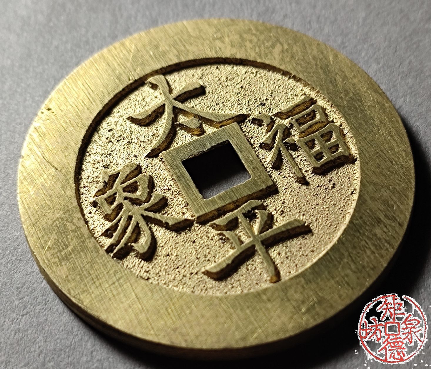 为了尽量还原古代钱币的文字神韵与时代铸造特征,每一枚都进行手工修刀、打磨。会有打磨痕迹、刻刀痕迹,铸造气孔或者微小沙眼,这正是手工与机器制作的区别,并非瑕疵。