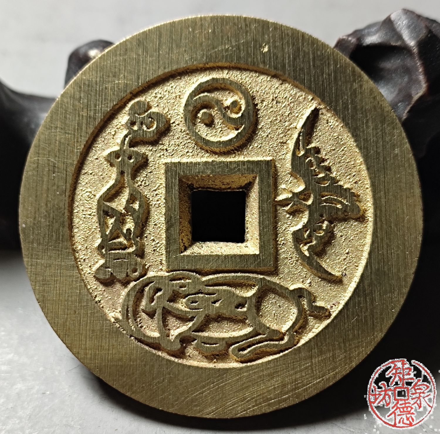 纯铜古法母钱翻砂铸造而成,容易上包浆。可用于文房镇纸、茶宠、杯子托、文玩垫、手把件……