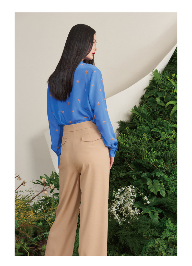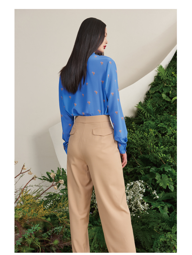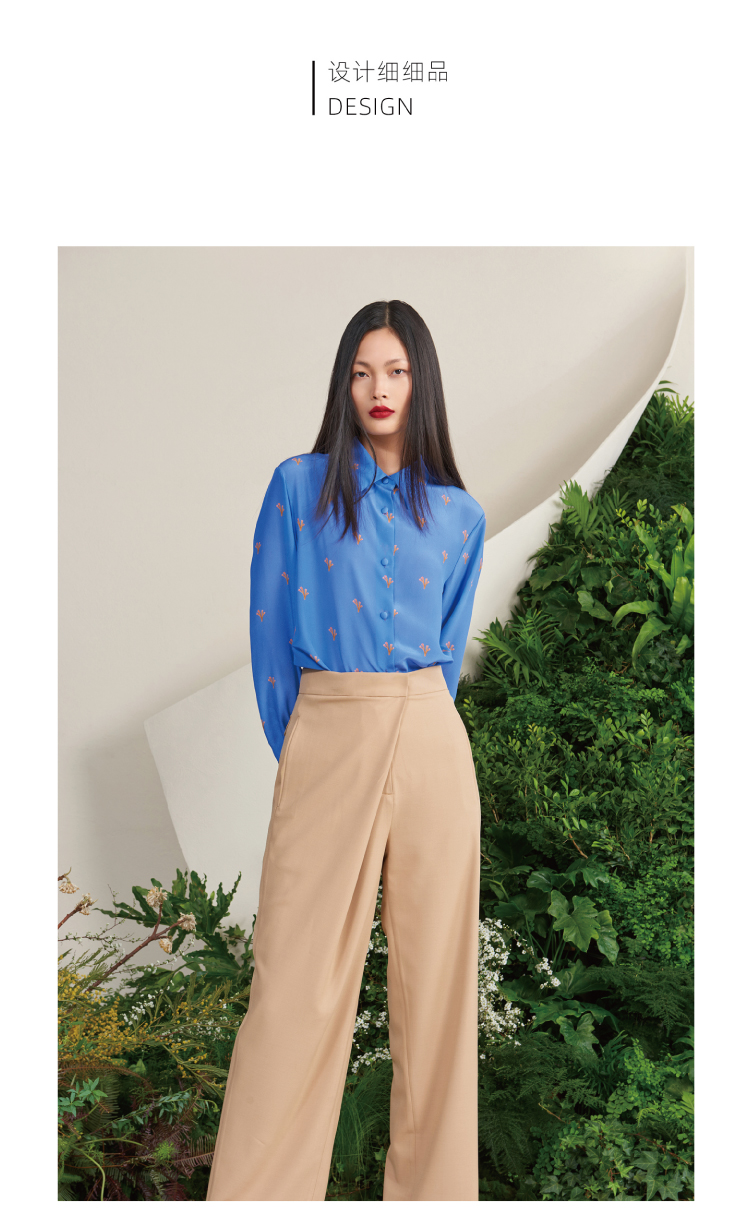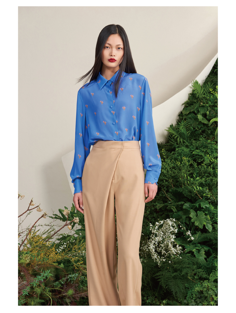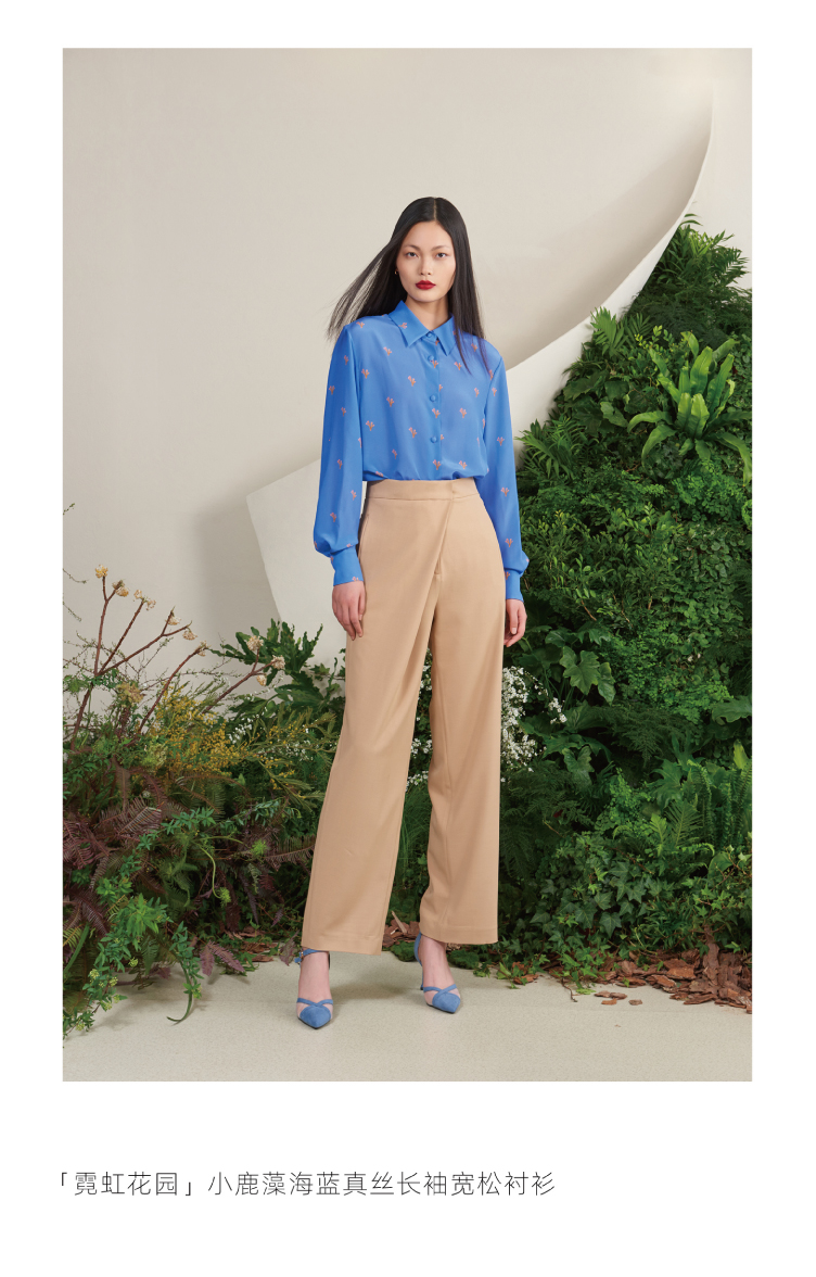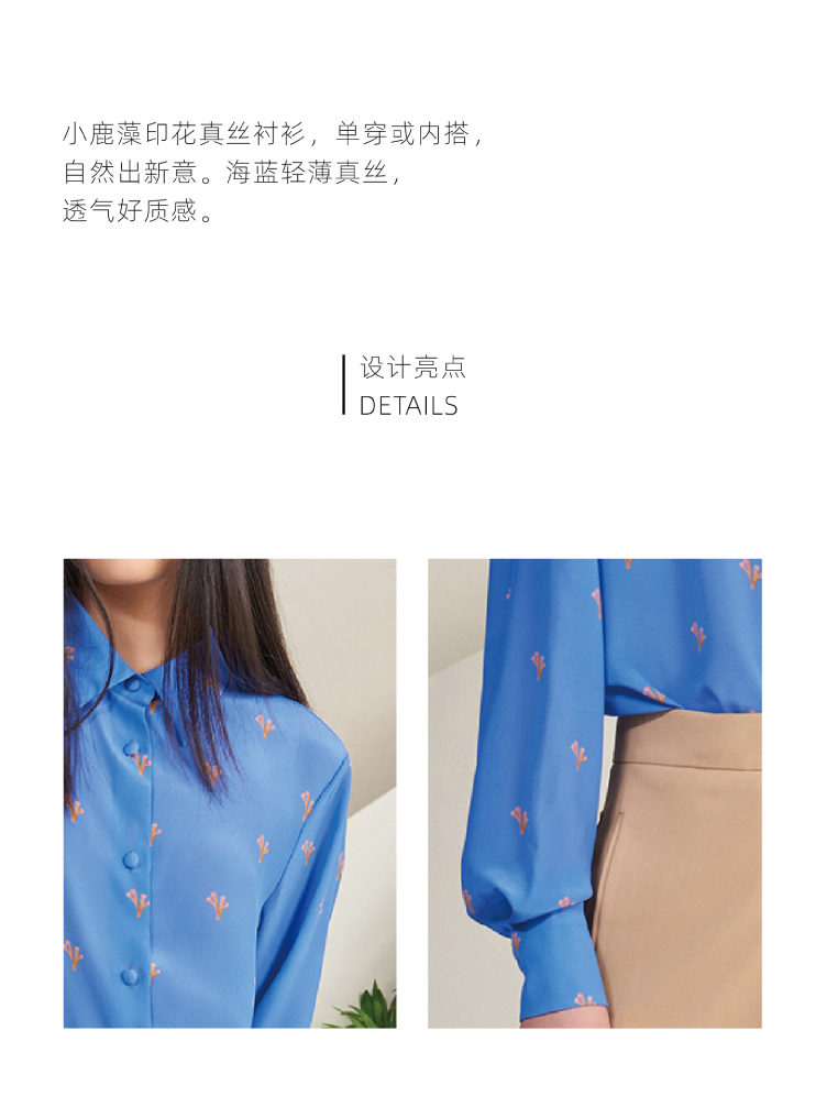 【霓虹花园】小鹿藻海蓝真丝长袖宽松衬衫00189