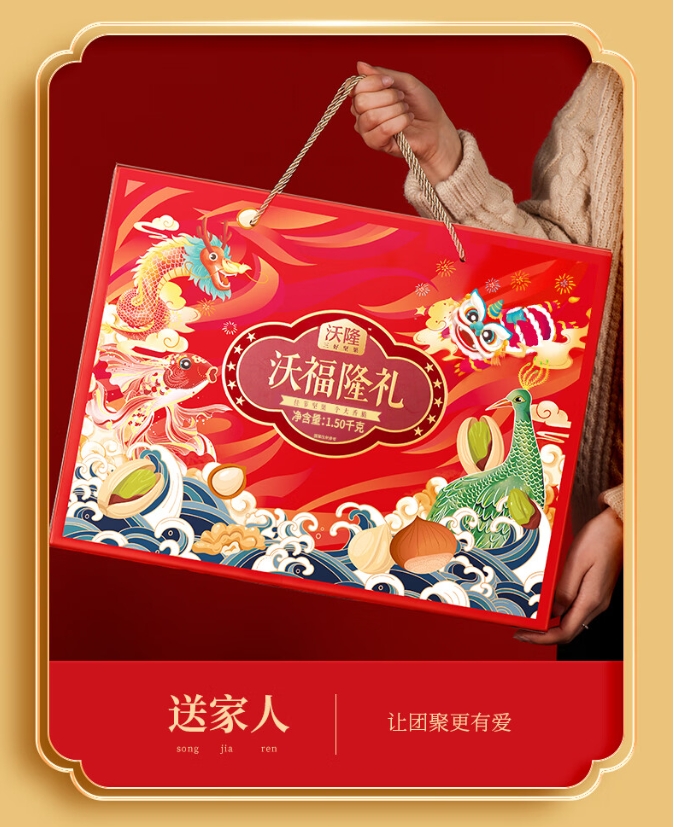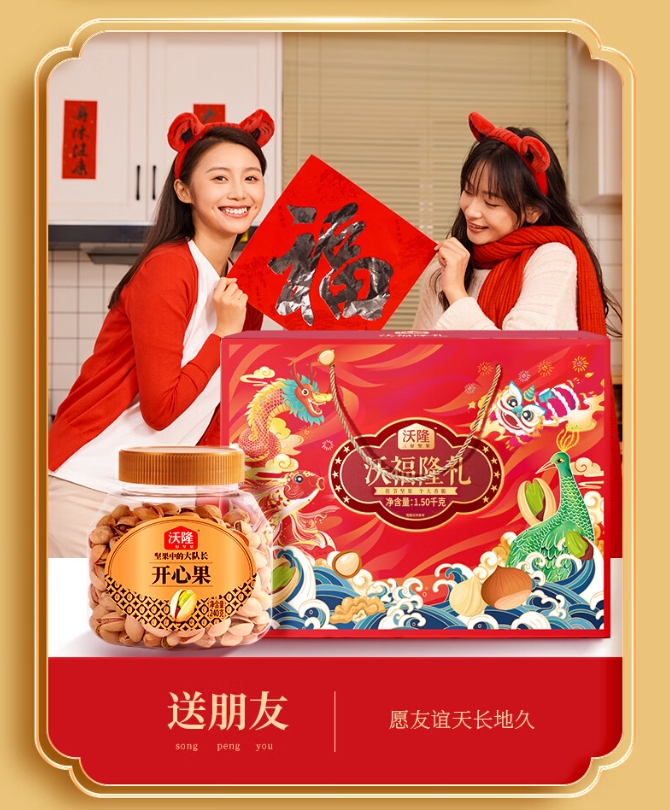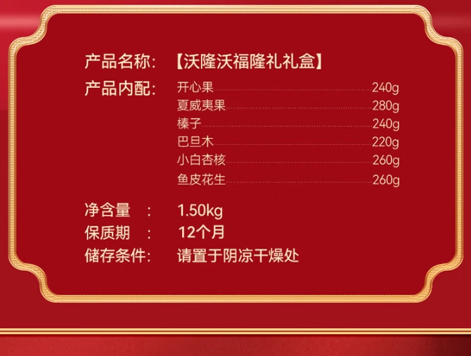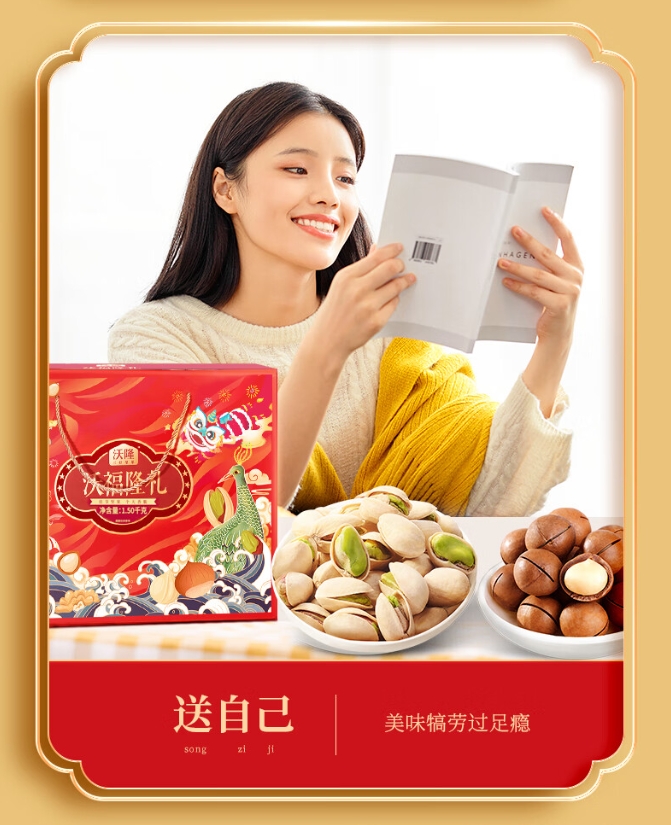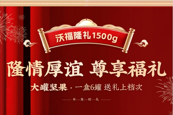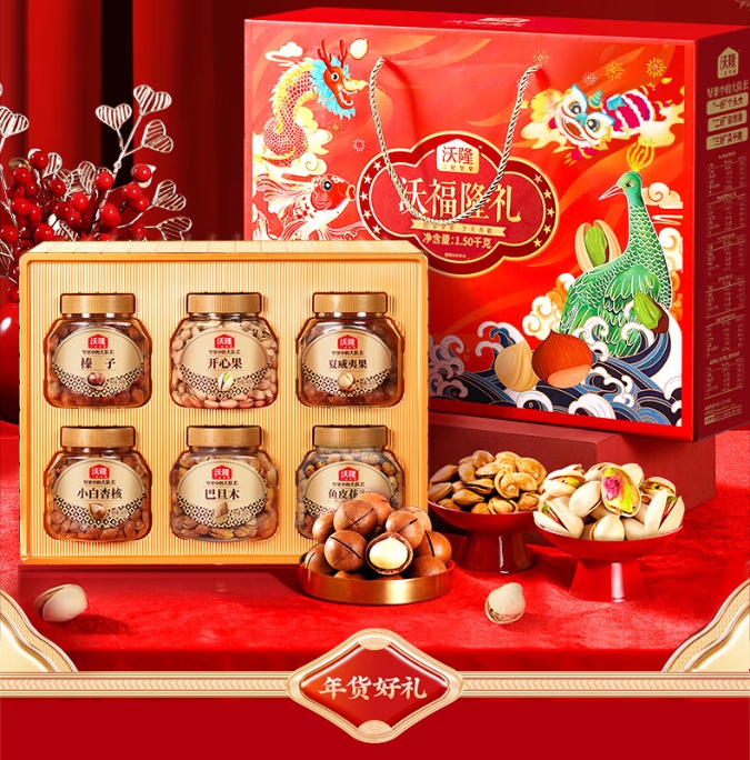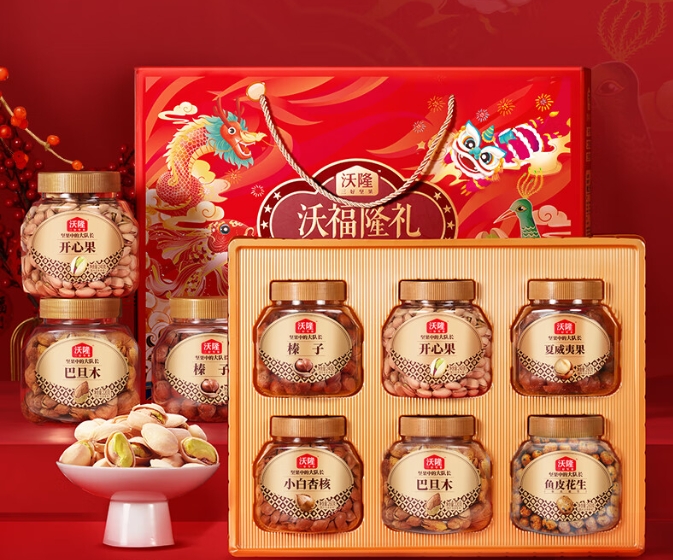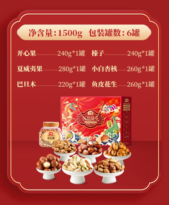 【年货节】沃隆纯坚果礼盒6罐1.5kg沃福隆礼开心果干果零食大礼包年货礼盒送礼