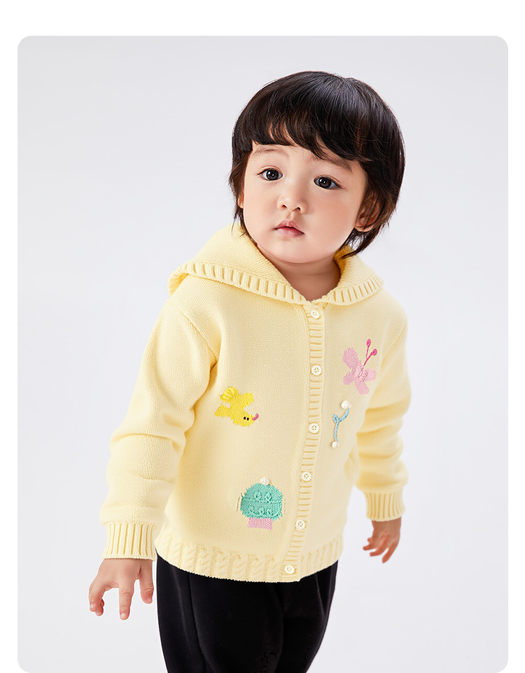 巴拉巴拉balaOne宝宝开衫毛衣男女童绣花提花针织衫2025新款秋装