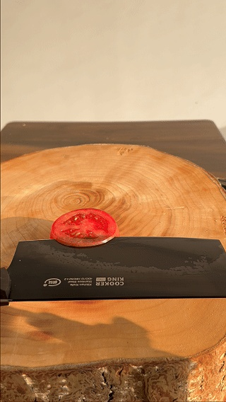 让我们在来看看细节吧~非常到位,很难让人不爱~ ✅采用弧形刀刃设计 下刀利落,切感顺滑,切起来得心应手👀 ✅仿锤形刀柄设计,握感舒适不打滑,符合人体工程学 无论是刀面、刀刃、手柄,每一处的质感都无可挑剔!! 是我用过最舒服、最好看的刀了呢~