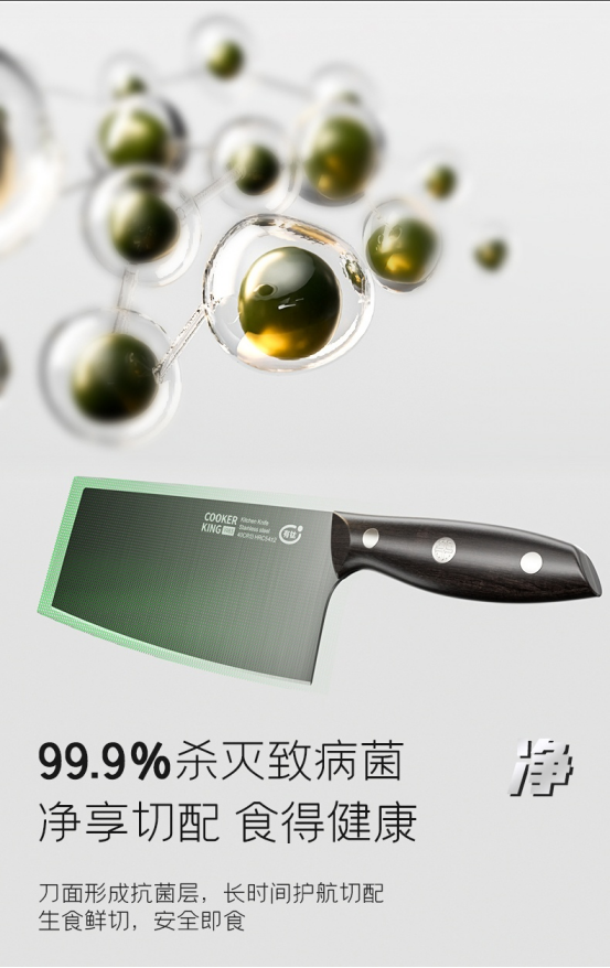 👀高颜值高性价比 实物真的非常有质感~一整个惊艳的程度 而且这款极钛斩切刀和普通的刀具不一样哦 ✅抗菌率高达99.9% 有了这个抗菌黑科技,再也不用担心会滋生细菌了 更好的守护全家人的健康!! 附:权威机构认证