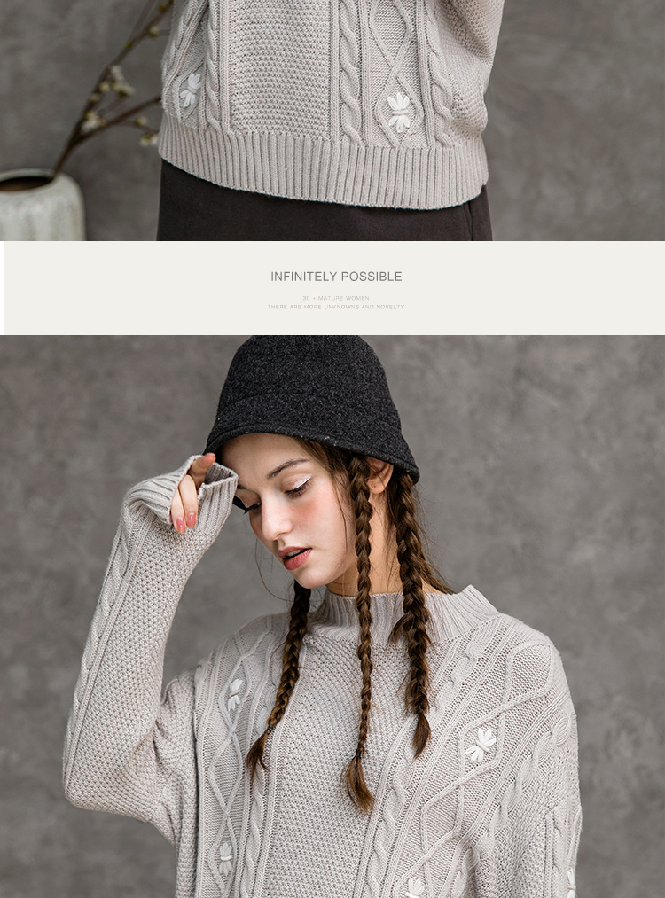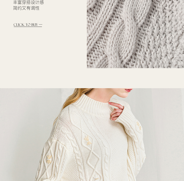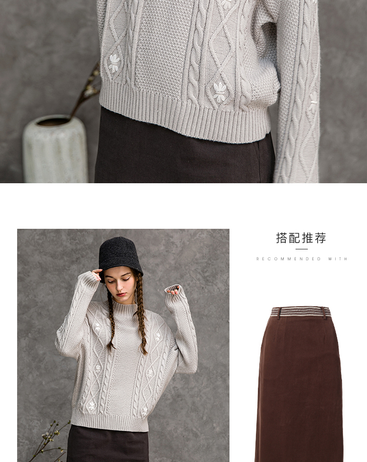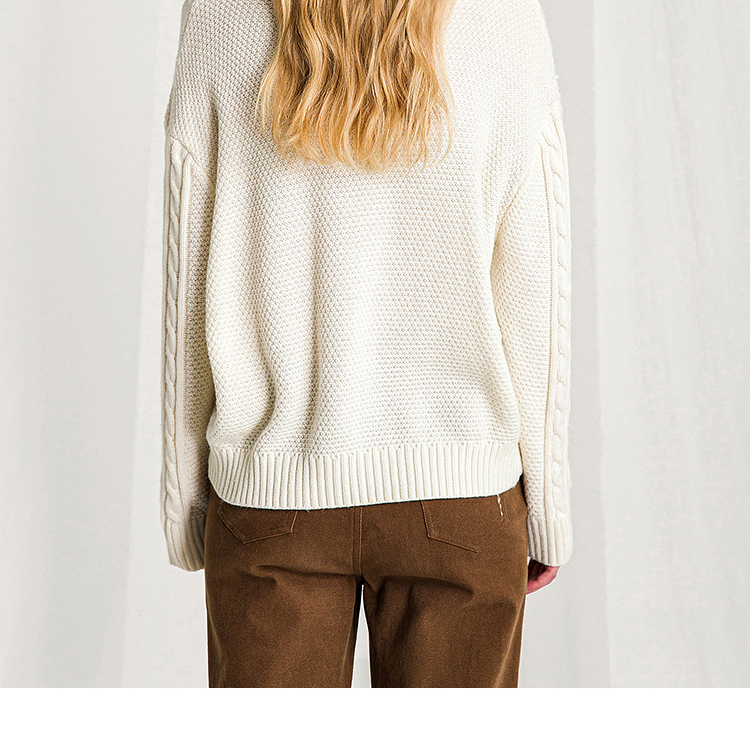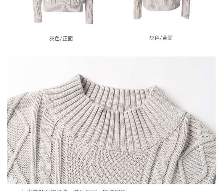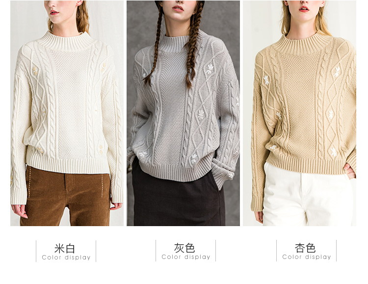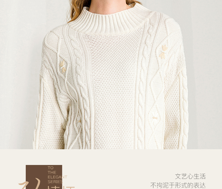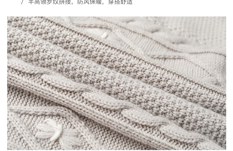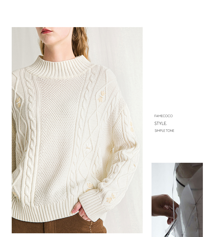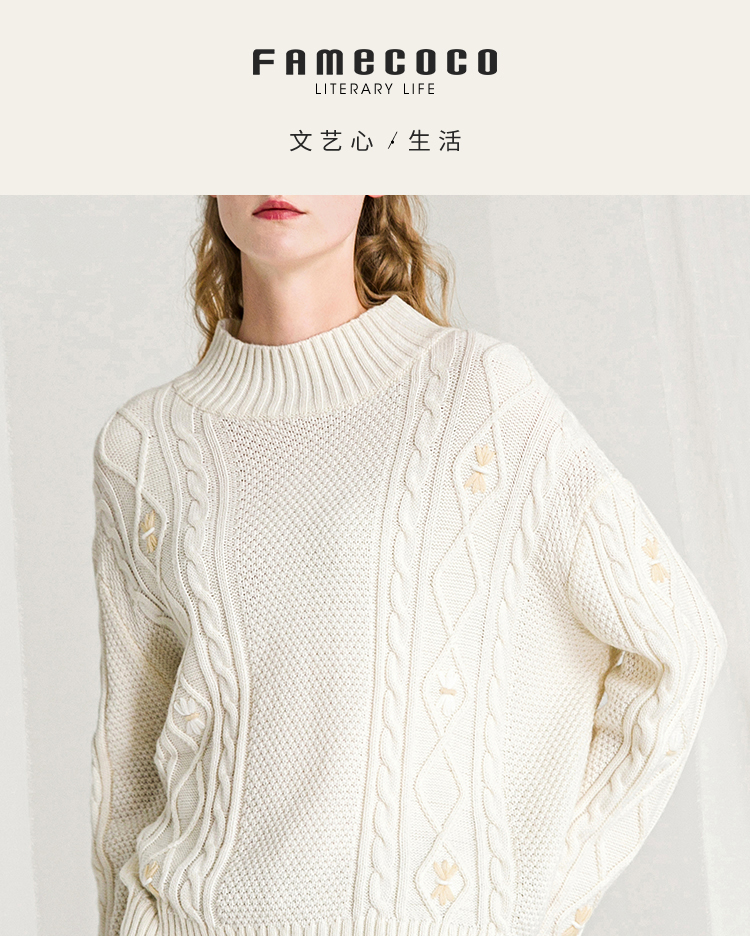 Famecoco范可儿半高领毛衣女秋冬宽松慵懒风菱形提花羊毛针织毛衣F218DB014