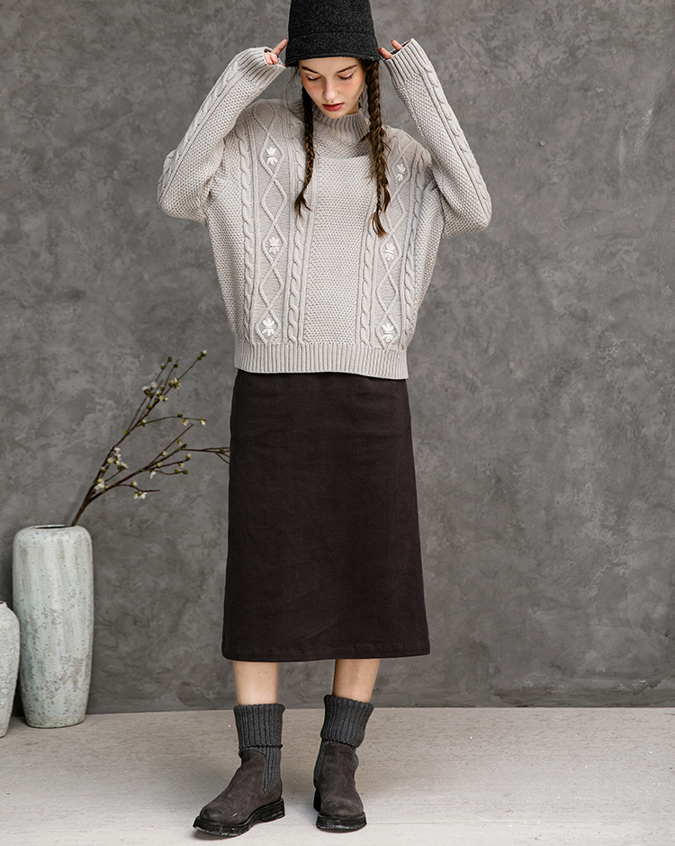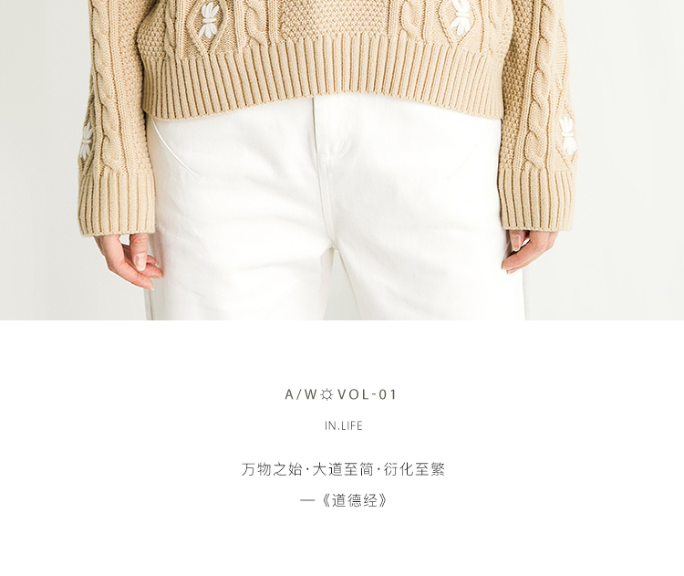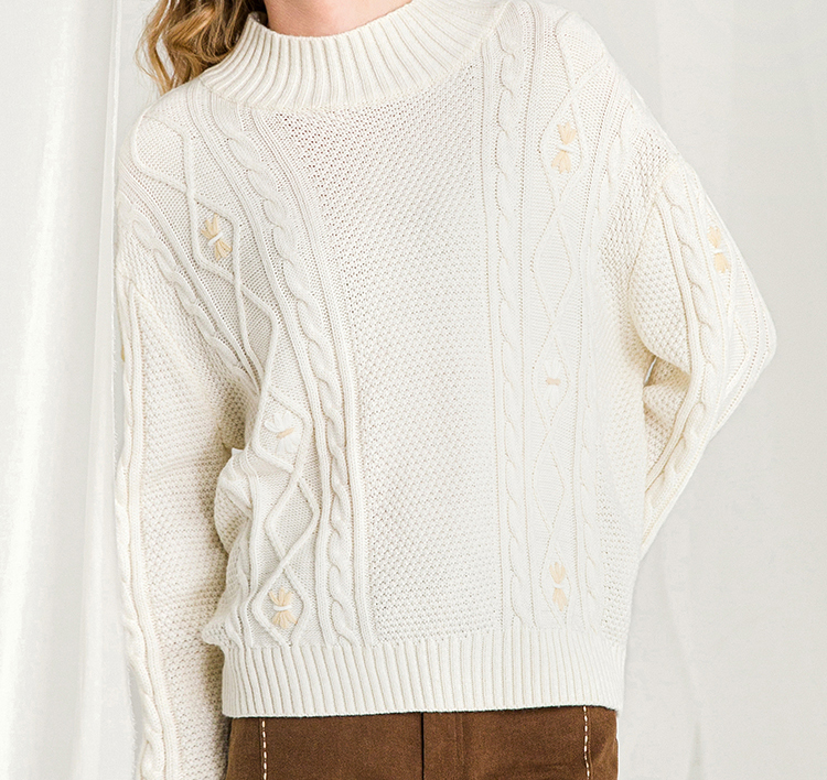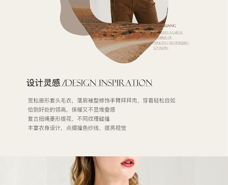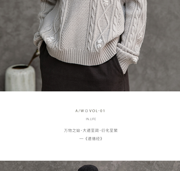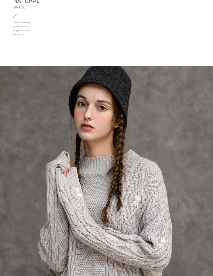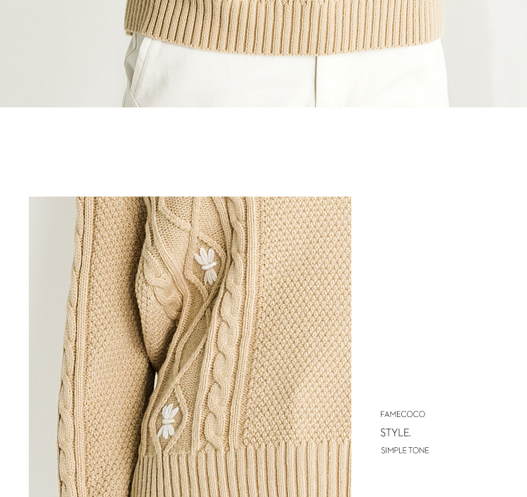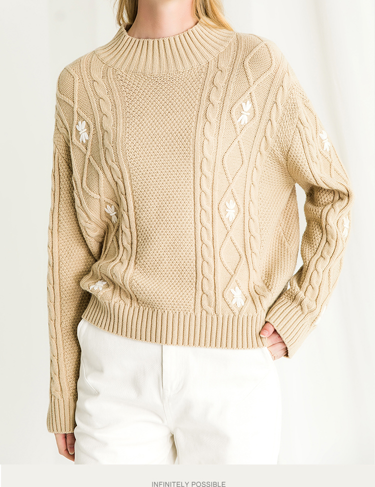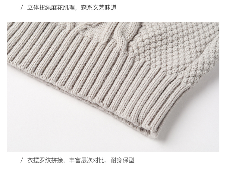 Famecoco范可儿半高领毛衣女秋冬宽松慵懒风菱形提花羊毛针织毛衣F218DB014