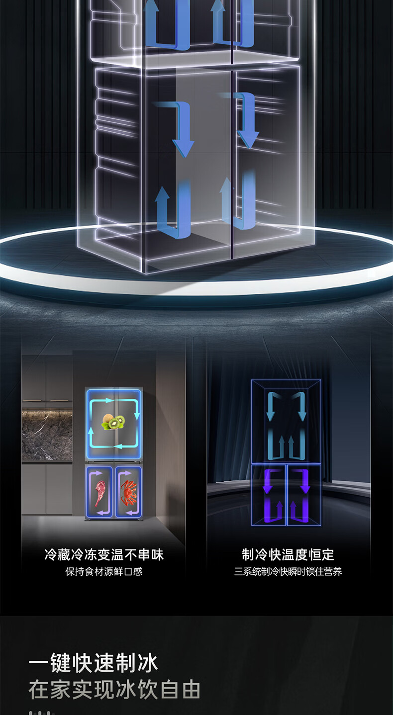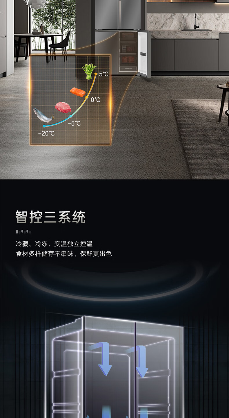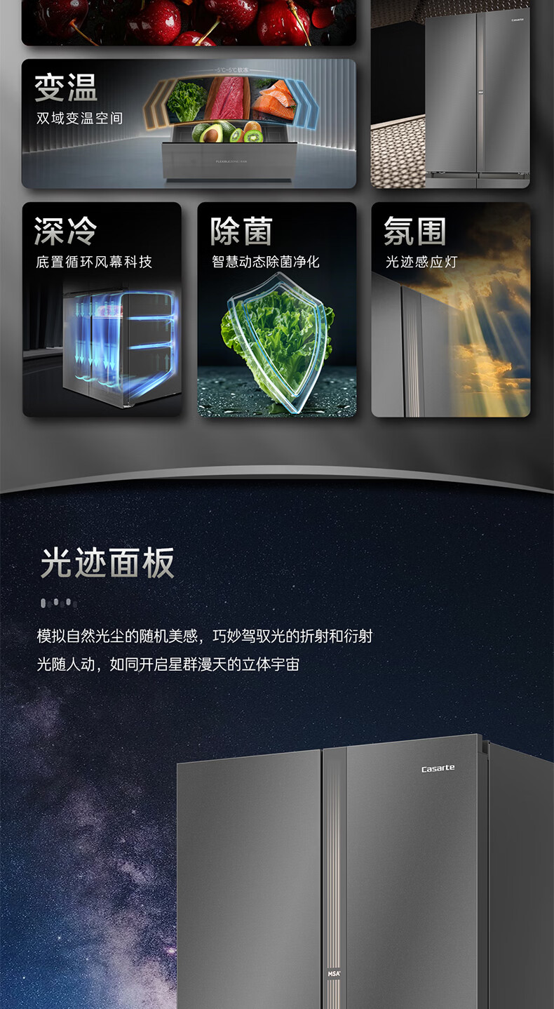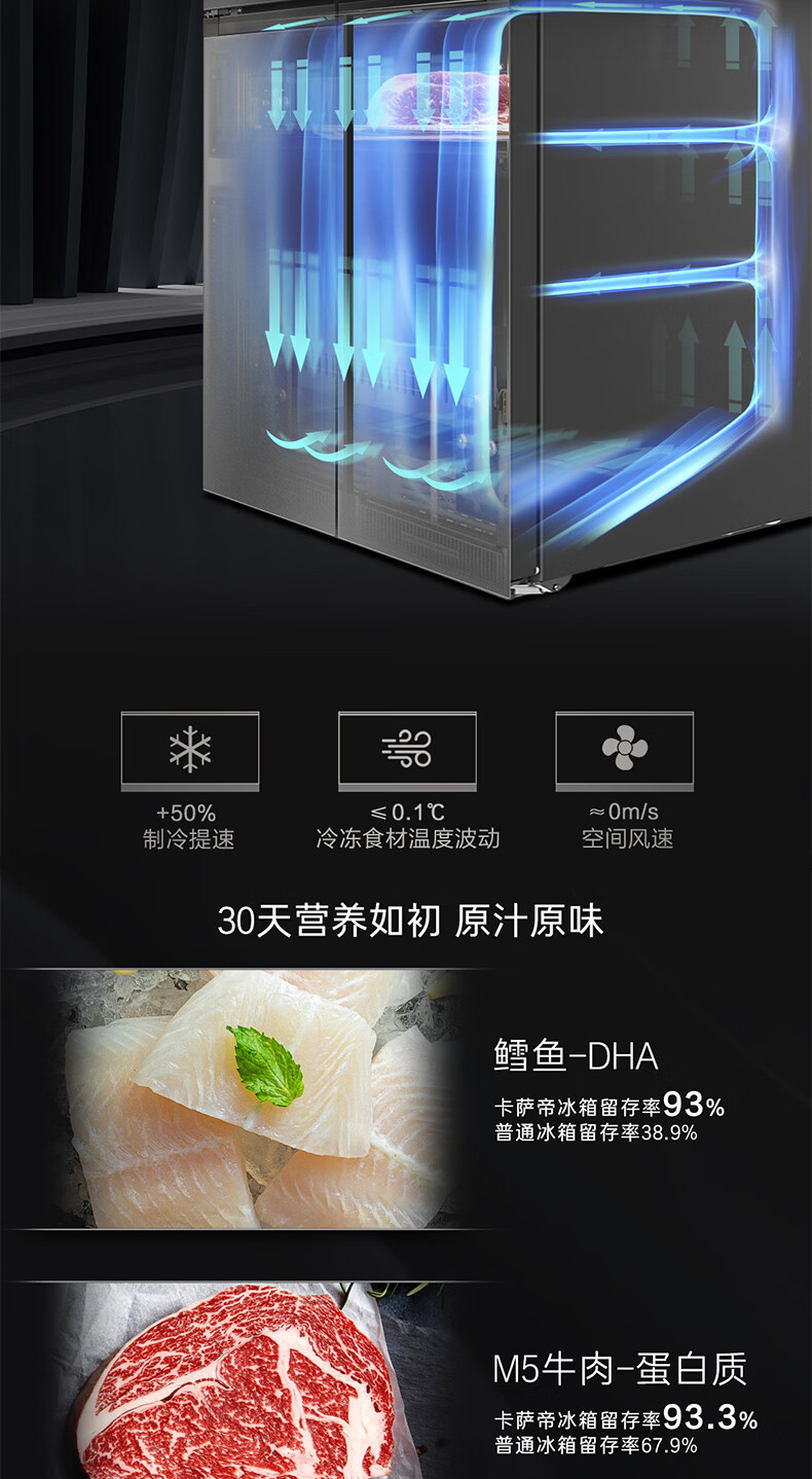 卡萨帝(Casarte)天成系列657升十字门冰箱自动制冰零距离自由嵌入式双系统MSA氮氧保鲜智慧动态除菌 双域变温空间+底置循环风幕保鲜科技657WGCTDAGDXU1