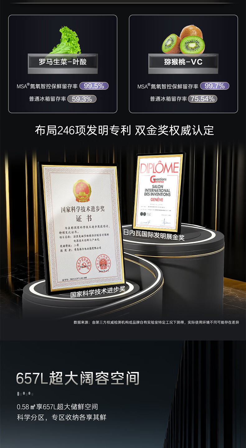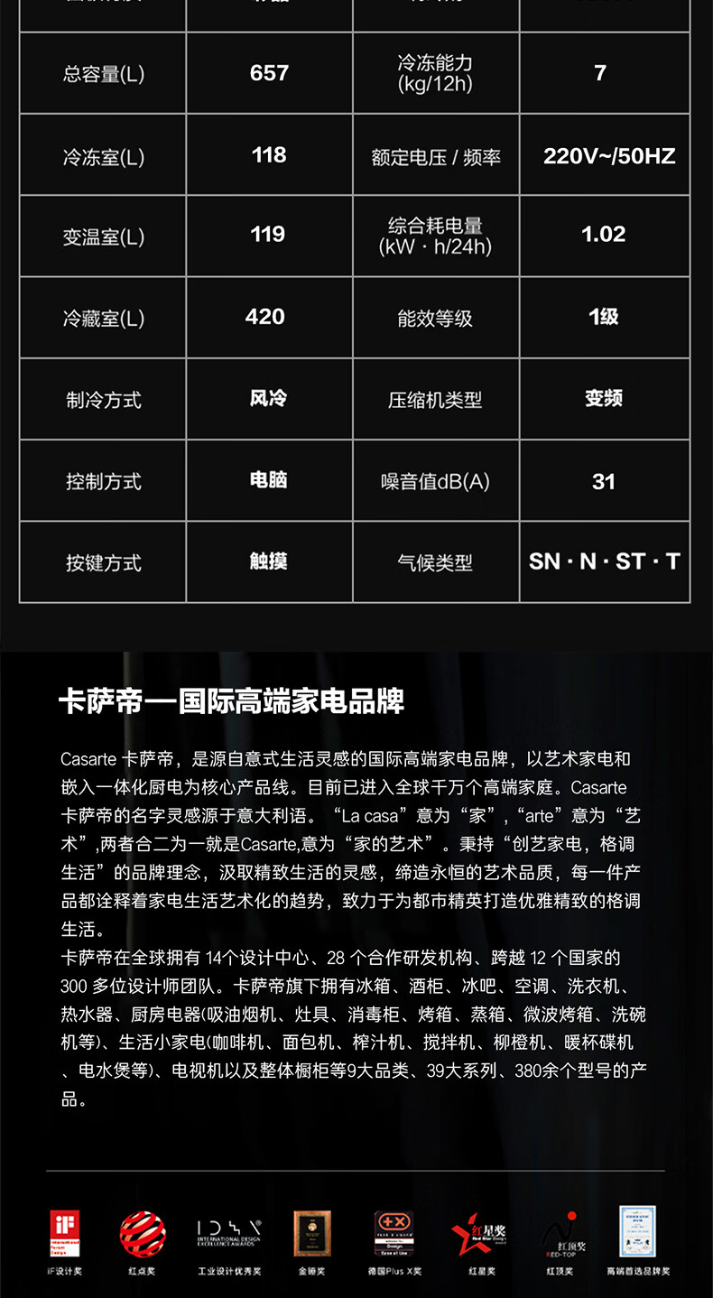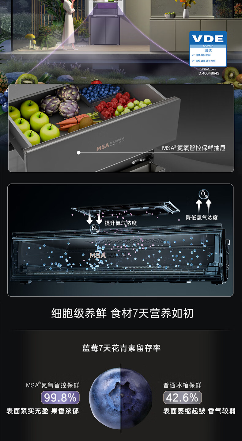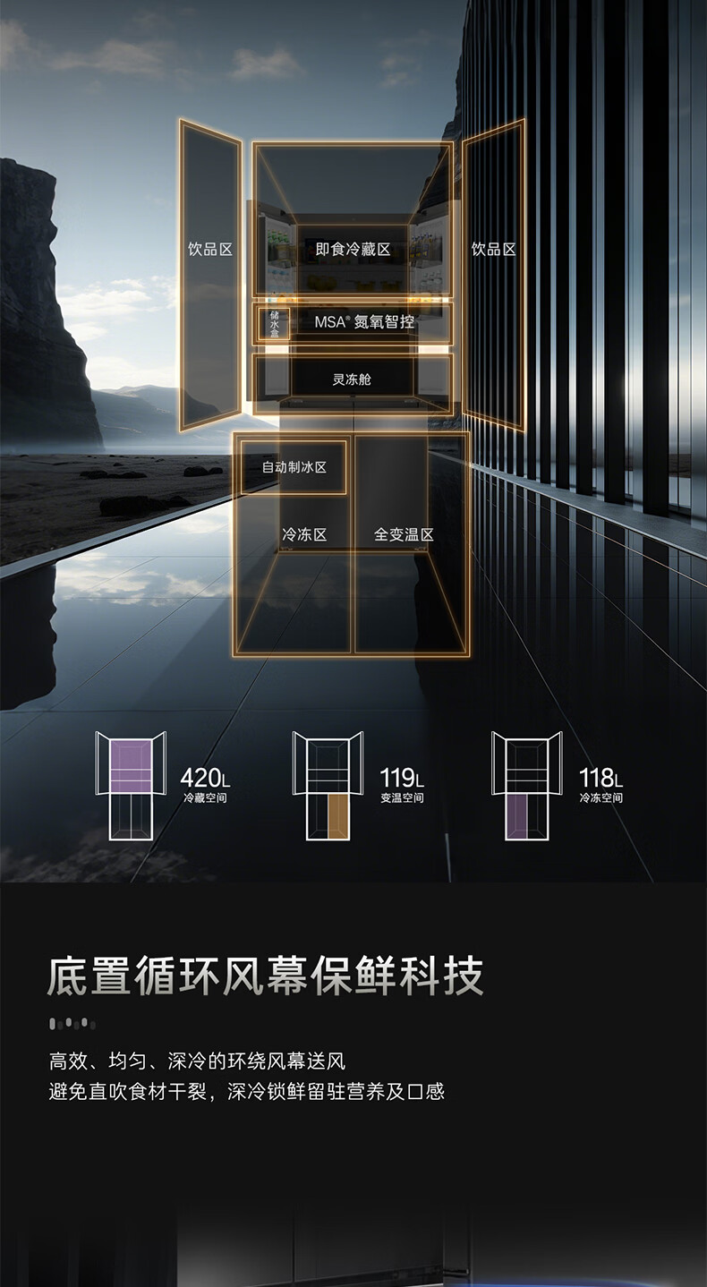 卡萨帝(Casarte)天成系列657升十字门冰箱自动制冰零距离自由嵌入式双系统MSA氮氧保鲜智慧动态除菌 双域变温空间+底置循环风幕保鲜科技657WGCTDAGDXU1