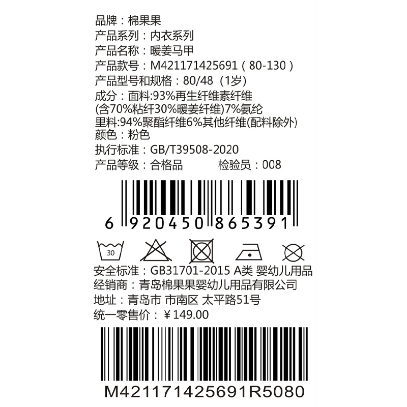 | 衣长 | 31.5 | 34 | 36.5 | 39 | 42 | 45 |