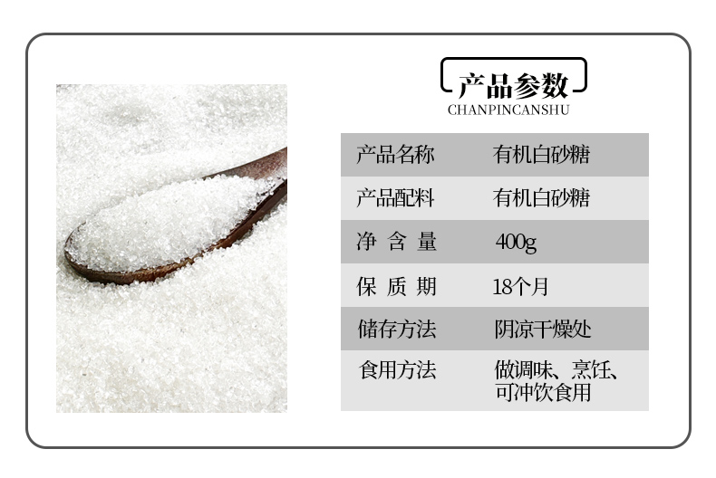 人民食品有机白砂糖400g