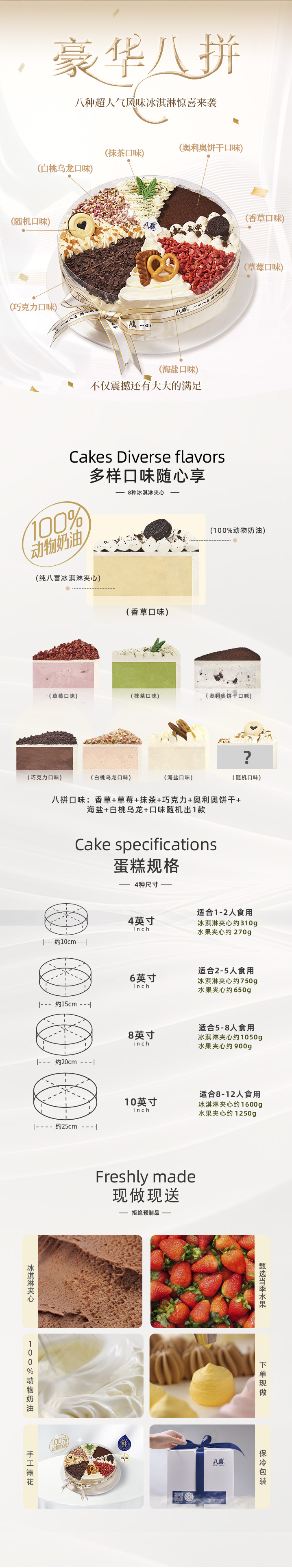 ※【豪华八拼】8英寸招牌-纯冰淇淋生日蛋糕