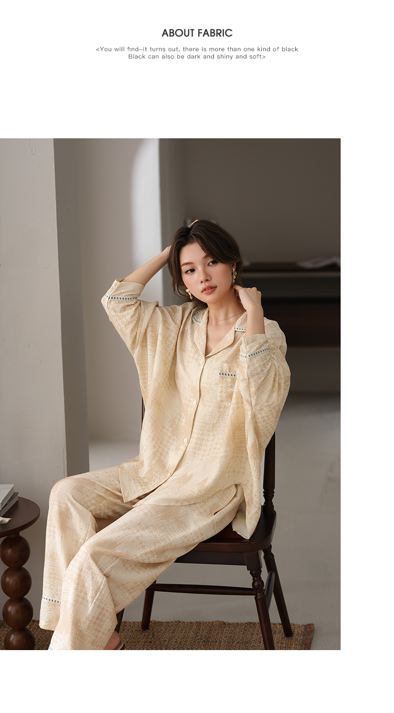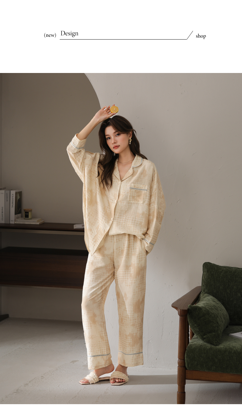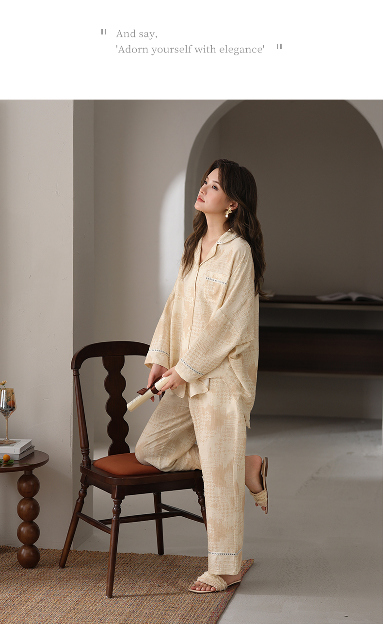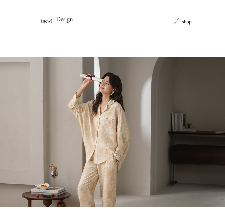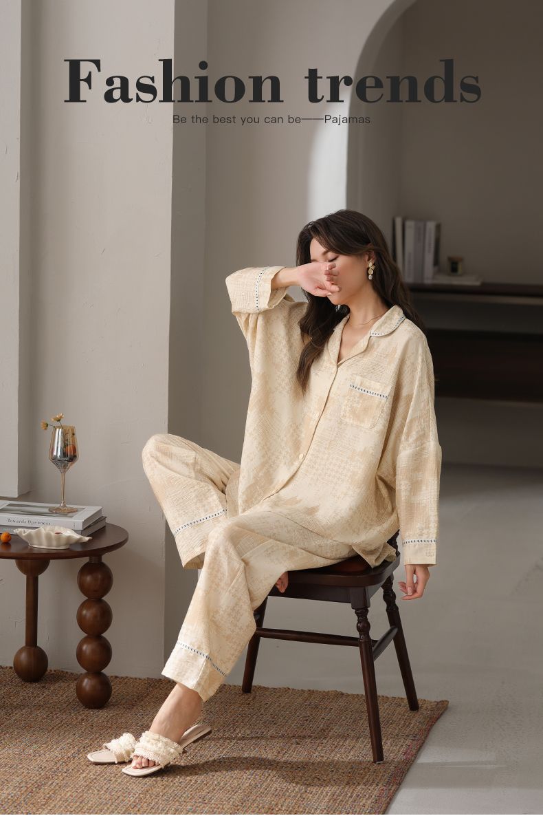 可人儿春秋季带胸垫泡泡绵女士长袖长裤睡衣可外出小众家居服套装
