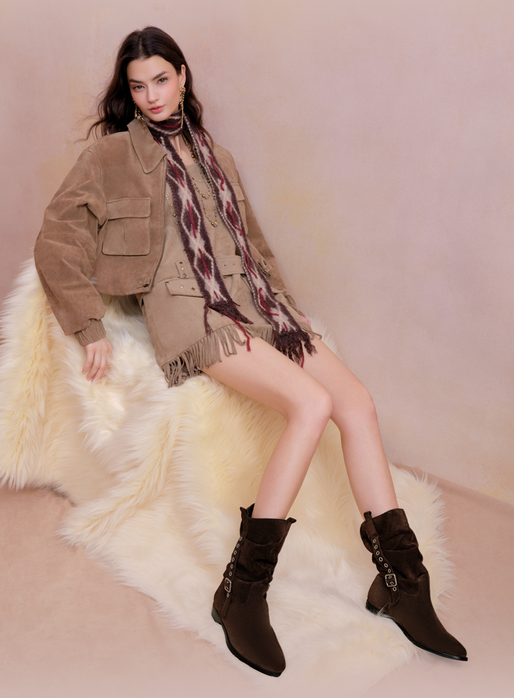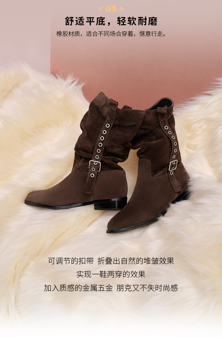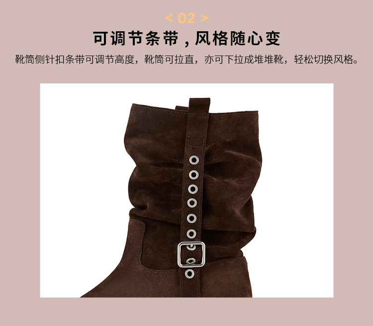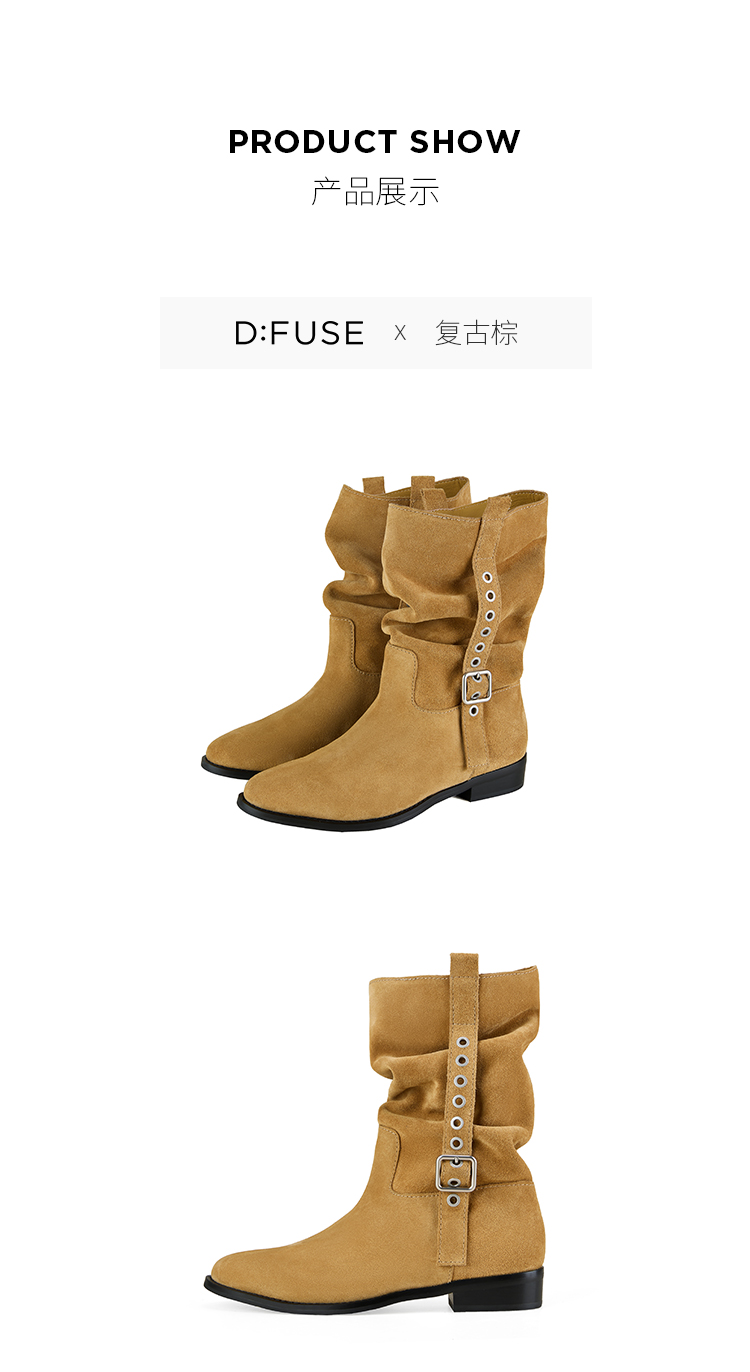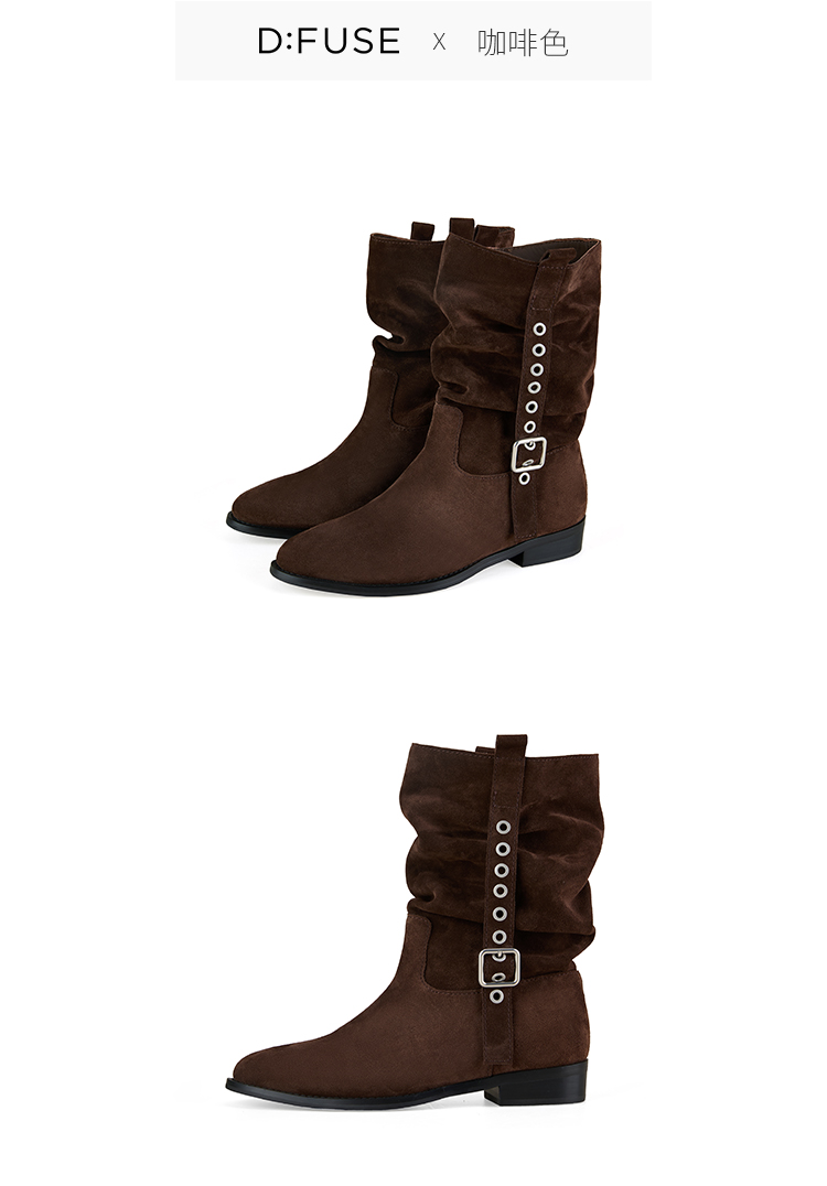 Dfuse迪芙斯2025冬季新款大地色中筒靴奢潮可调节堆堆西部靴女DFD4116040