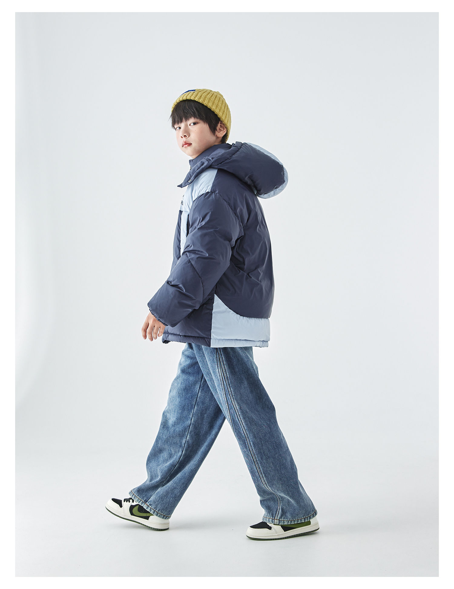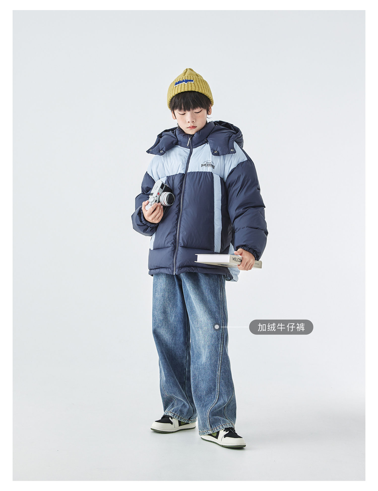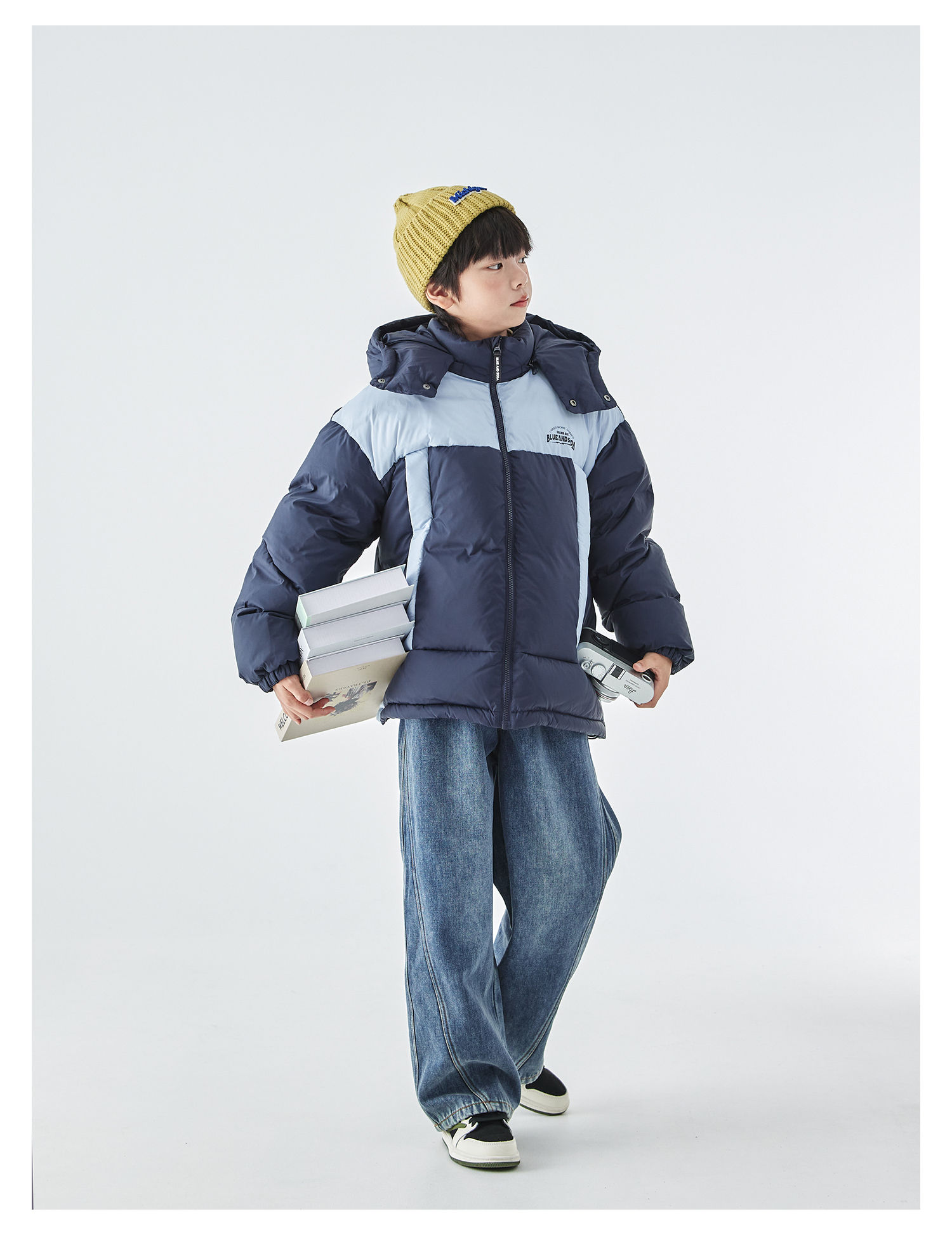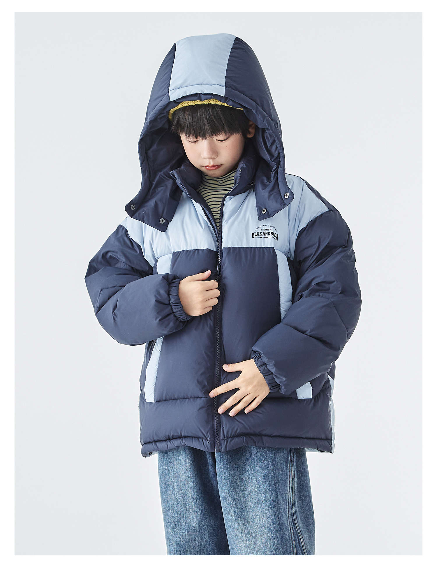 蓝汽水2025年冬季新款亲子中大童中厚拼色羽绒服三防面料蓬松外套