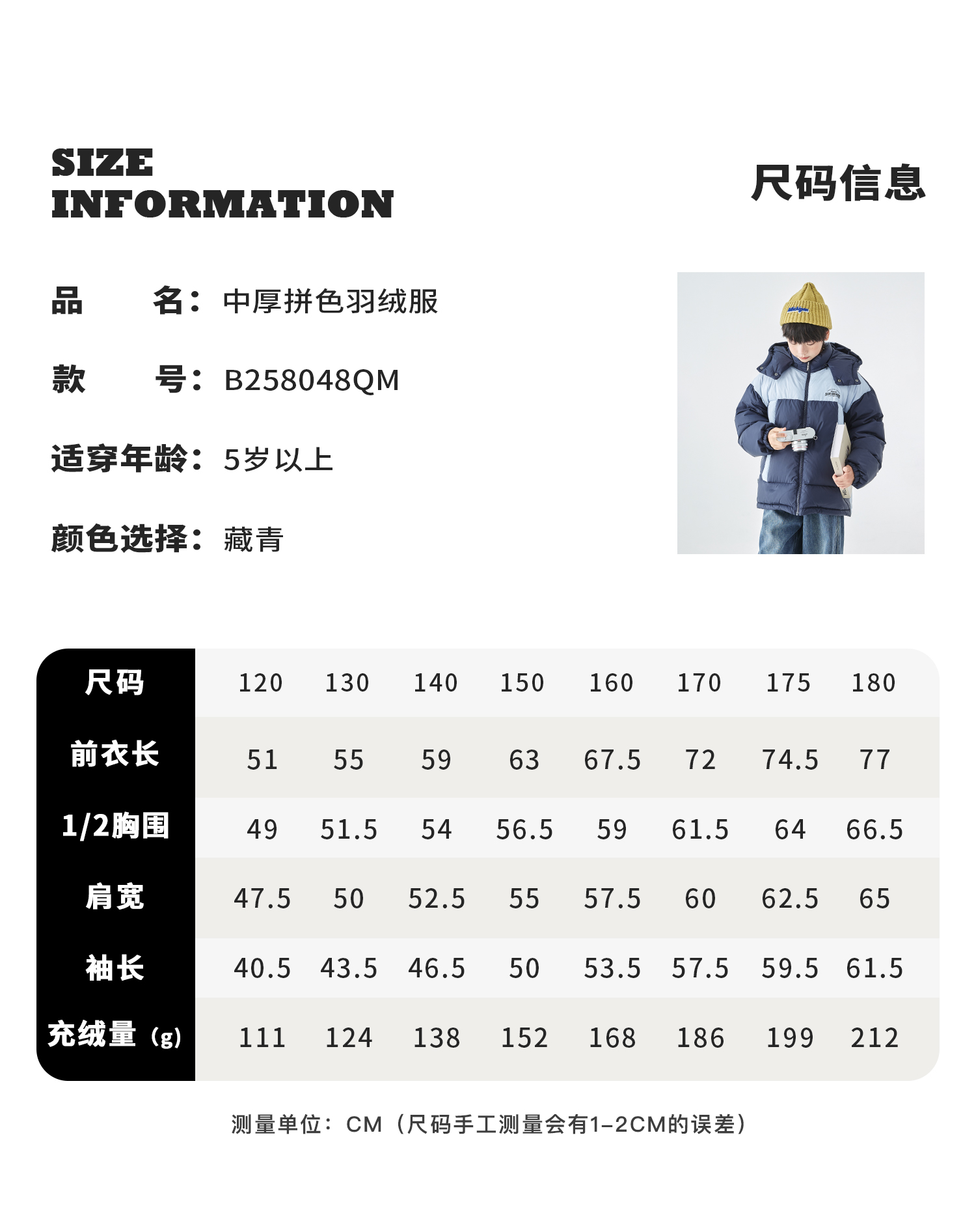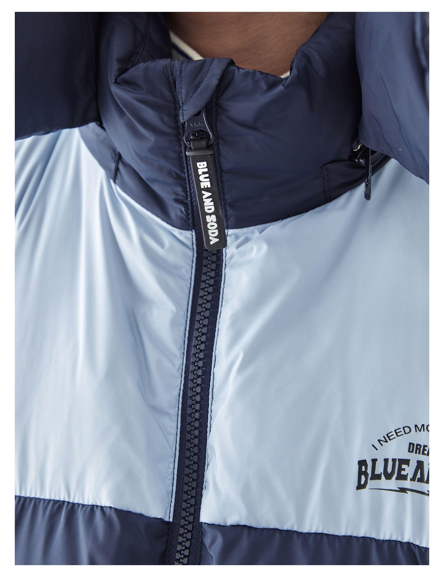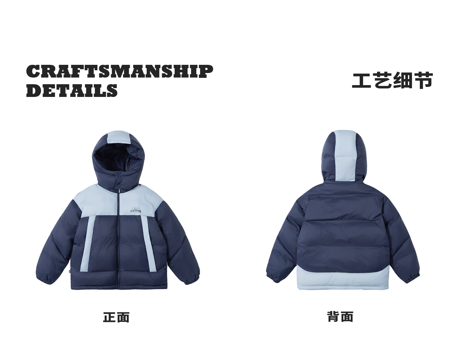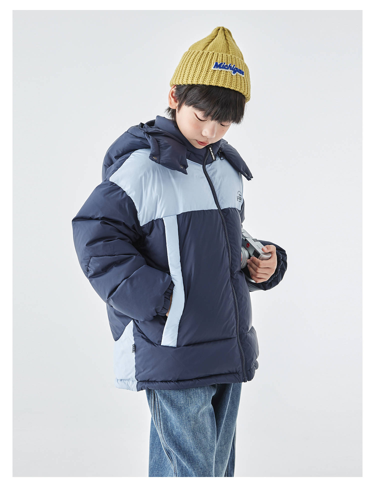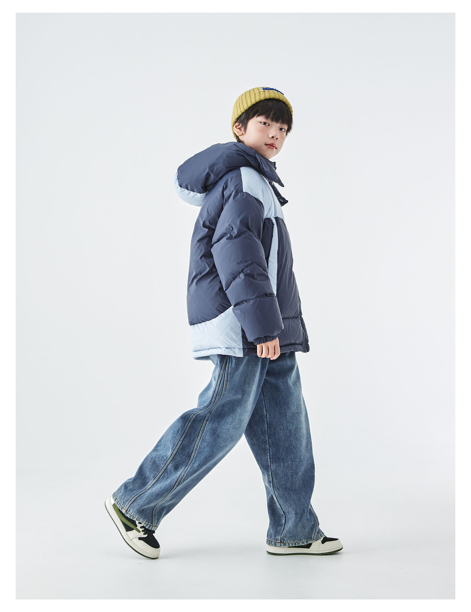 蓝汽水2025年冬季新款亲子中大童中厚拼色羽绒服三防面料蓬松外套