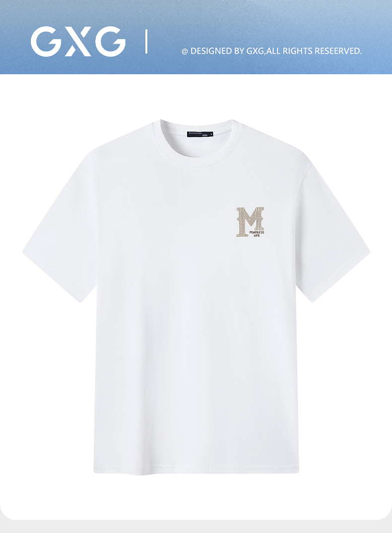 GXG男装【100%棉】26夏季字母刺绣日常通勤时尚休闲男式短袖T恤K&C