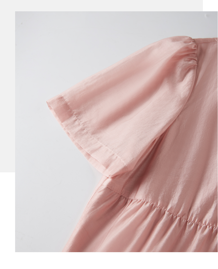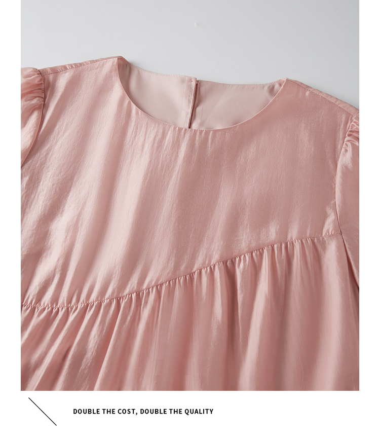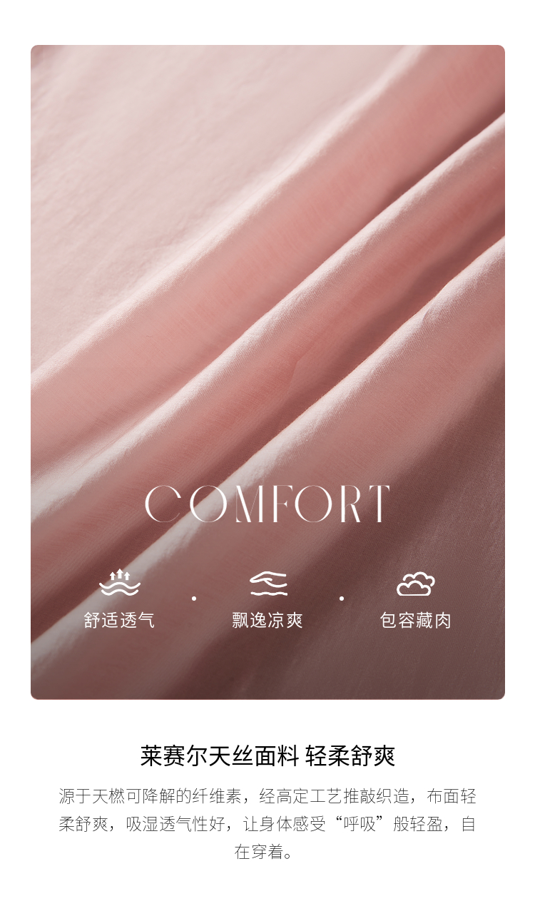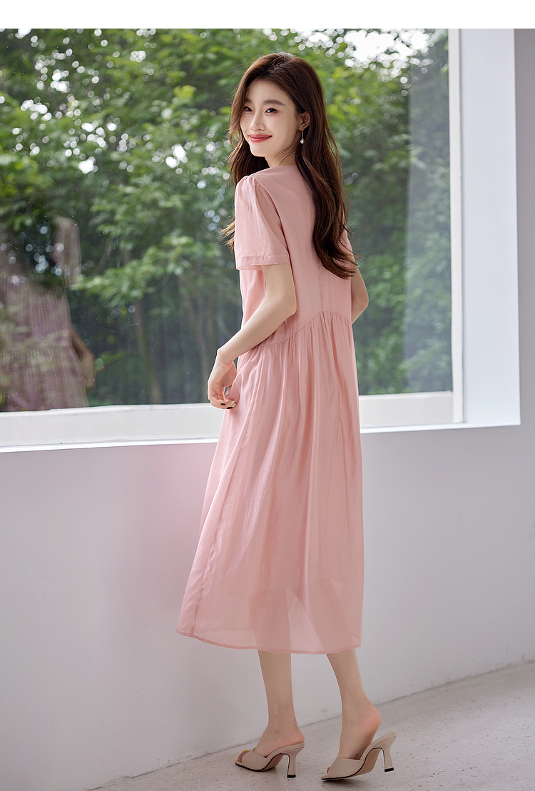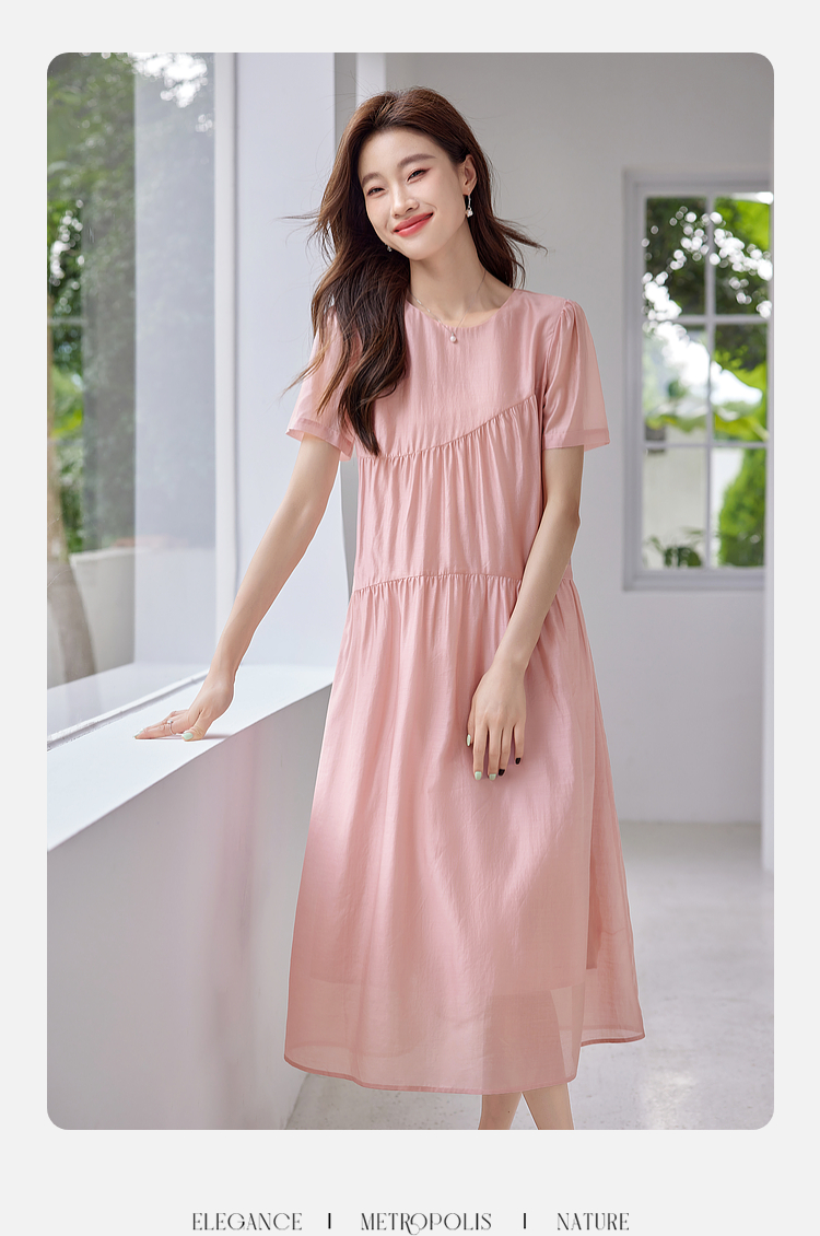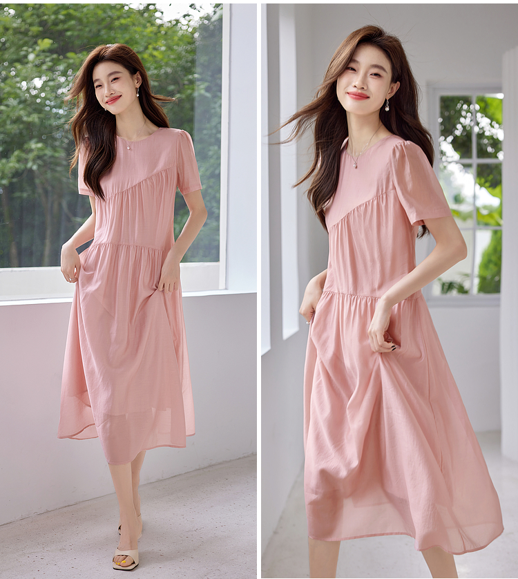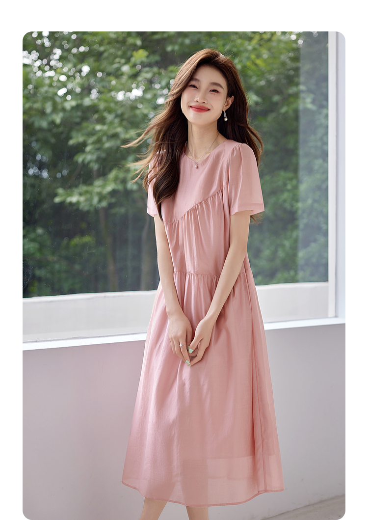 【五折购】熙世界薄荷曼波粉色天丝连衣裙宽松遮肉圆领初恋裙子2025夏新款