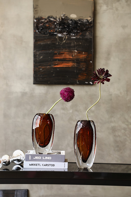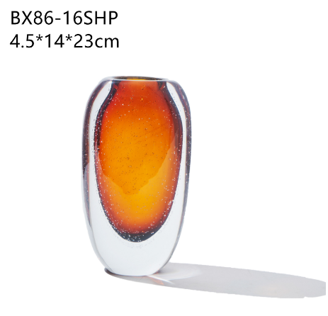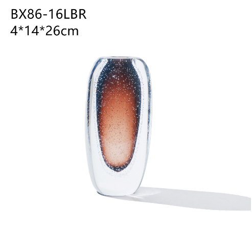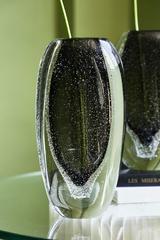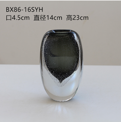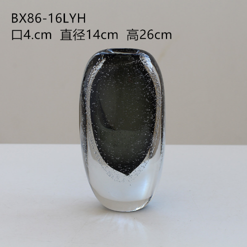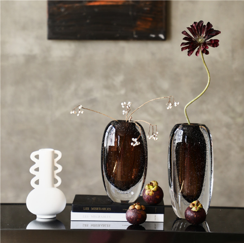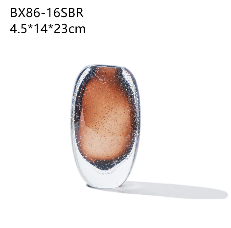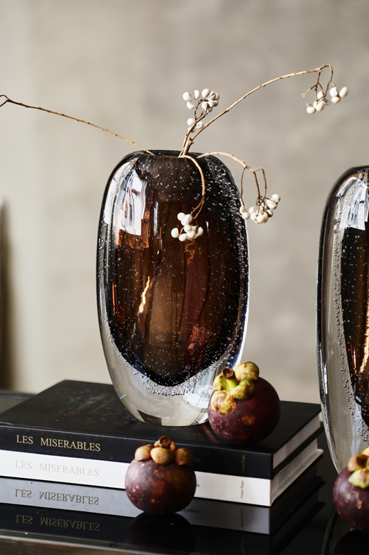 现代简约气泡厚底琉璃扁口花瓶干花居家客厅样板间轻奢台面摆装饰