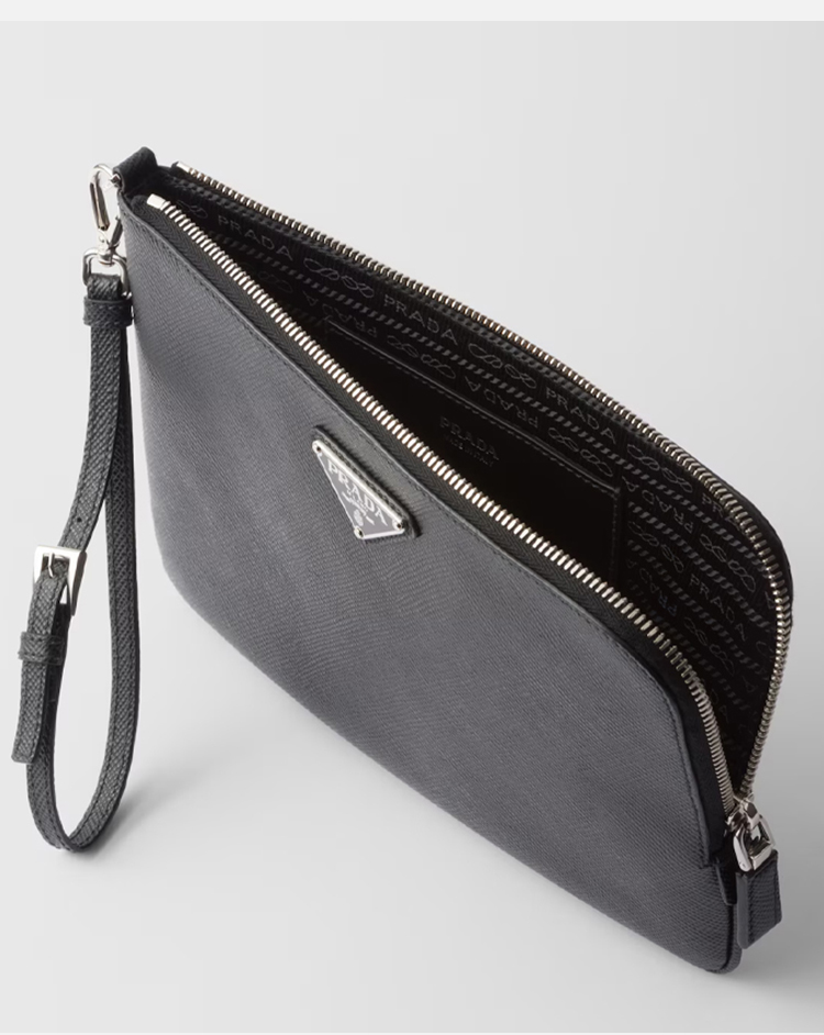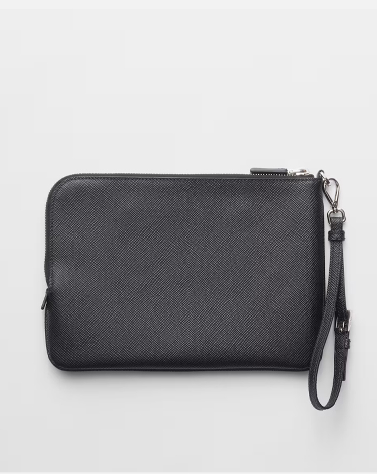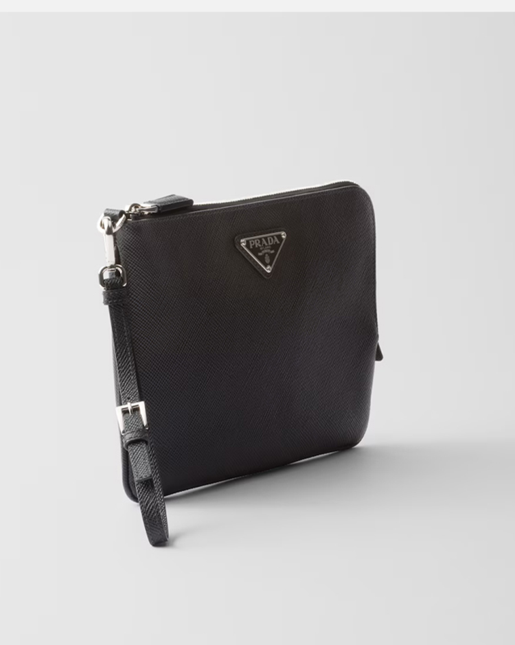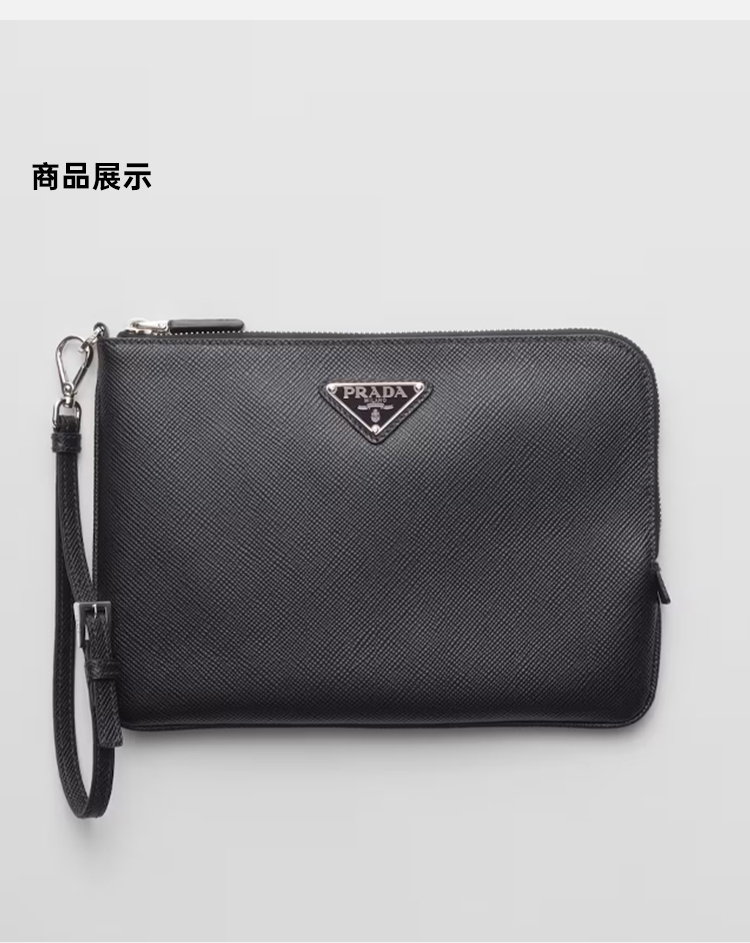 PRADA 普拉达 男士珐琅三角形金属徽标小号Saffiano皮革包 黑色 2NH024 2FAD F0002