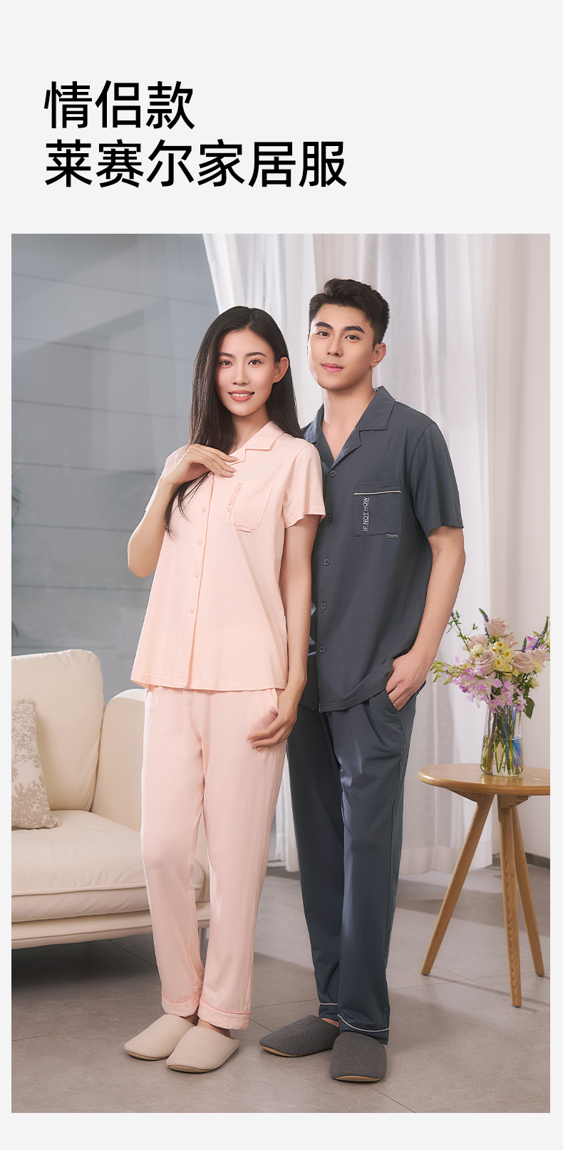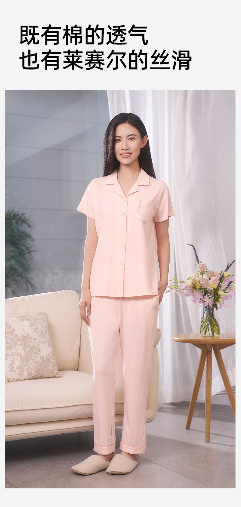 【商场同款】熳洁儿 莱赛尔家居服短袖开衫时尚简约25203216