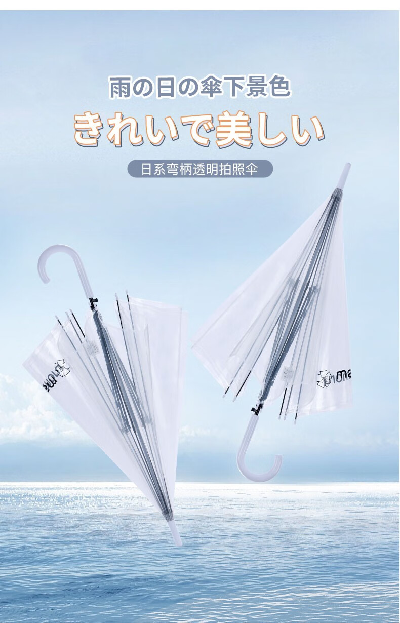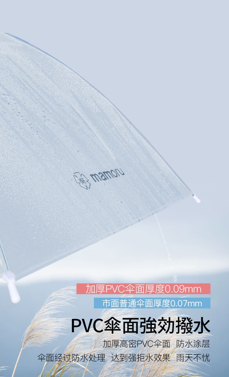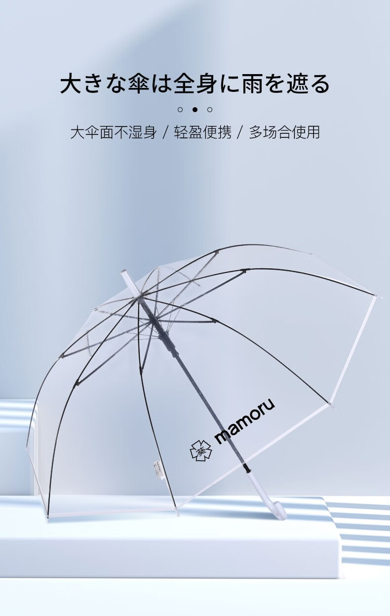 【分仓直发包邮】Mamoru弯把手(长柄)透明雨伞