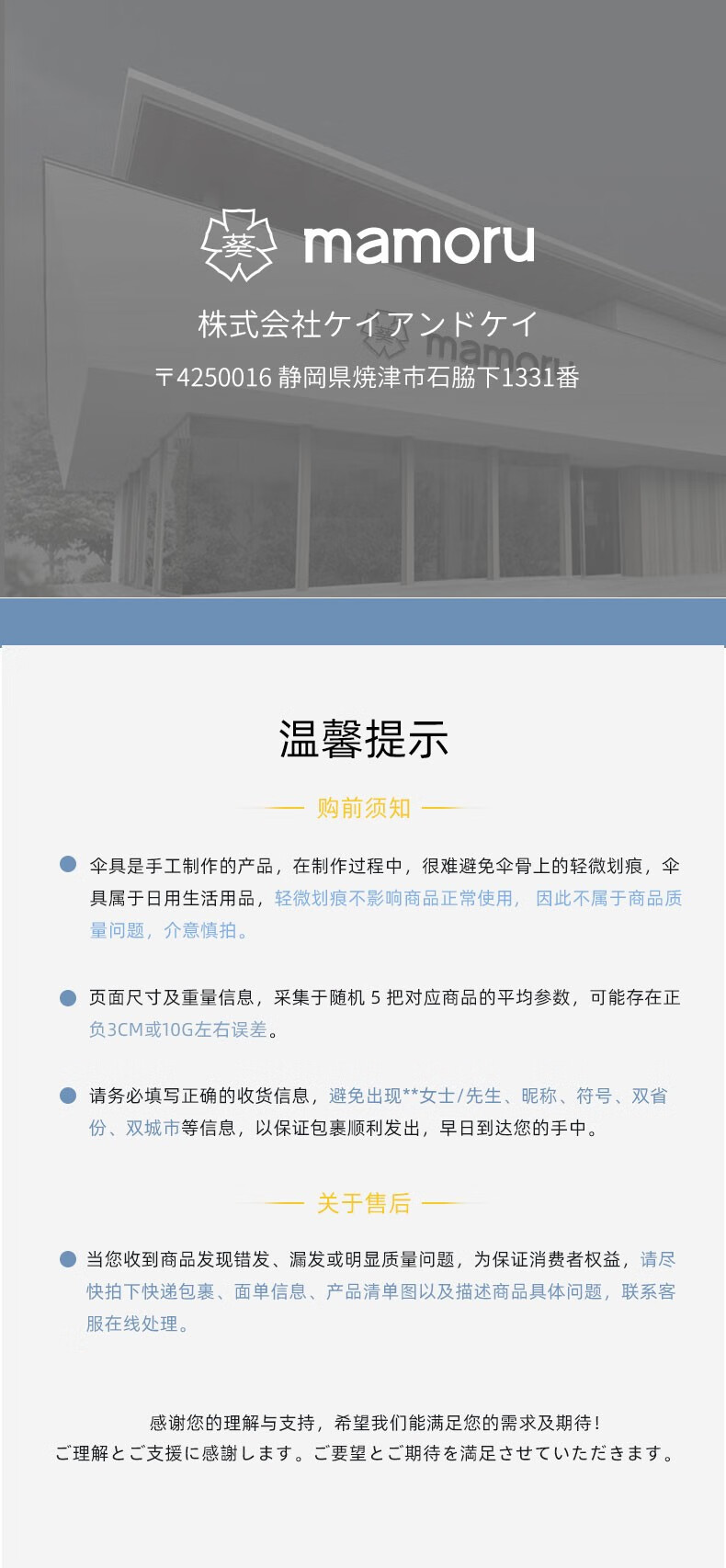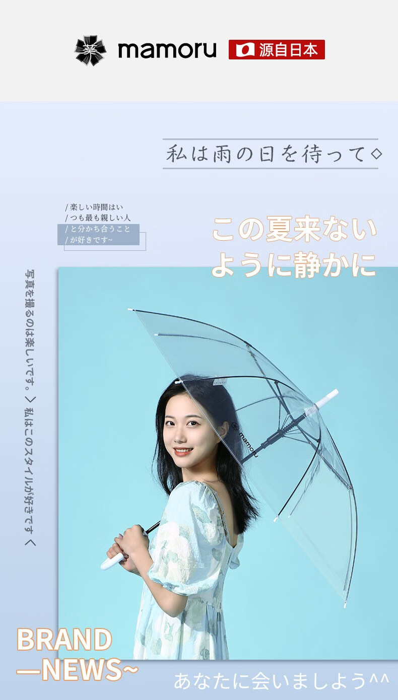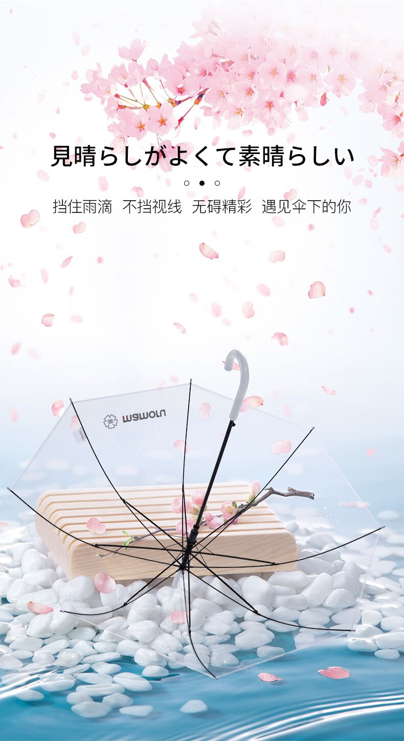 【分仓直发包邮】Mamoru弯把手(长柄)透明雨伞