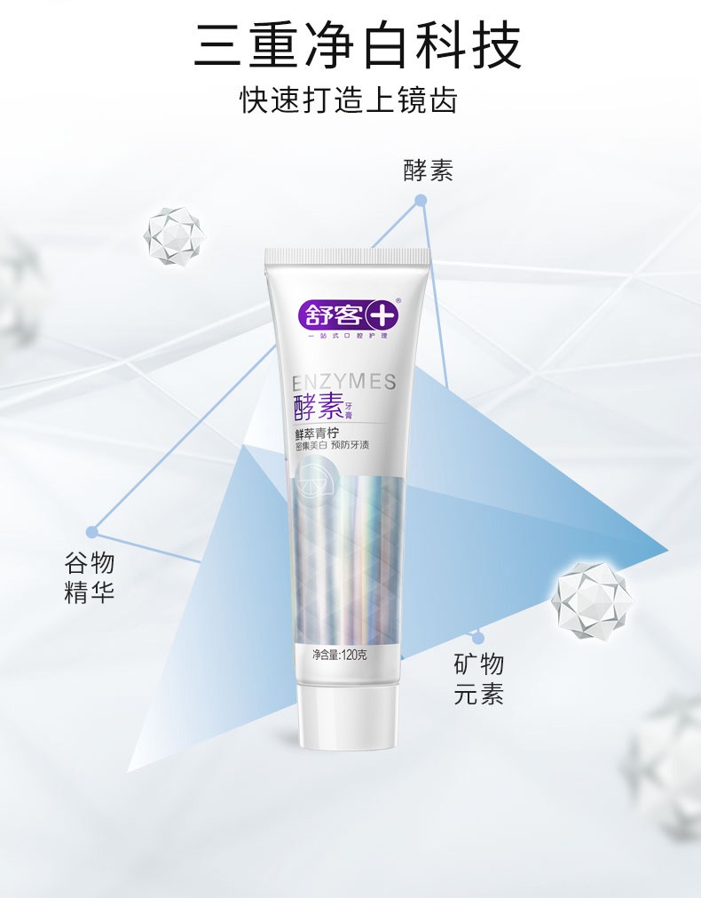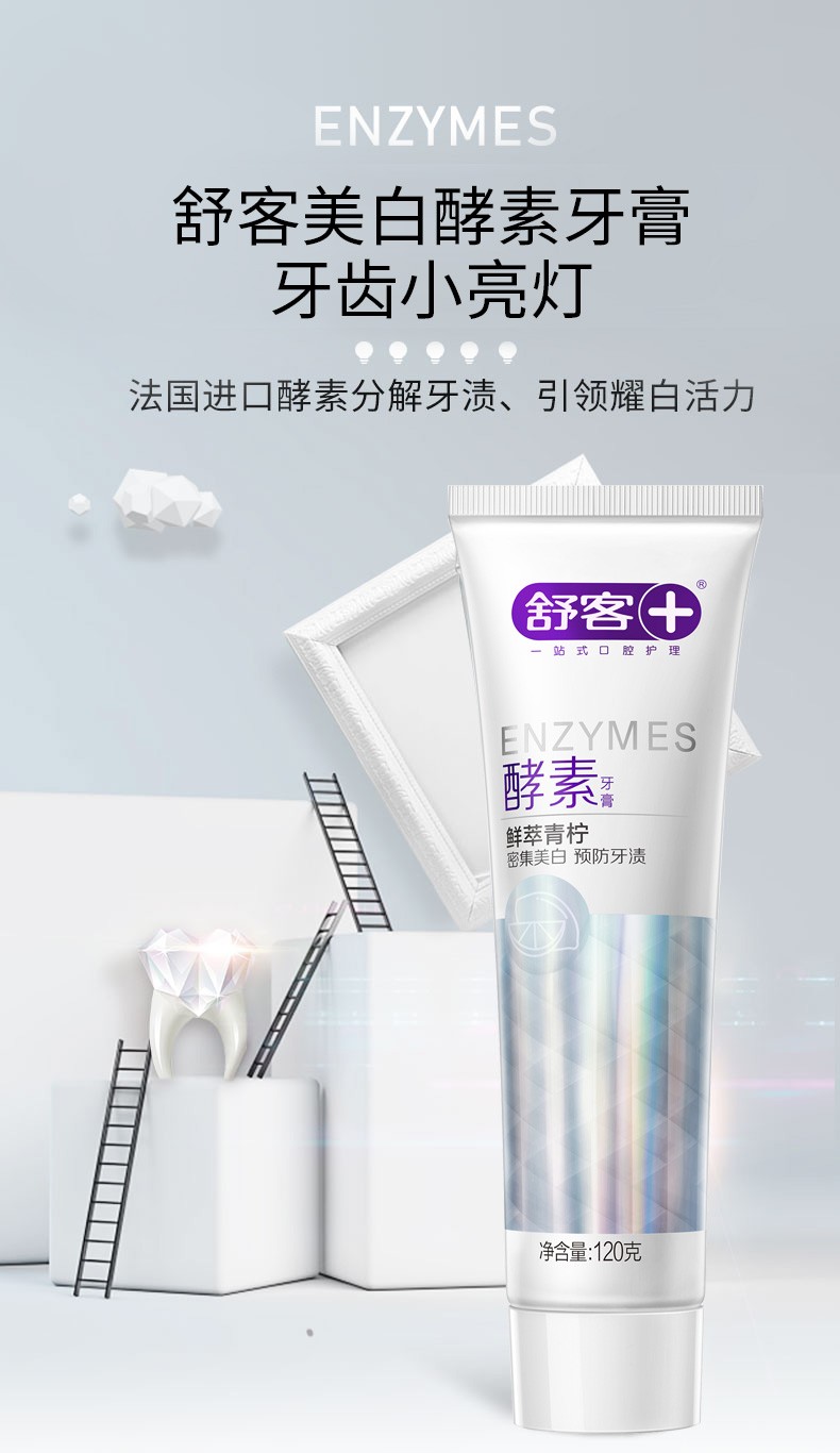 舒客美白酵素牙膏120g 去黄牙垢 去牙渍 口气清新