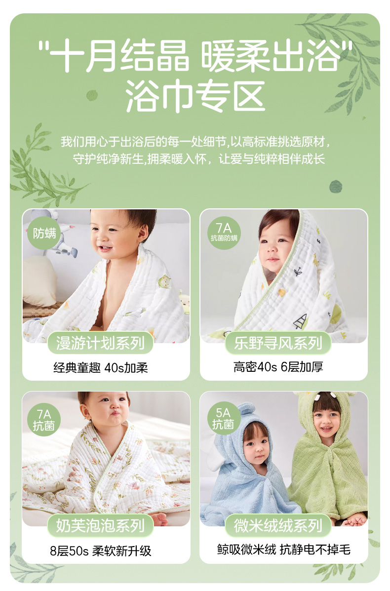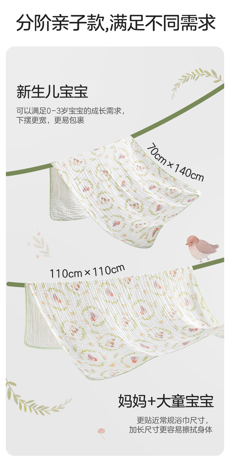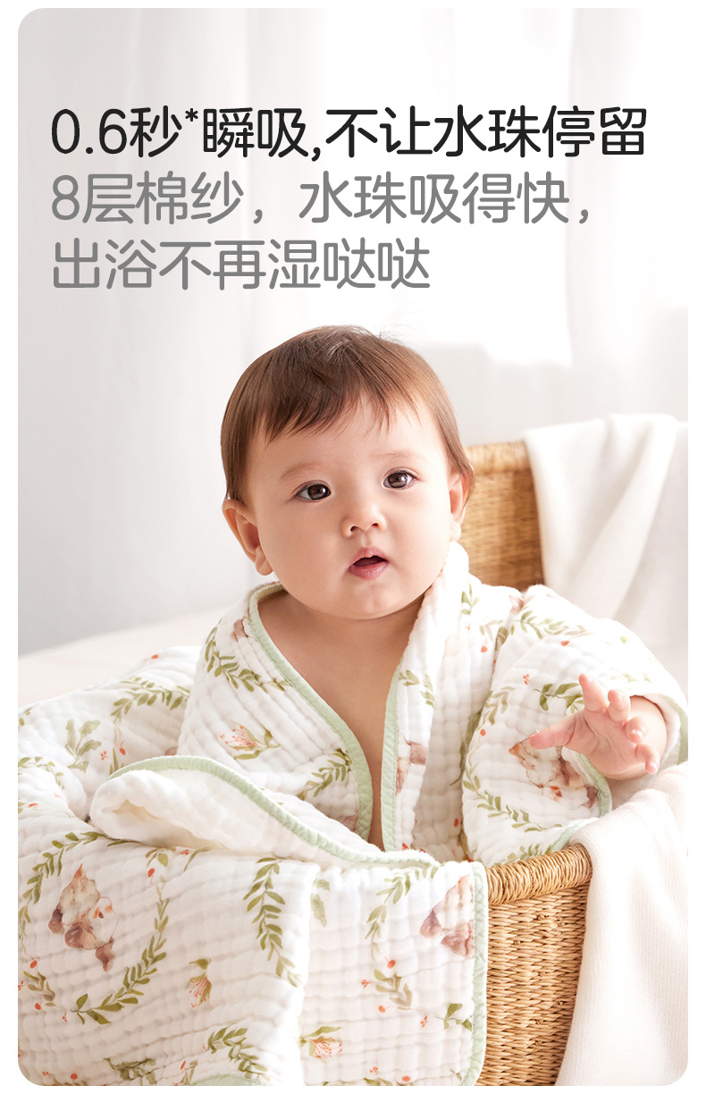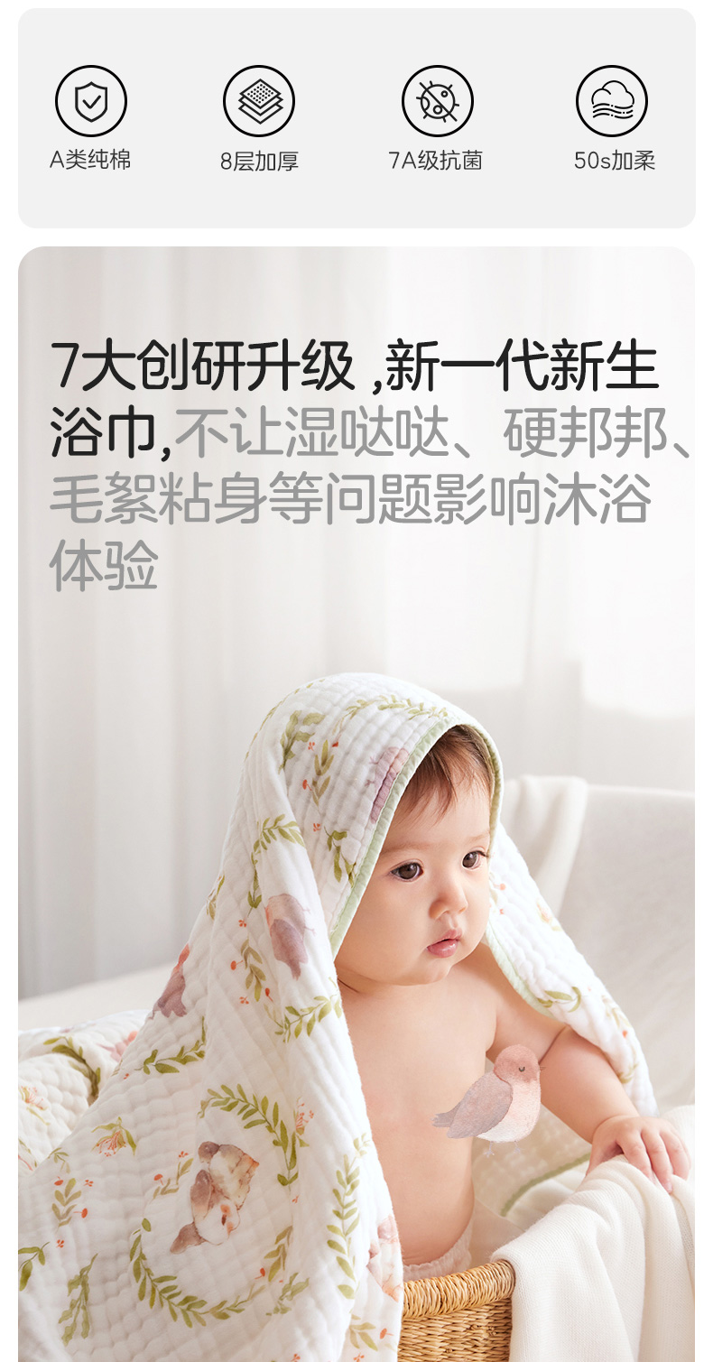【任选两件,买一送一】婴儿浴巾新生超软全棉小奶芙纱布8层A类宝宝儿童洗澡专用