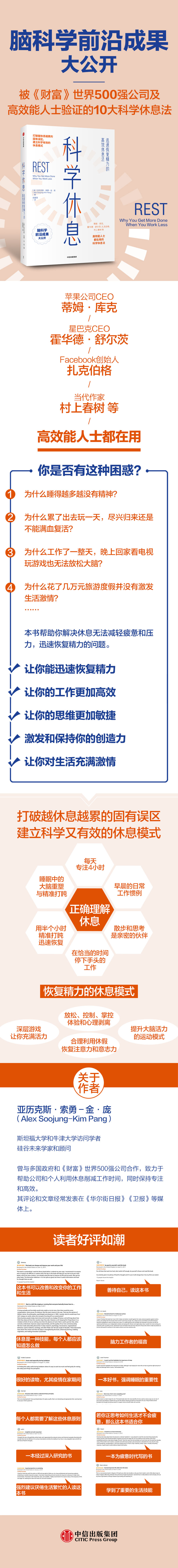 《科学休息》为我们提供了高效休息的路线图,遵循书中的原则和方法,你会发现,你也能和成功人士一样富有成效地工作和生活。