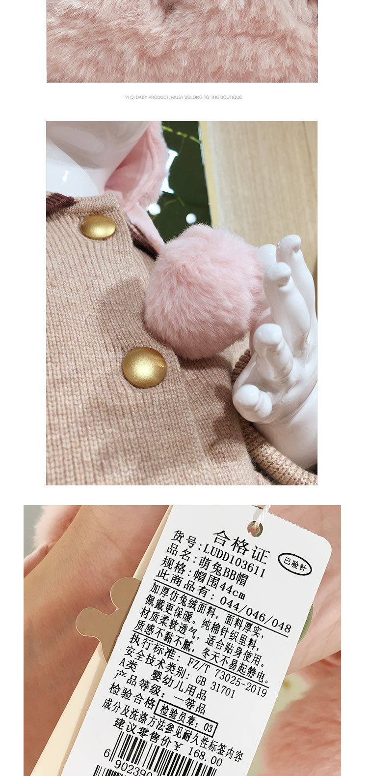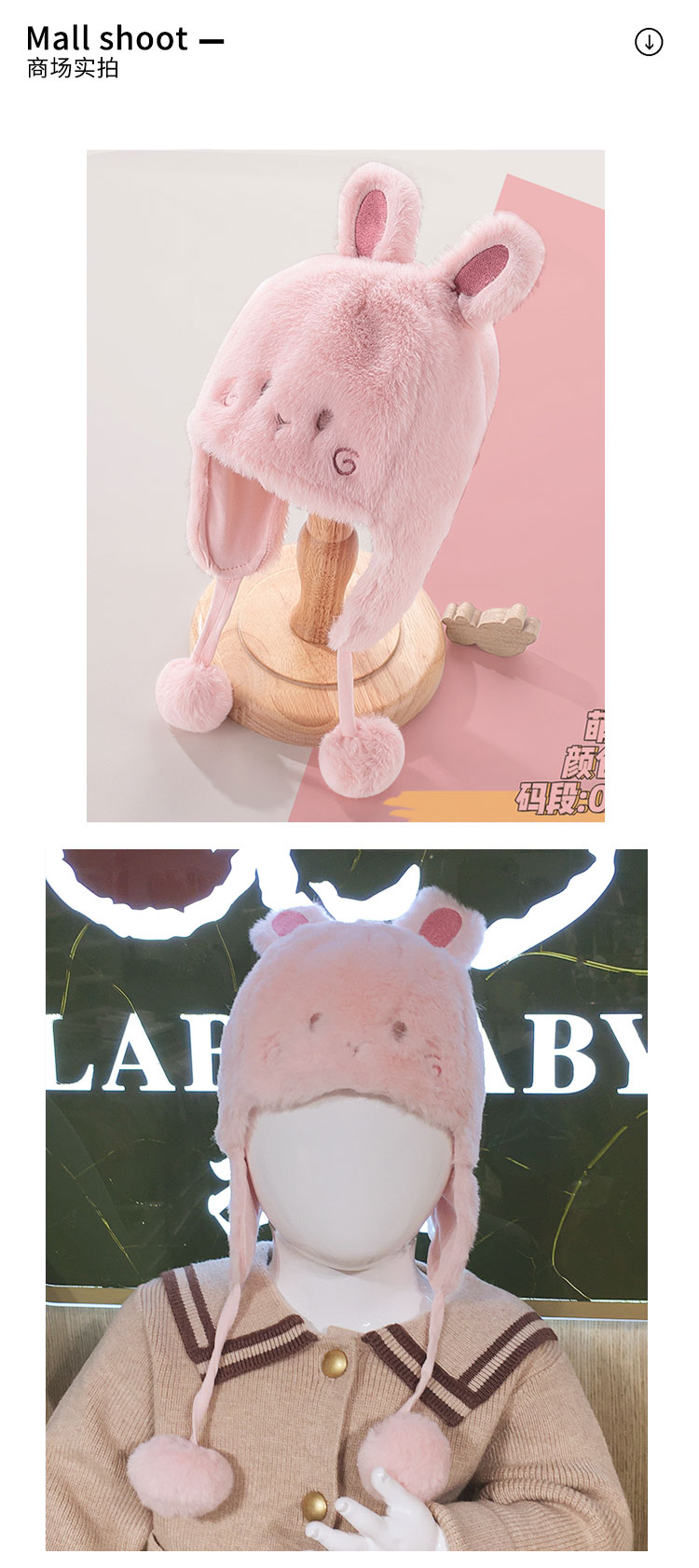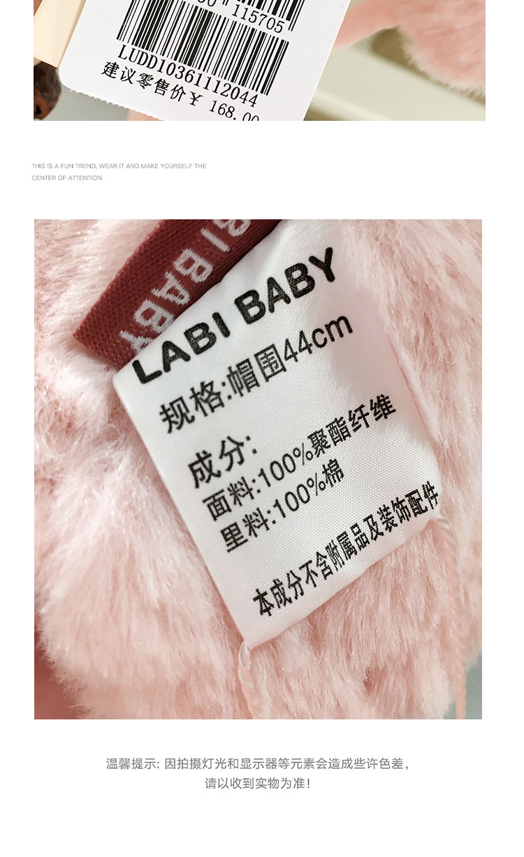 拉比-配饰类(冬)E1萌兔BB帽玫瑰红