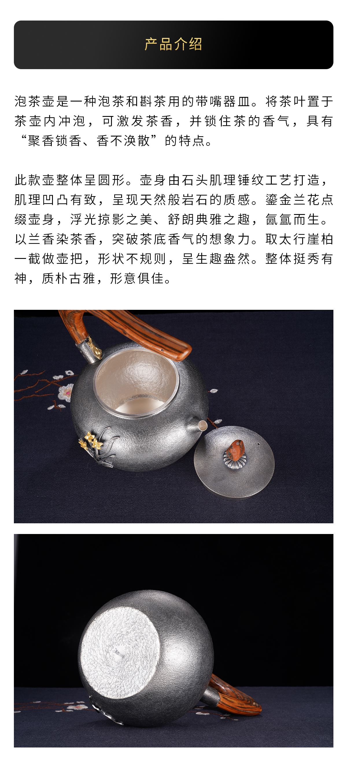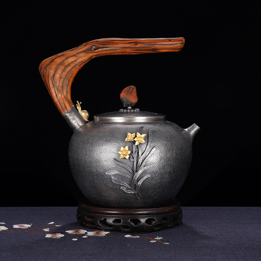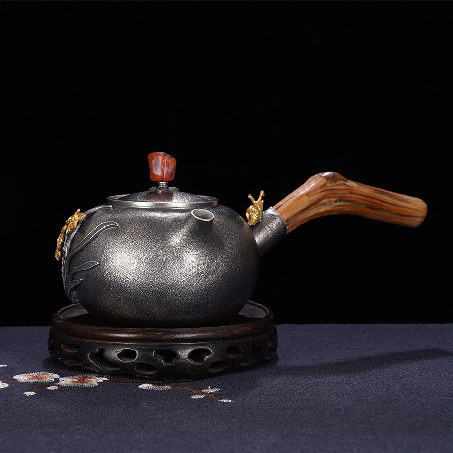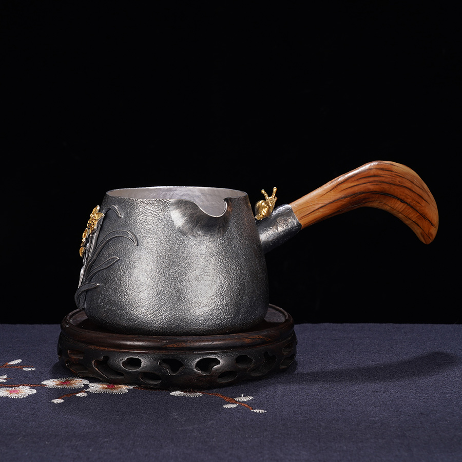 子佩集S999银+崖柏【浮光兰影】提梁壶小茶壶公道杯摆件套装【TG007】【TG008】【TG009】2403