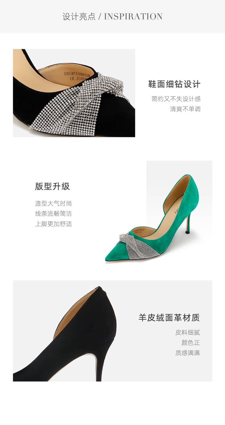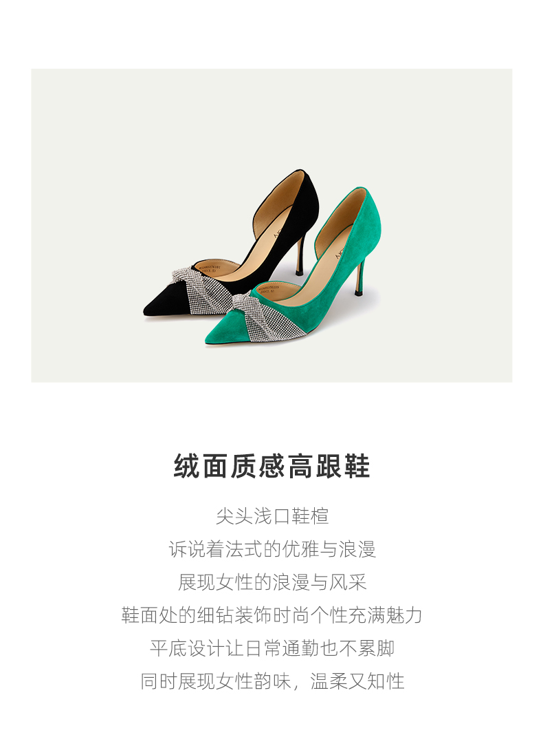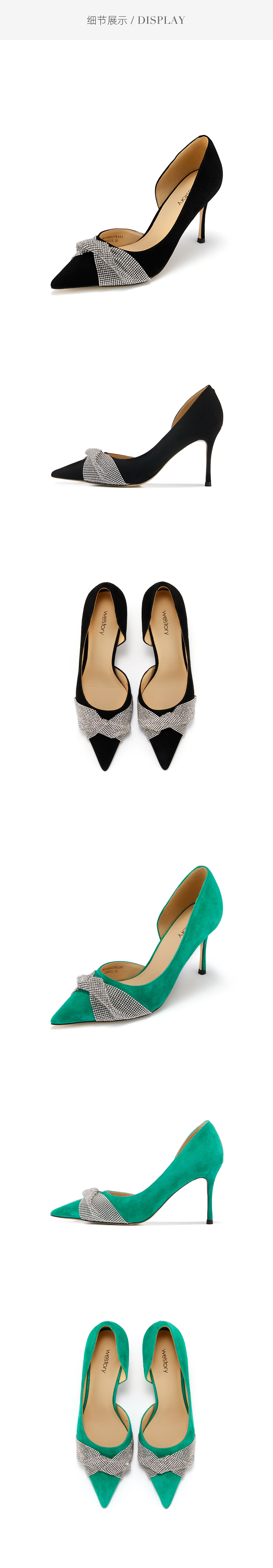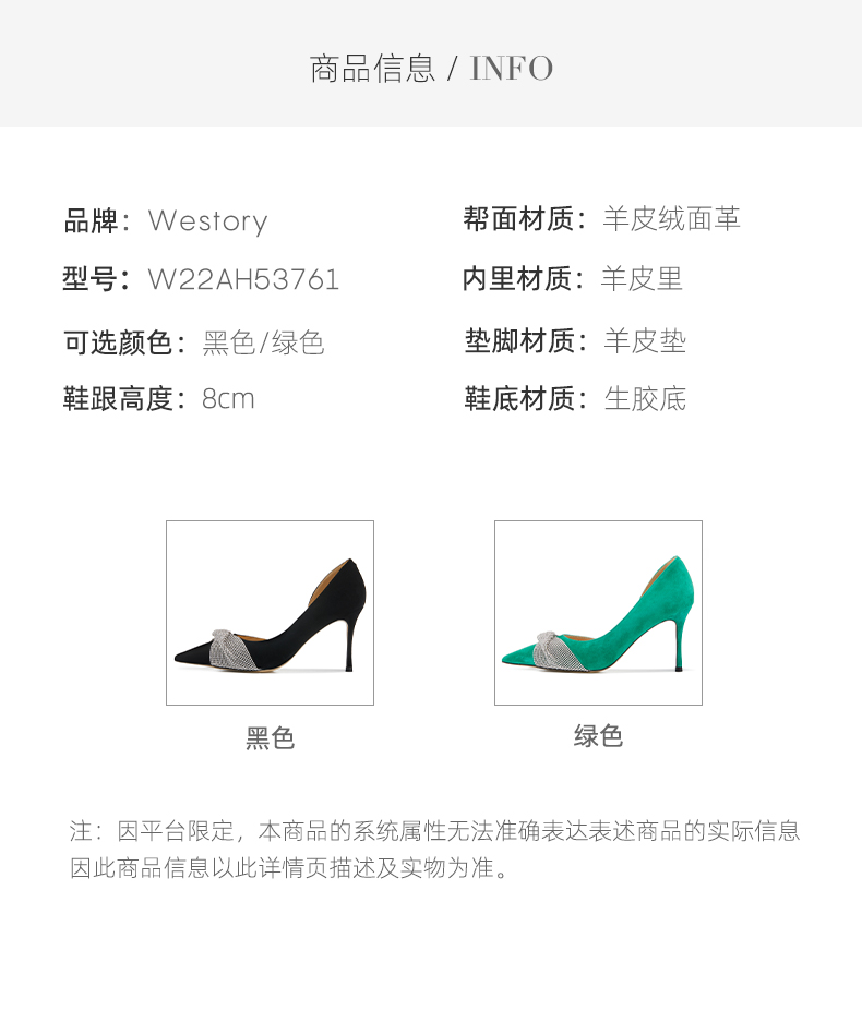 westory新款仙女风高跟鞋蝴蝶结亮钻细跟尖头浅口女单鞋时尚宴会W22AH53761