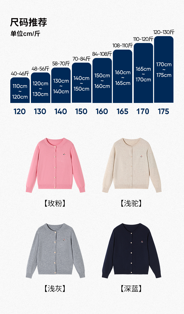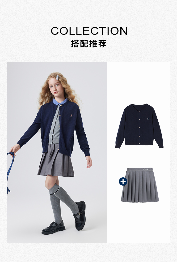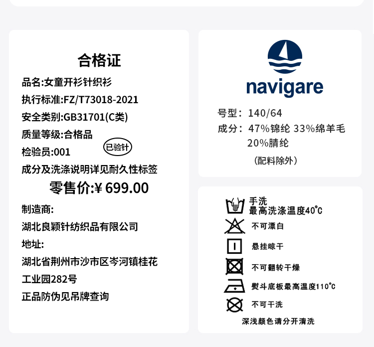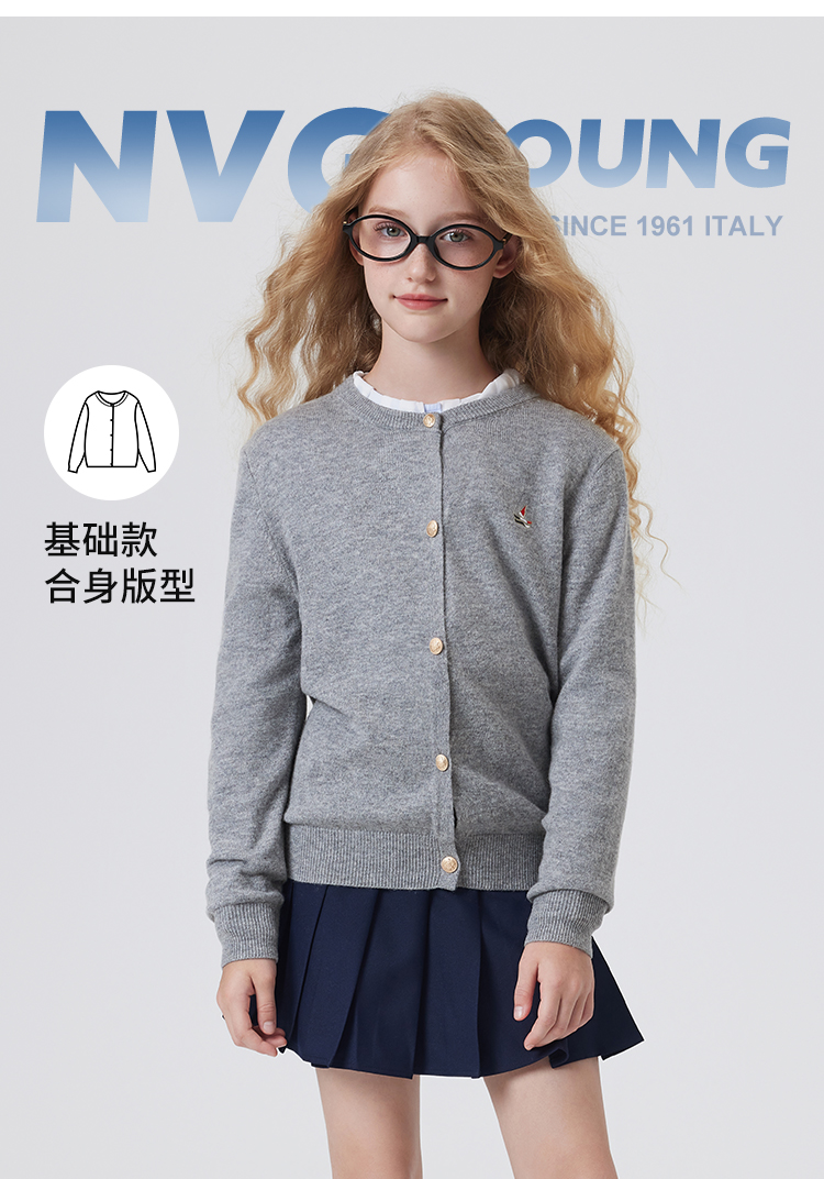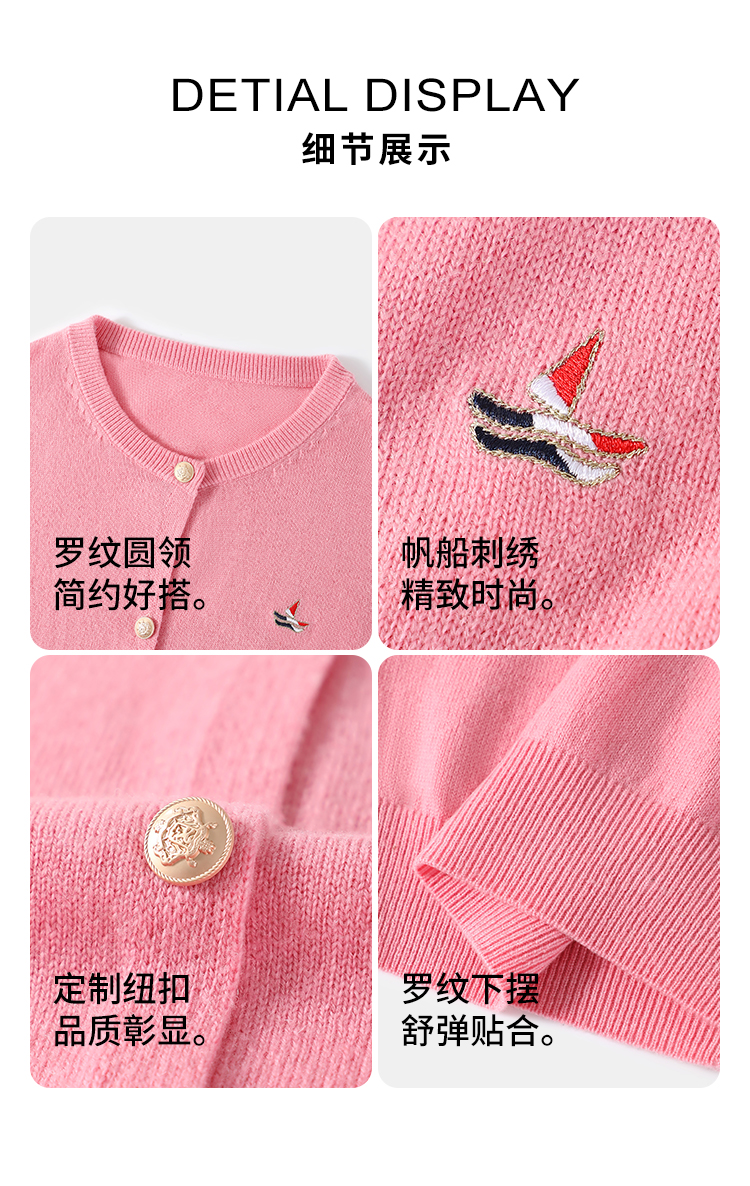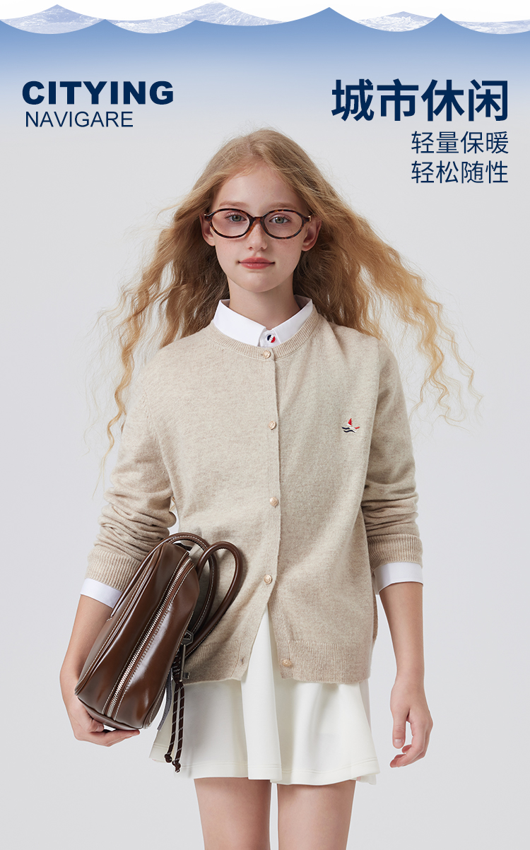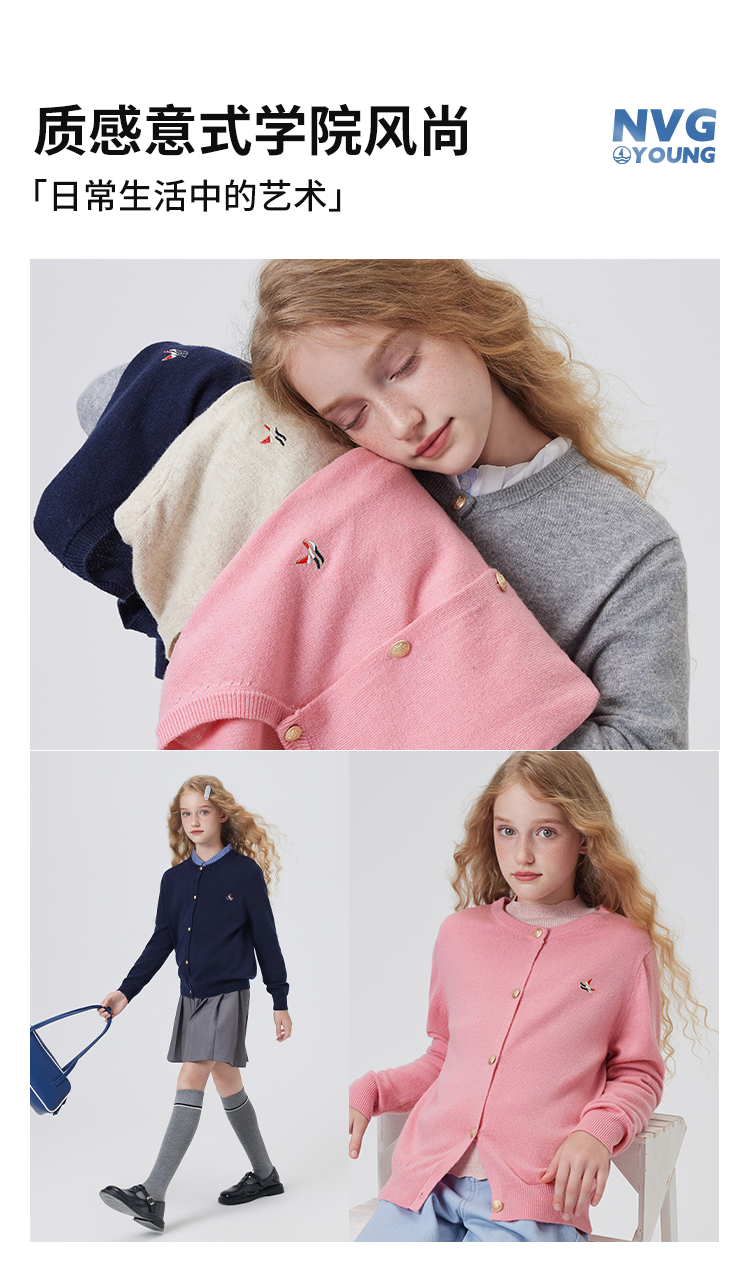 【纳维凯尔】【含绵羊毛】【120-165】Navigare意大利小帆船女童春秋针织开衫