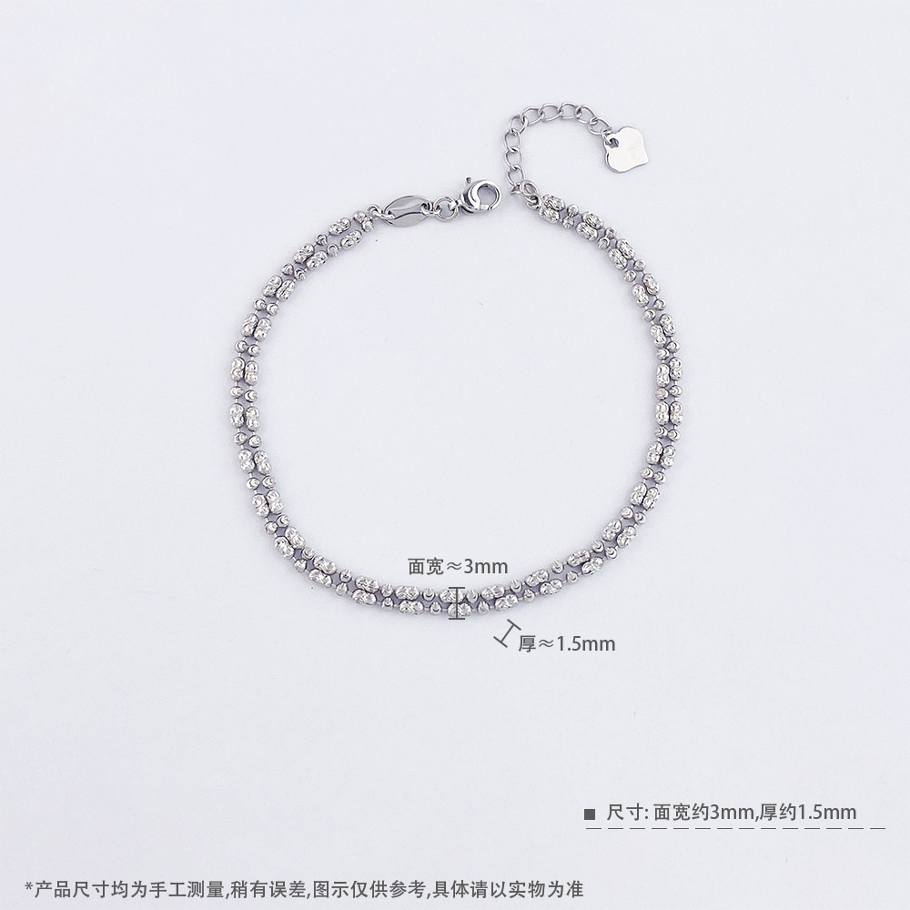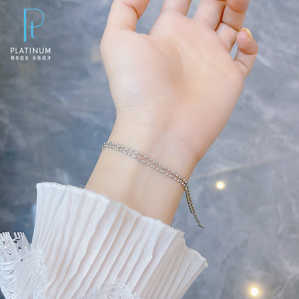 【限时8.8折】【线上铂金馆】PT950 【国际铂金协会】铂金实心调节双排钻石链手链(BSL00272)(预售4-7天发货,一经下单不支持退款)