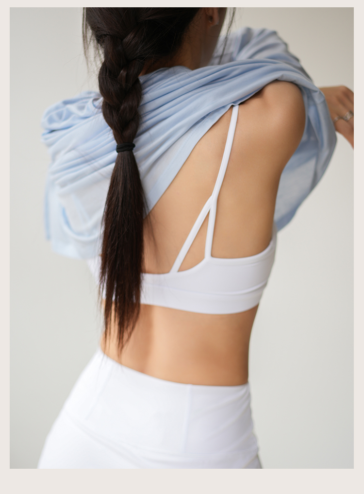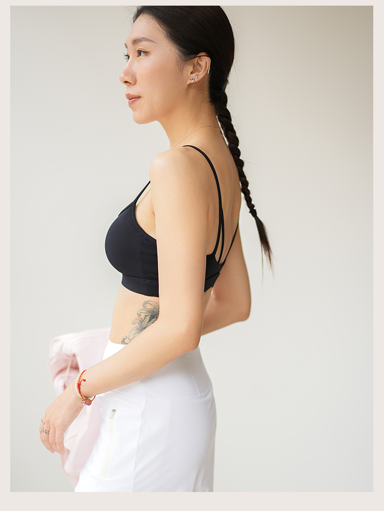 L RECNAVA 猫耳朵细肩带带胸垫运动胸衣 U型领 胸垫可拆卸 裸感内搭小背心