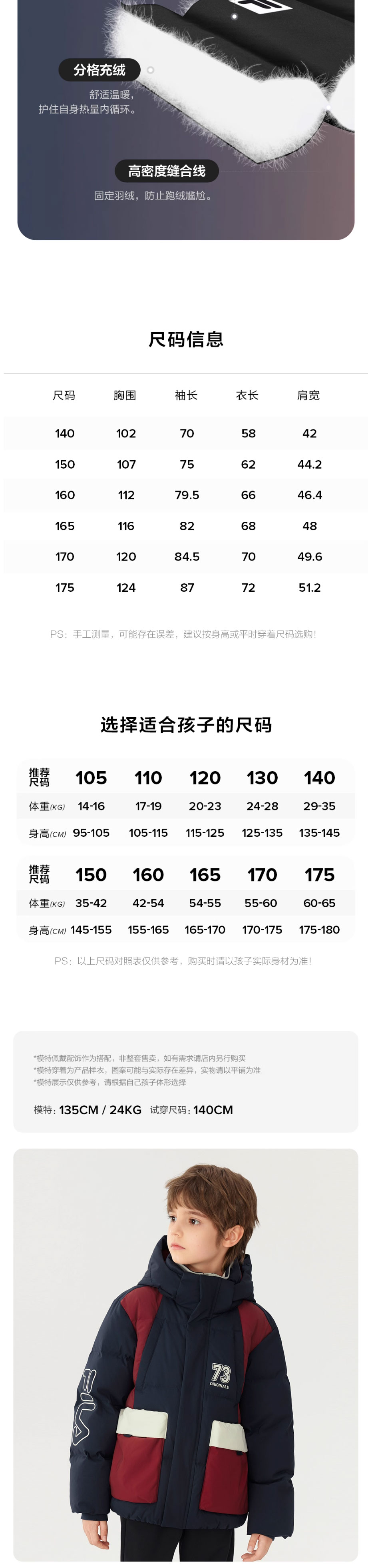FILA KIDS斐乐童装男大童羽绒服2025冬新款儿童保暖K12B541910FNV